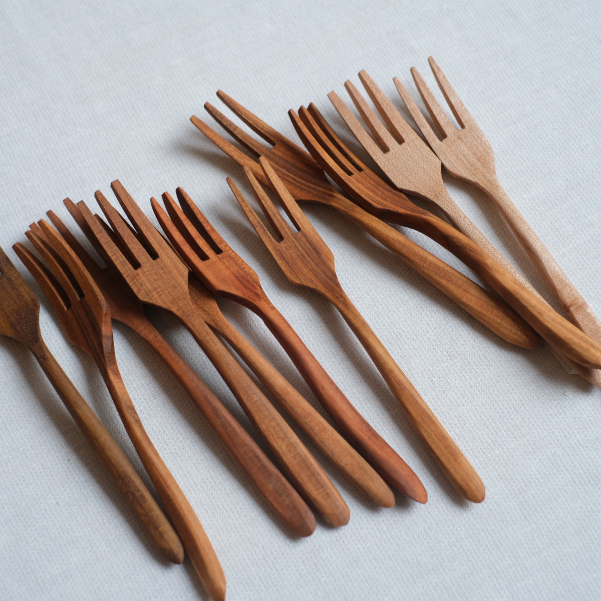 東京で材集めから須田さんご自身で行い、乾燥させない生木を中心に器やカトラリーを制作されています。木こりとして木や森に向き合い、作り手として新たに木や人と向き合う須田さん。木を器にすること、道具のこと、森のこと、多くの発信をされています。