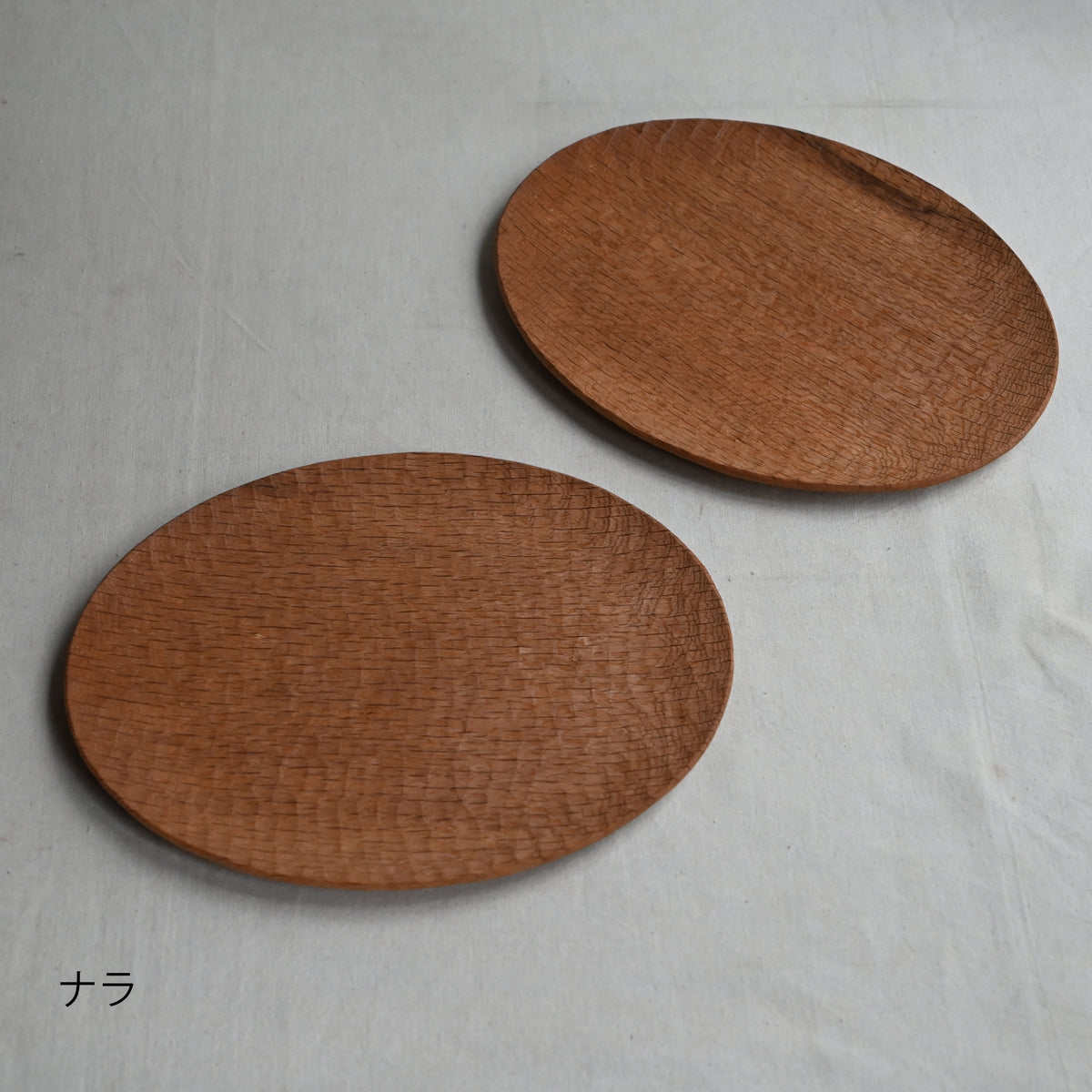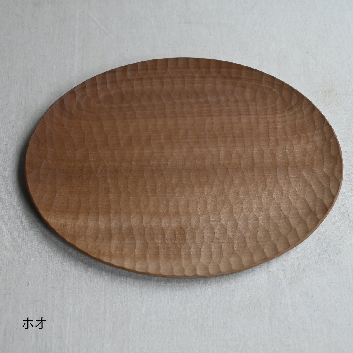 一つ一つ丁寧にミノで施された表面の彫り跡が美しく、軽やかな持ち心地が使い勝手の良いだ円皿。