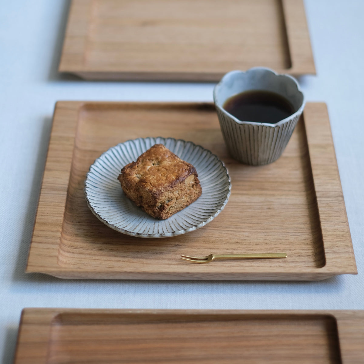 お菓子にマグカップをのせてお茶時間を楽しんだり、スコーンや食パンをそのままのせても。