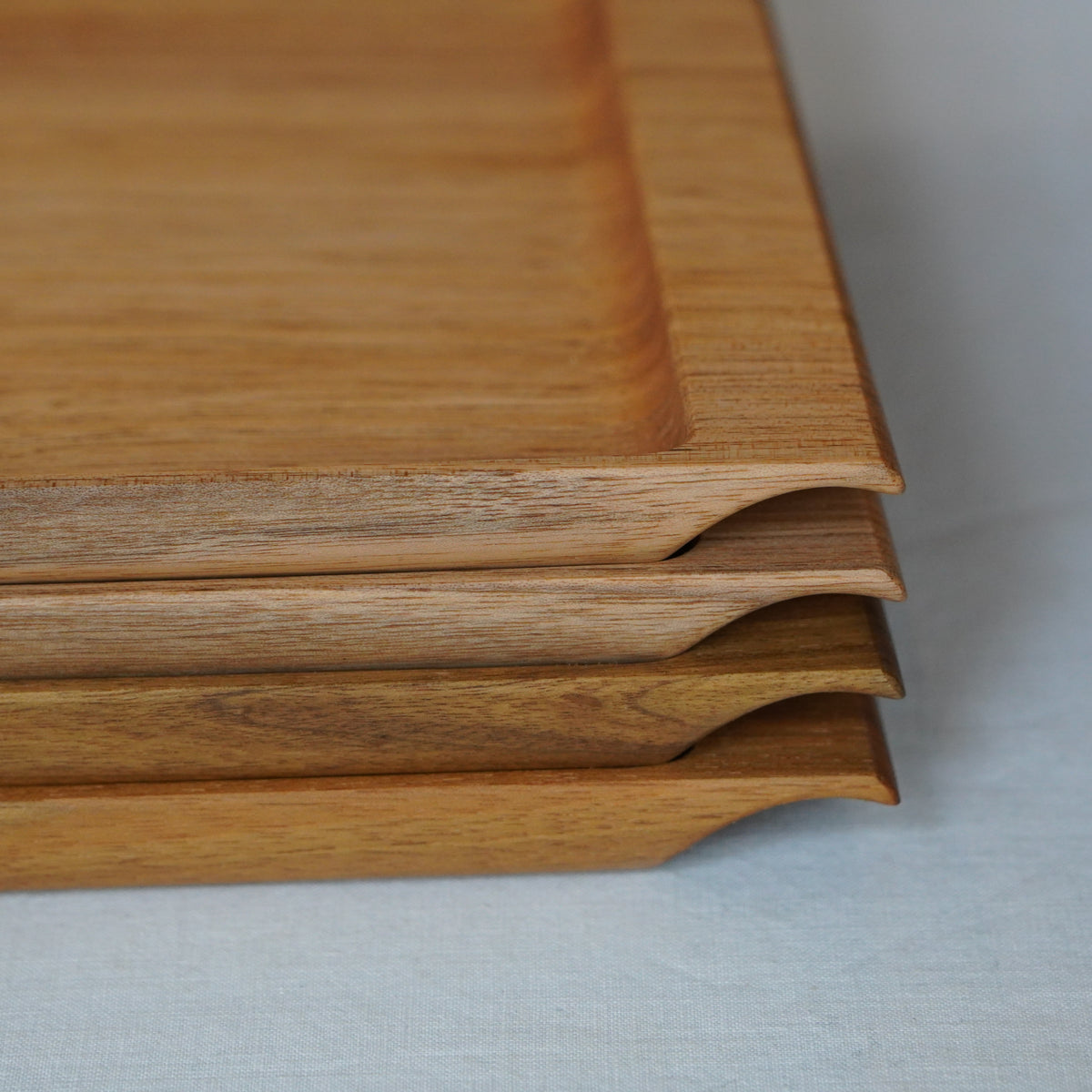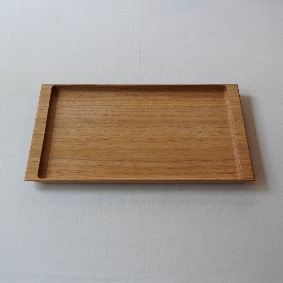少し長めのサイズは、飯碗、汁椀のほか大きめの皿や鉢を載せても収まりが良いです。