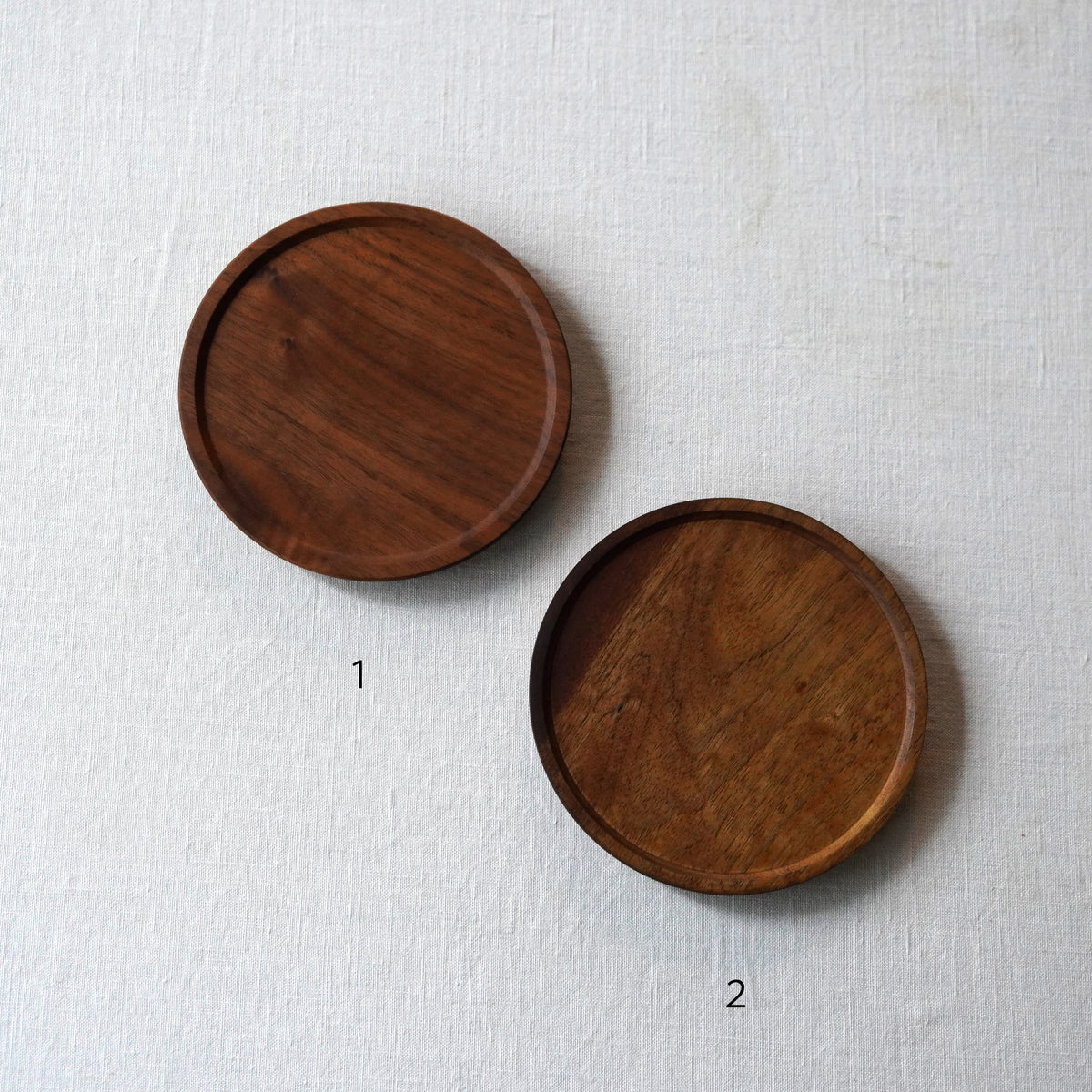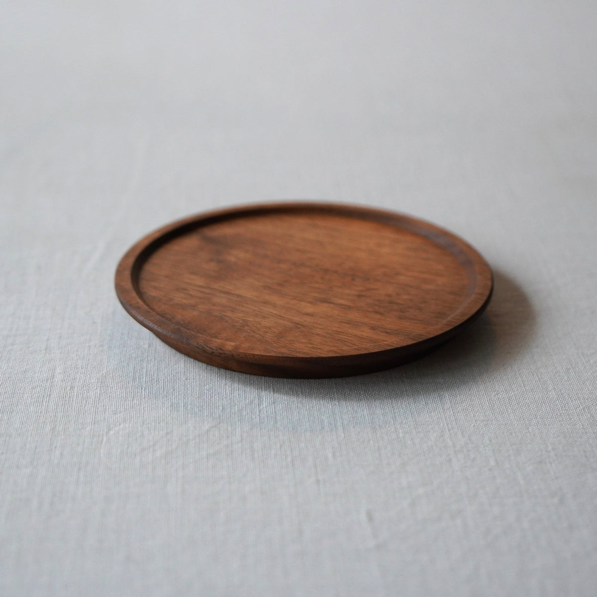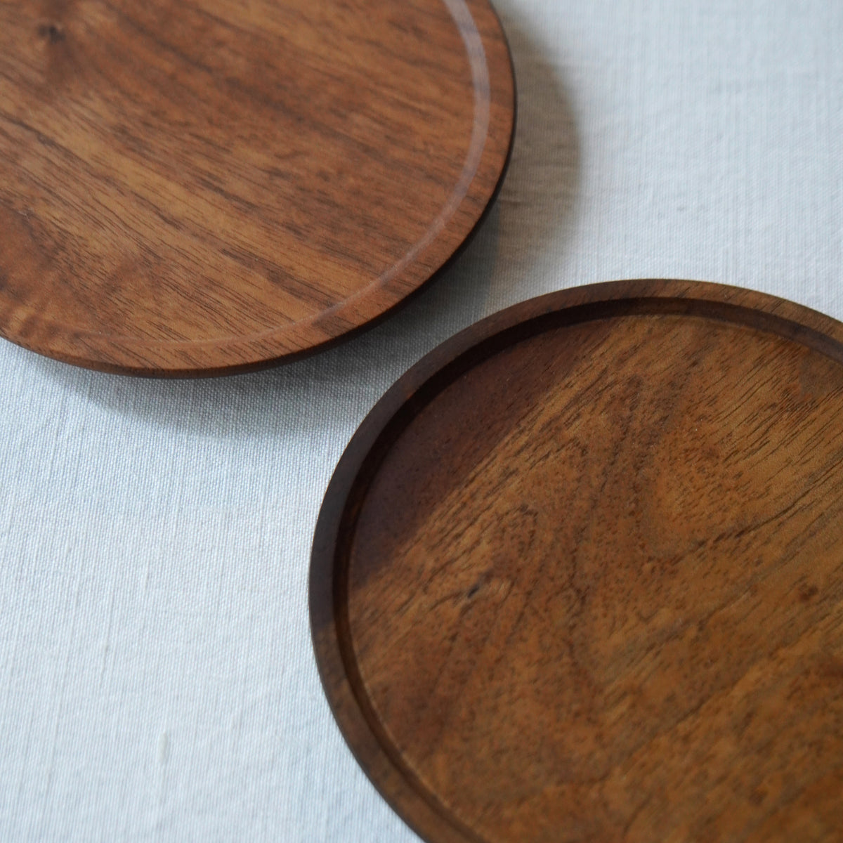 木目の流れが美しい茶托。お湯呑やコップはもちろんのこと、小さめのお菓子を乗せていただいてもお楽しみいただけます。