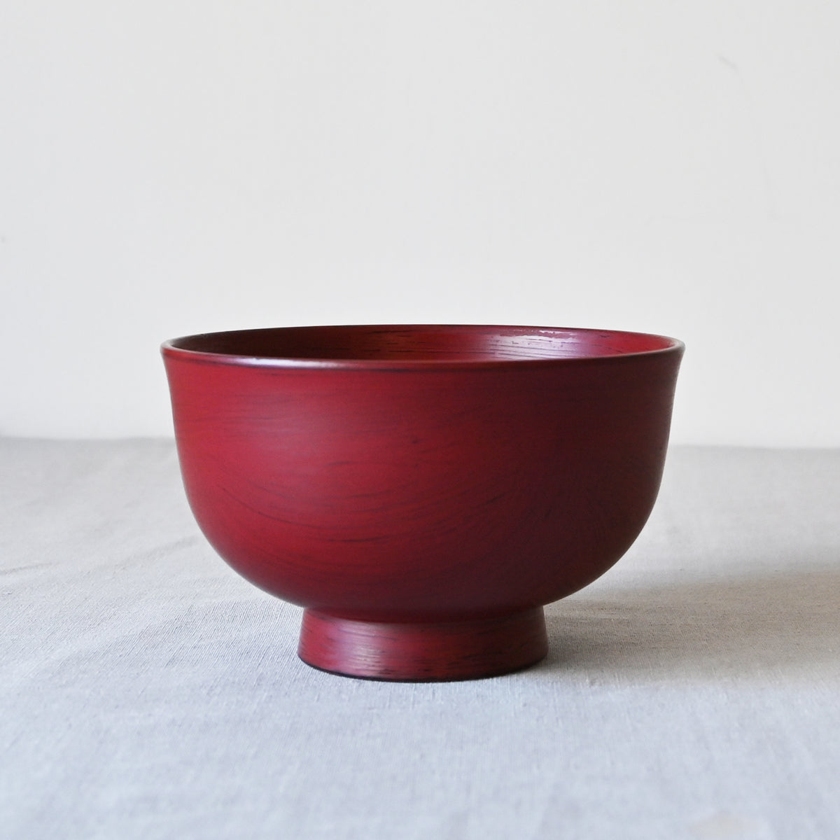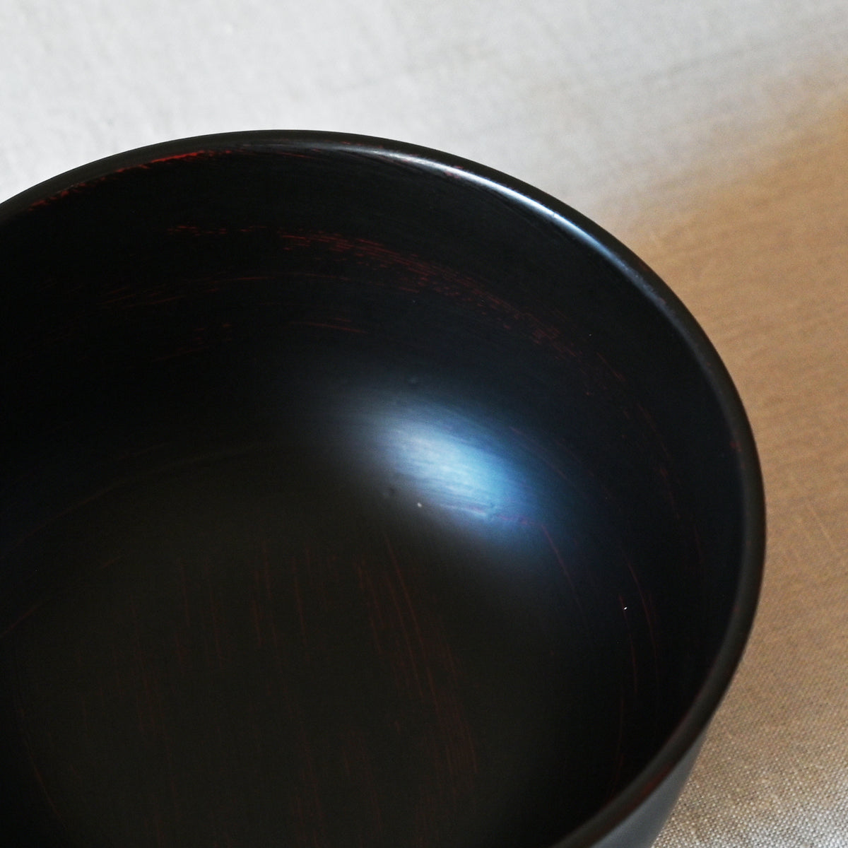 木の粉を固めてお椀の形を作り、漆を塗って仕上げています。木をくりぬいて作るものは、極端に乾燥すると木がそったり、割れる事もあるのですが、木乾だとその心配がないので取り扱いも簡単です。海外でも安心してお使いいただけます。