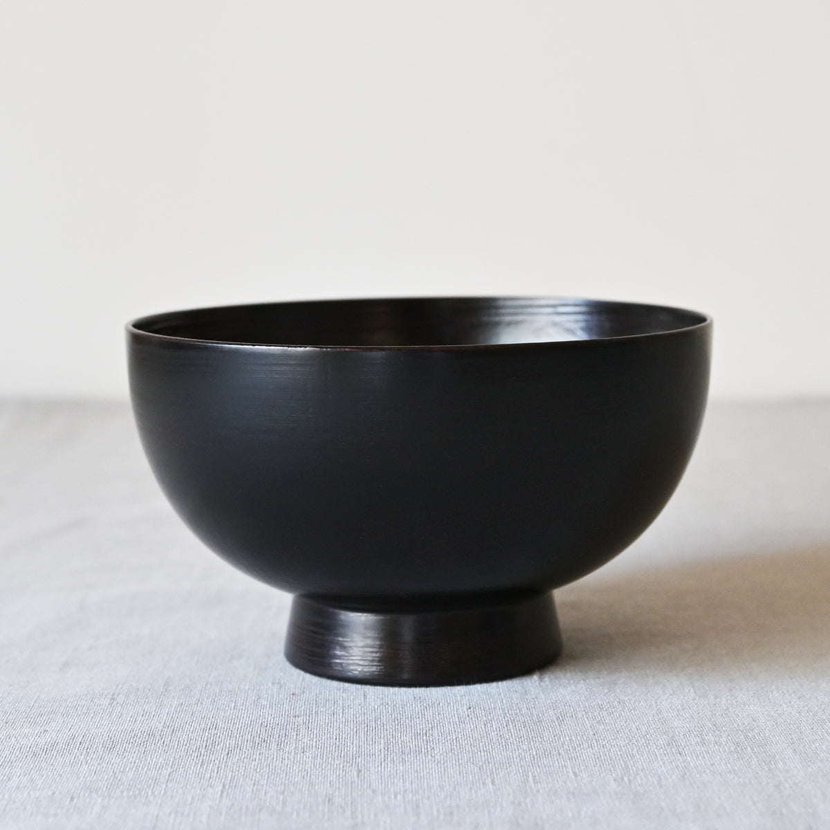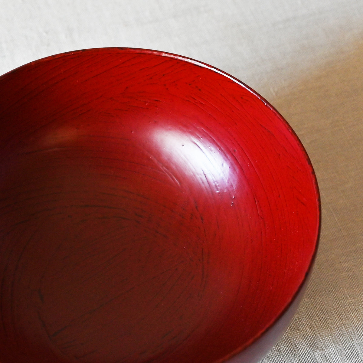 縁が薄く口当たりが軽い形をしています。重ねて収納しても高さがでず、場所をとらないように作られています。普段の器として使えるように、キズが目立ちにくい刷毛目を残す塗り方をしています。