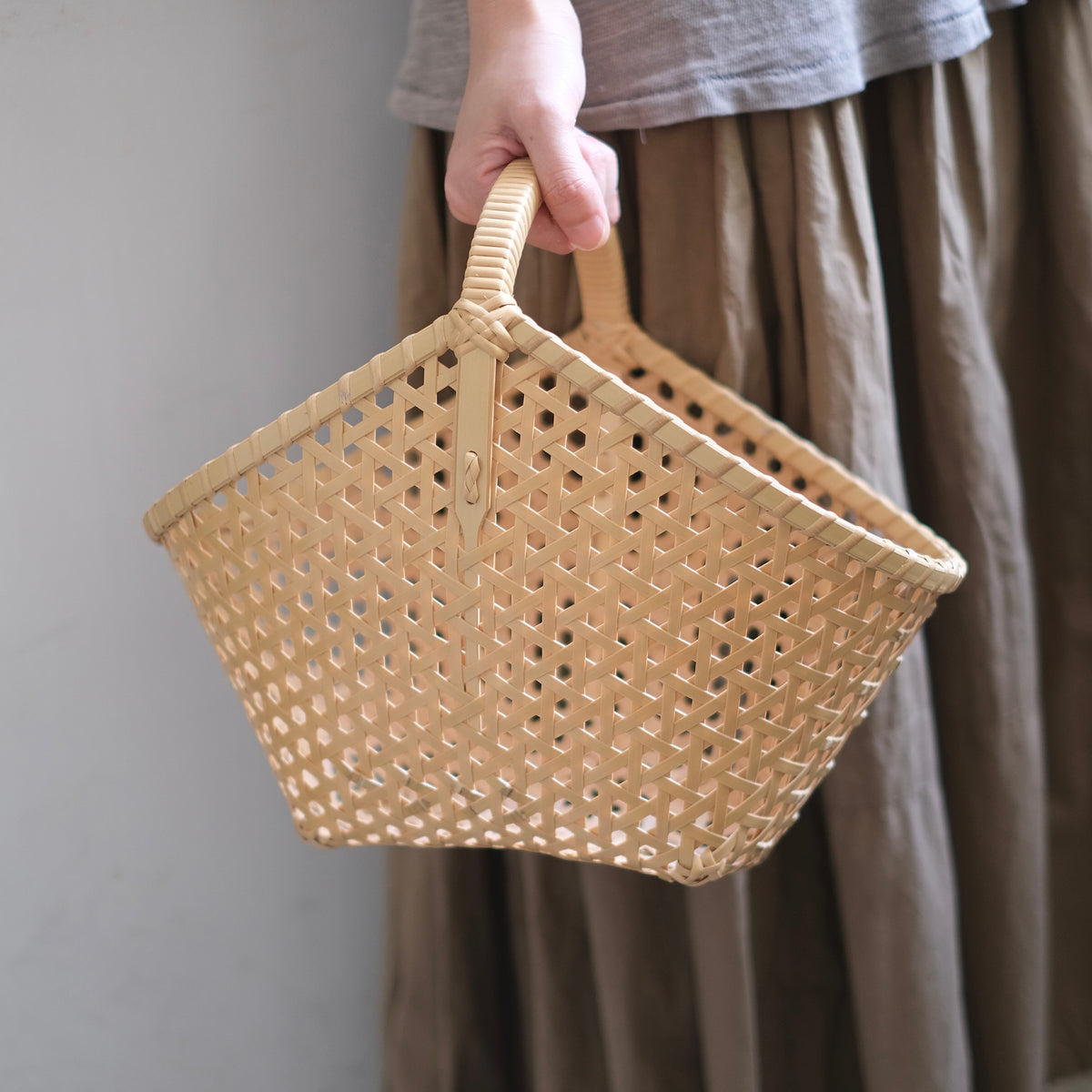 重い荷物にも耐えられるよう、竹の芯を4本使い籐でしっかりと補強された持ち手が頼もしいです。