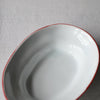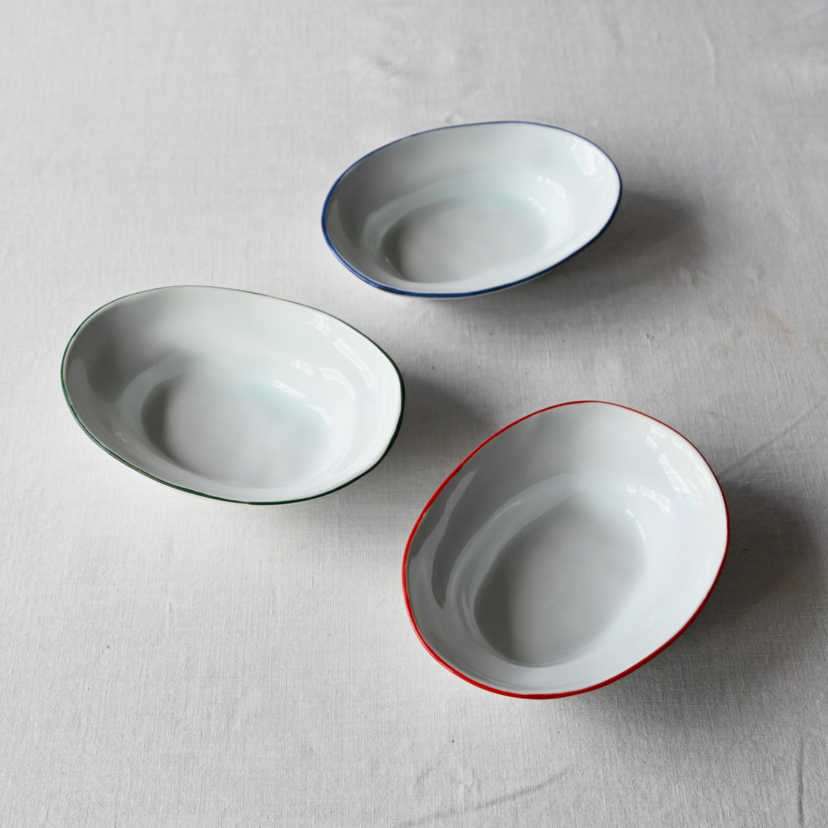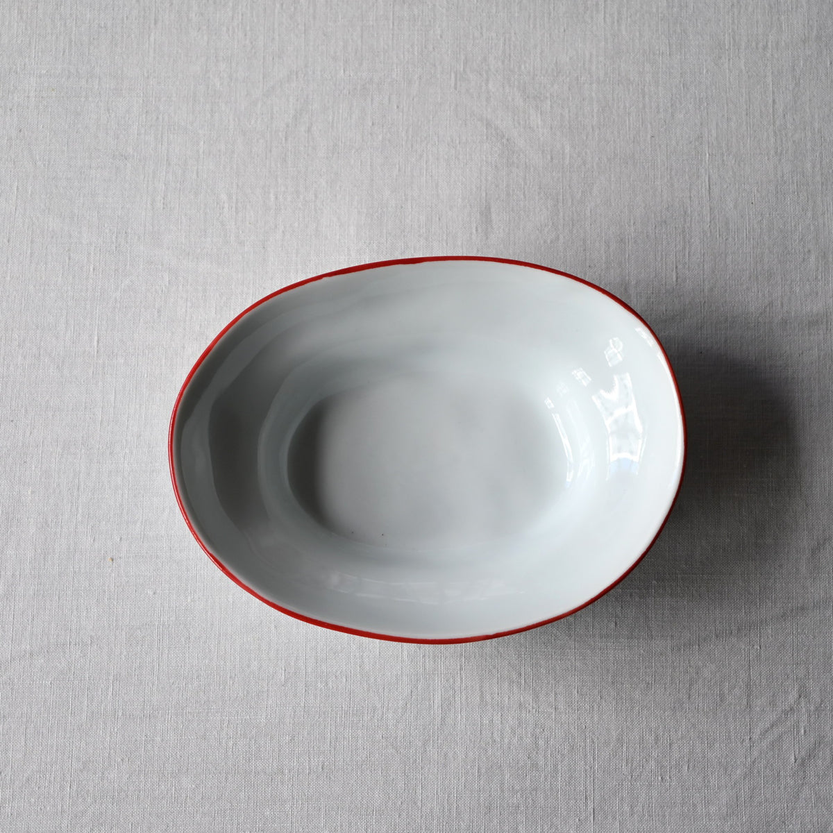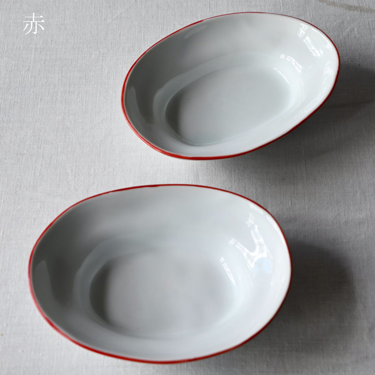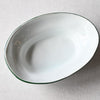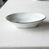 静岡県で制作される赤堀さん。琺瑯のような質感に、さりげないふちどりの色がアクセントに。懐かしさもありながら、すっきりとしたかたちは洗練された雰囲気。日々の食卓に新しい風を吹かせてくれるような器です。