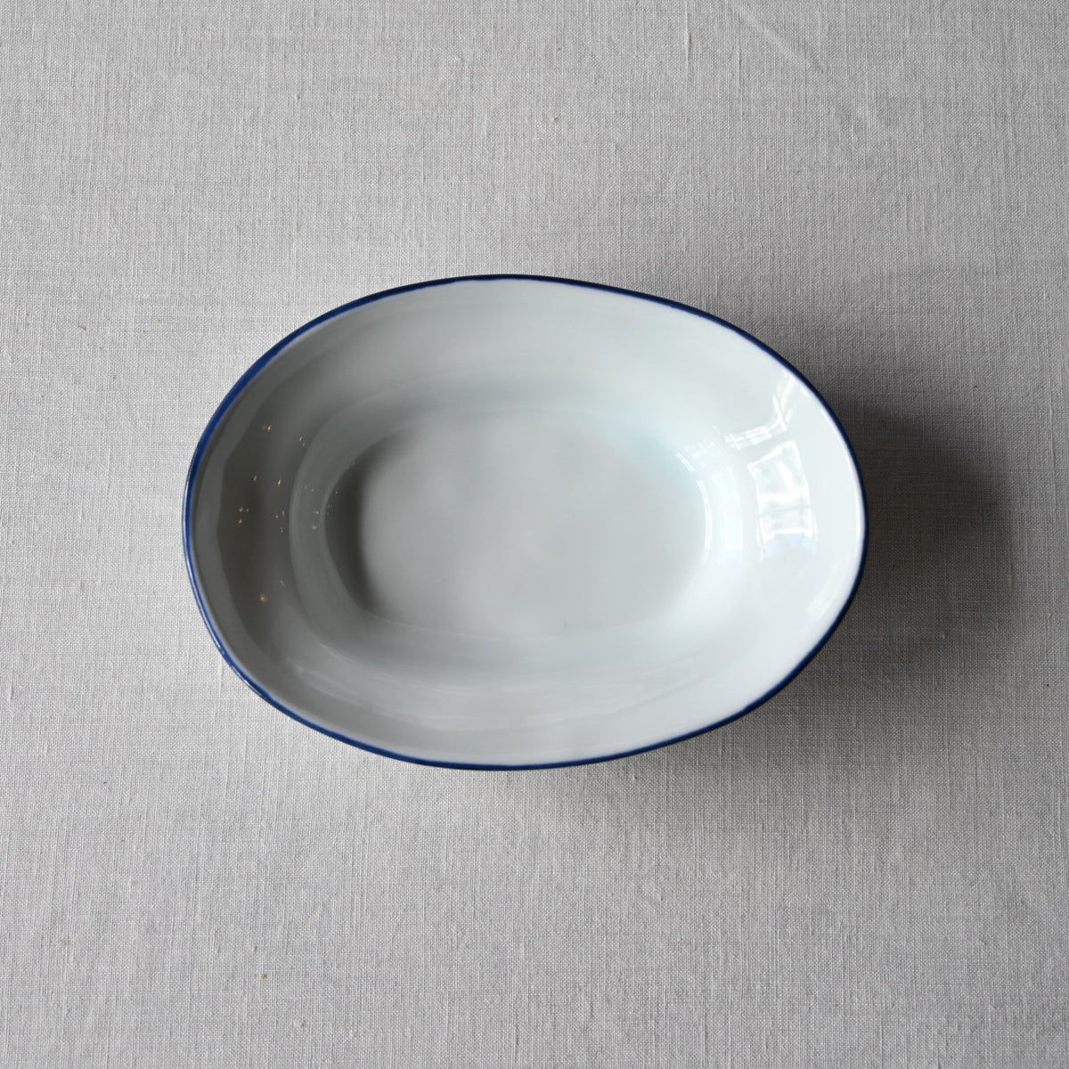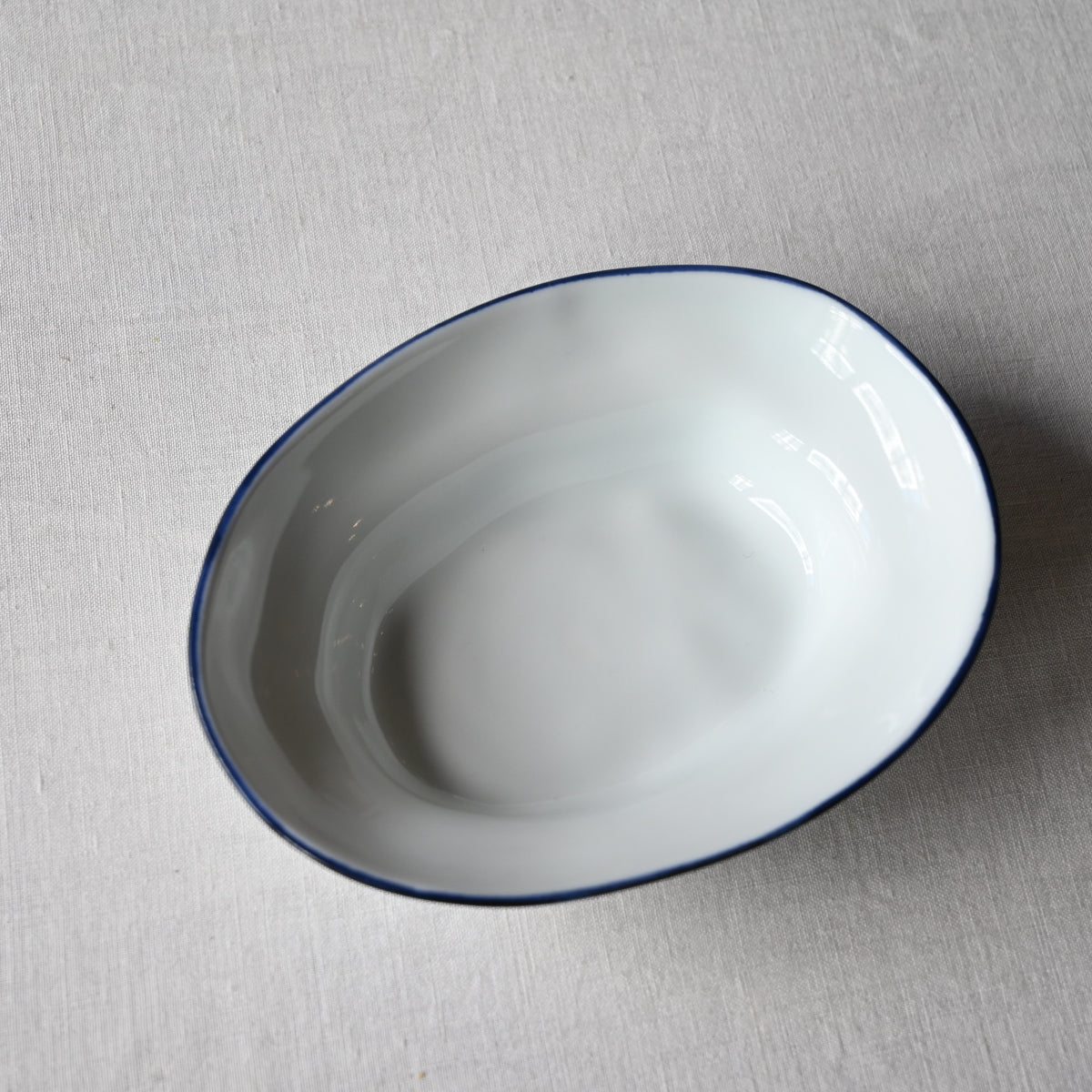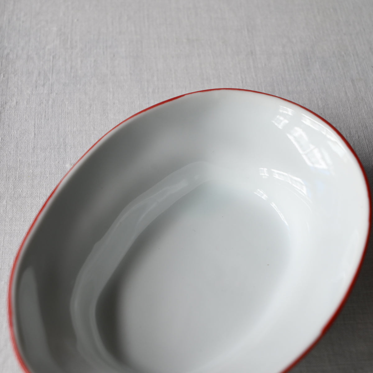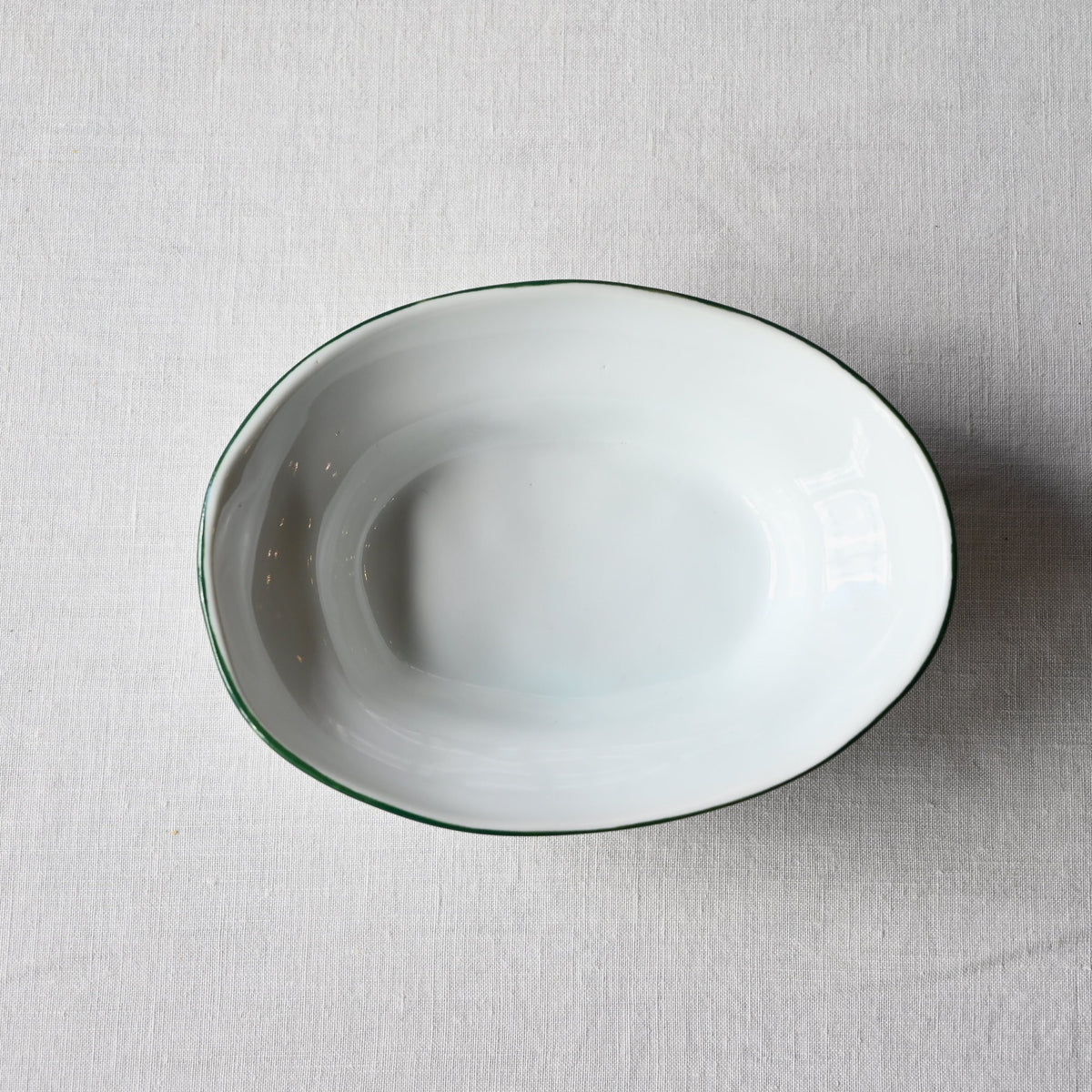 静岡県で制作される赤堀さん。琺瑯のような質感に、さりげないふちどりの色がアクセントに。懐かしさもありながら、すっきりとしたかたちは洗練された雰囲気。日々の食卓に新しい風を吹かせてくれるような器です。