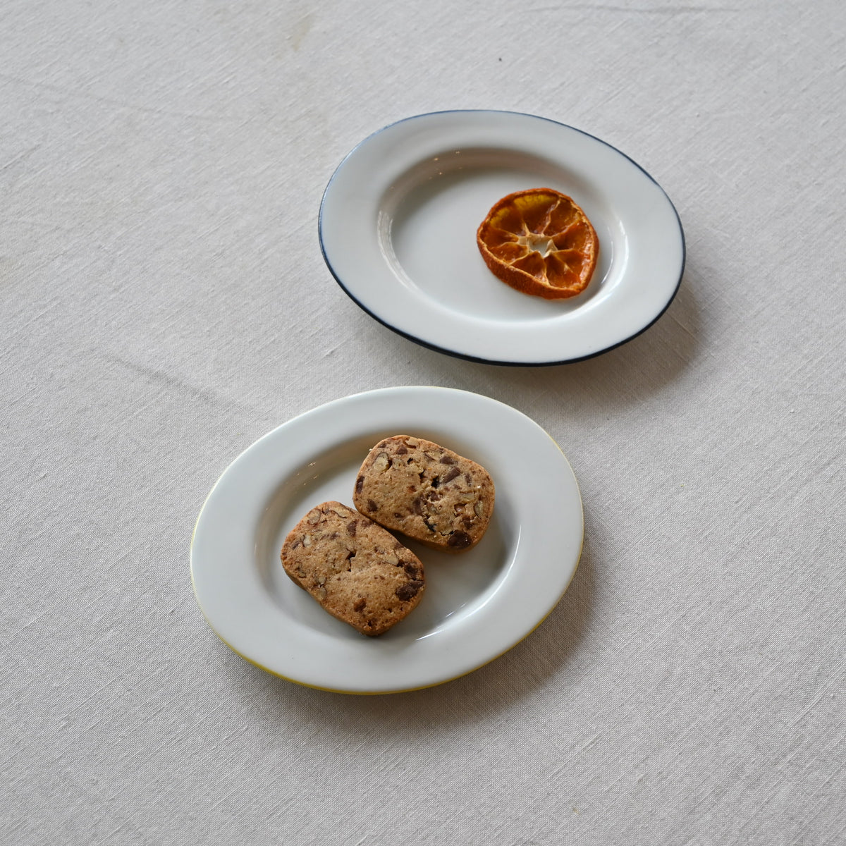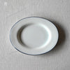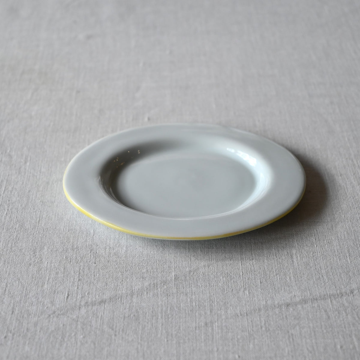 静岡県で制作される赤堀さん。琺瑯のような質感に、さりげないふちどりの色がアクセントに。懐かしさもありながら、すっきりとしたかたちは洗練された雰囲気。日々の食卓に新しい風を吹かせてくれるような器です。