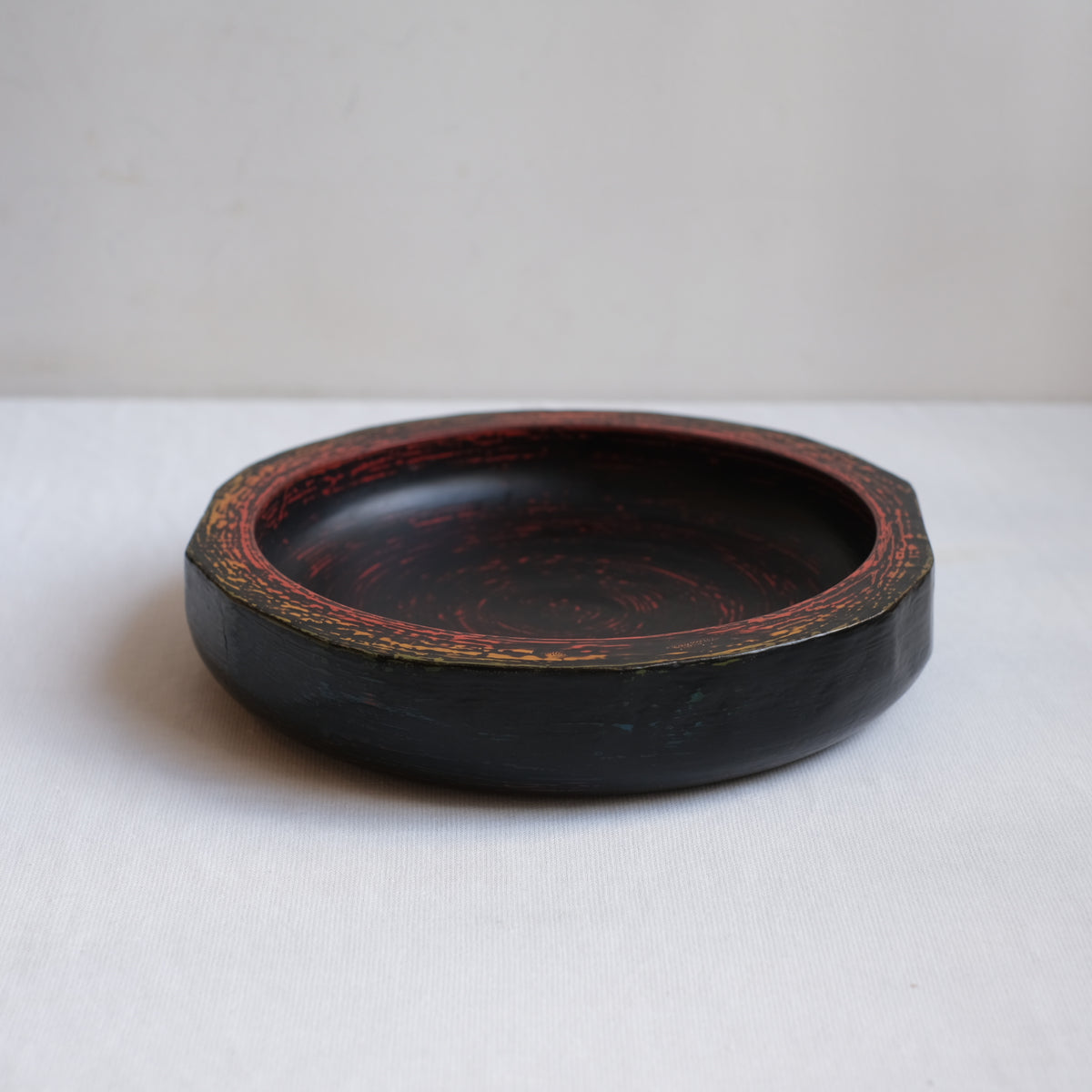もっと気軽に使える漆器をという思いで、刷毛目を残す技法で仕上げています。