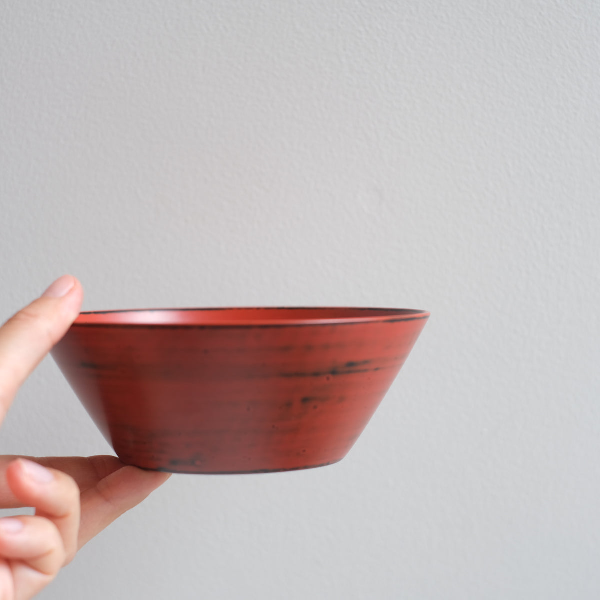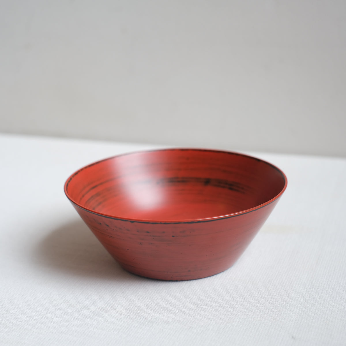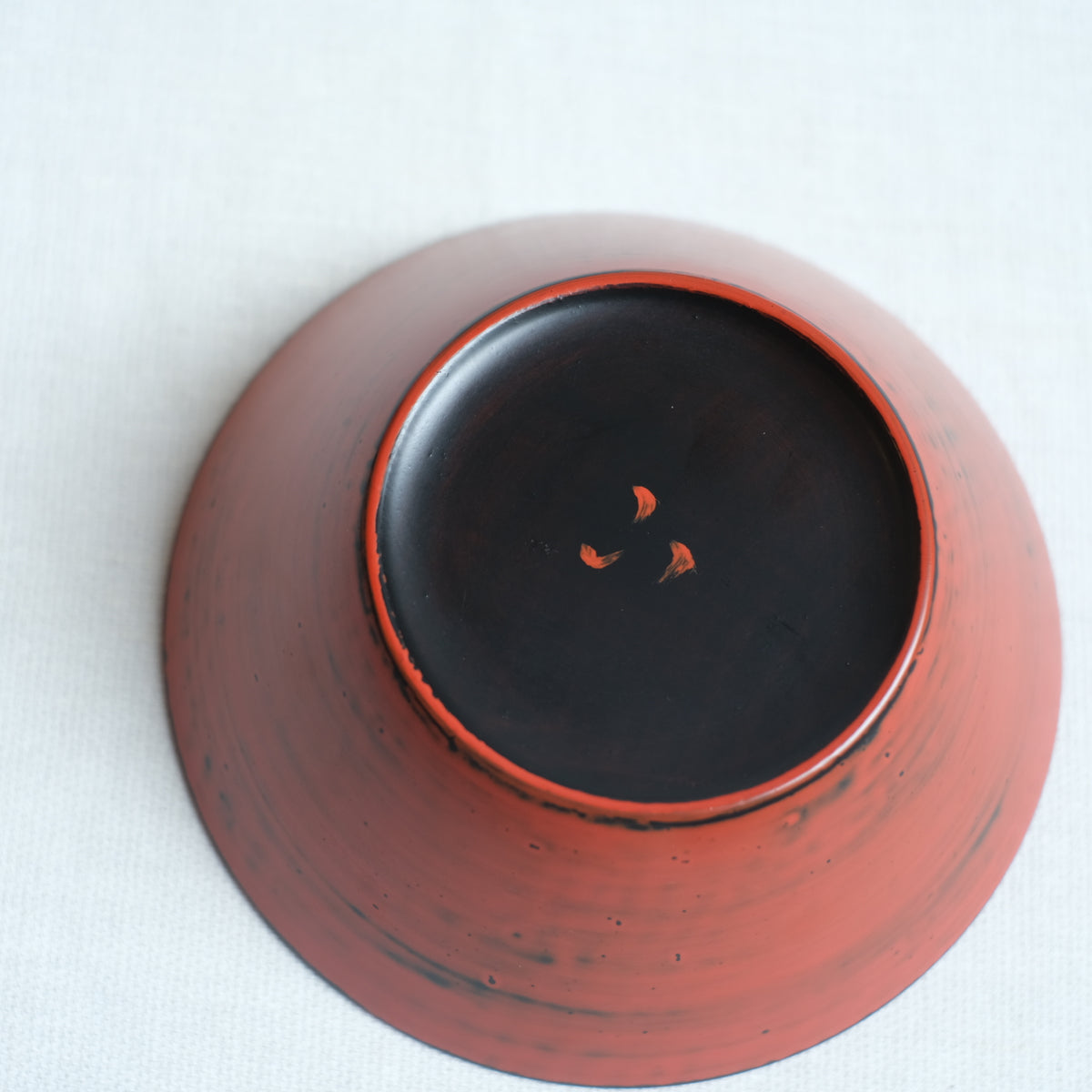 もっと気軽に使える漆器をという思いで、刷毛目を残す技法で仕上げています。