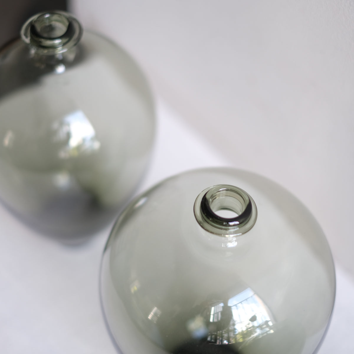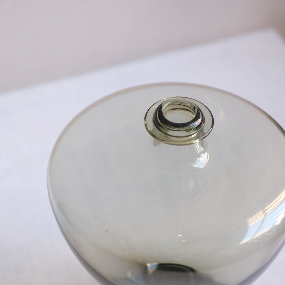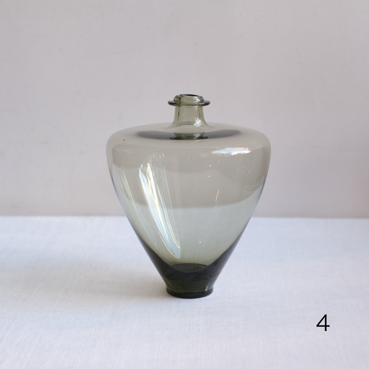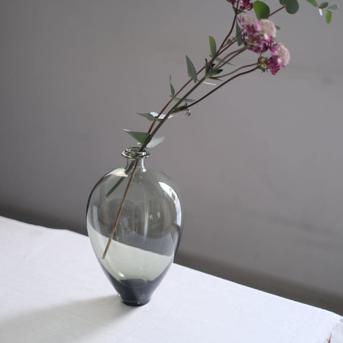 大阪堺市生まれ。現在は石川県能登島で制作されています。有永さんの工房で調合されたガラスは角度により青みや紫を感じ自然光と照明、飲み物の色によっても変化し瞬間の美しさに魅了されます。