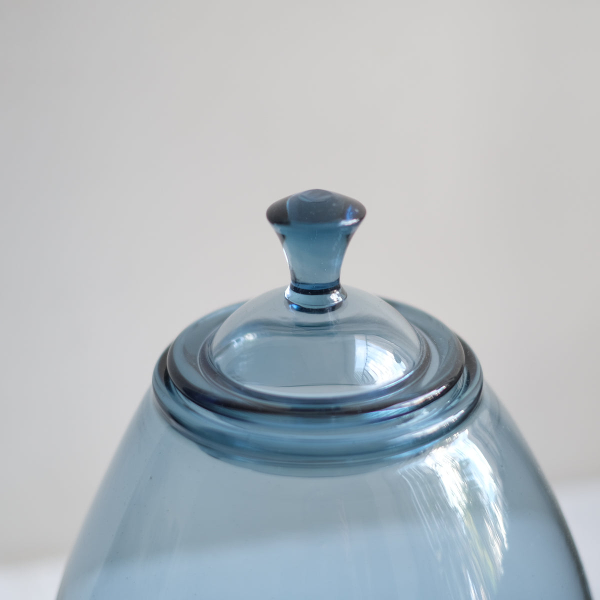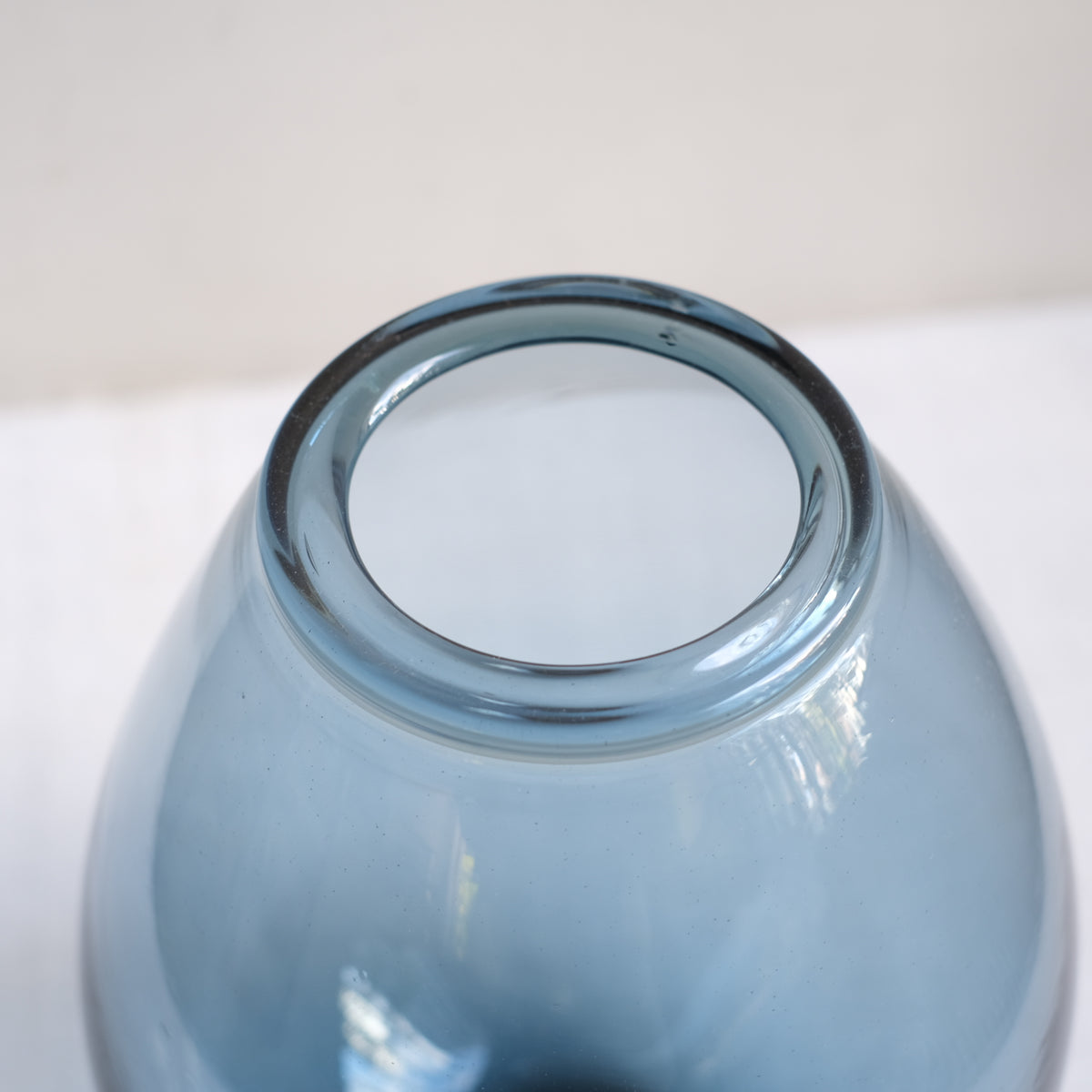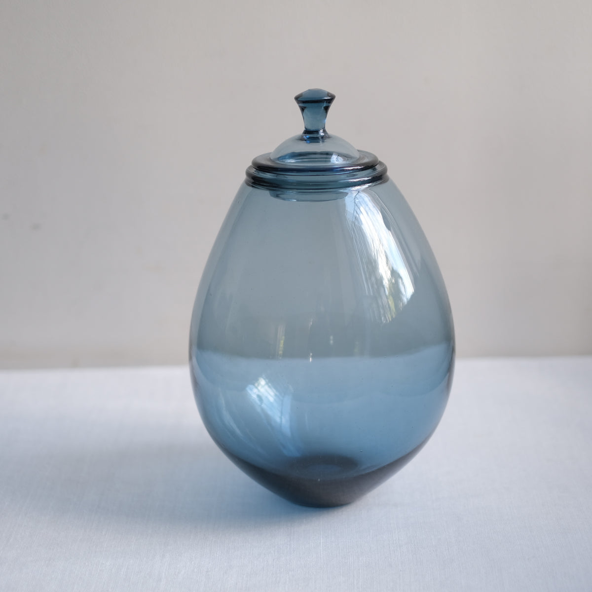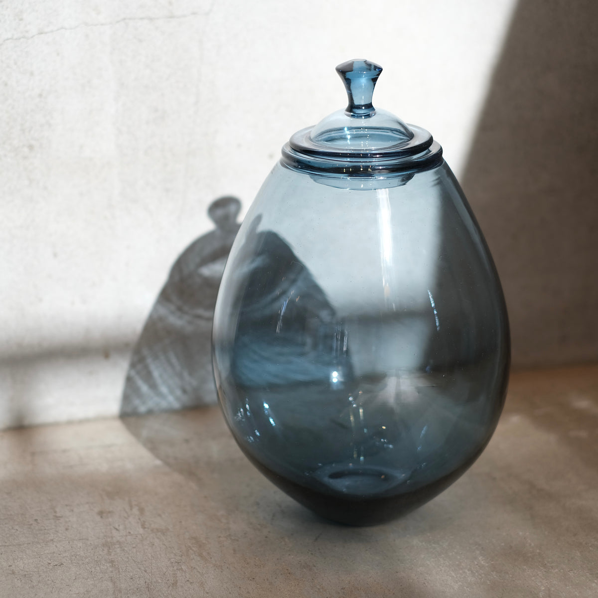 大阪堺市生まれ。現在は石川県能登島で制作されています。有永さんの工房で調合されたガラスは角度により青みや紫を感じ自然光と照明、飲み物の色によっても変化し瞬間の美しさに魅了されます。