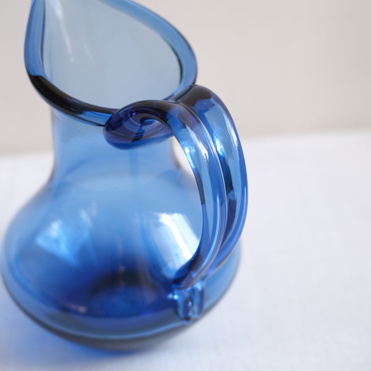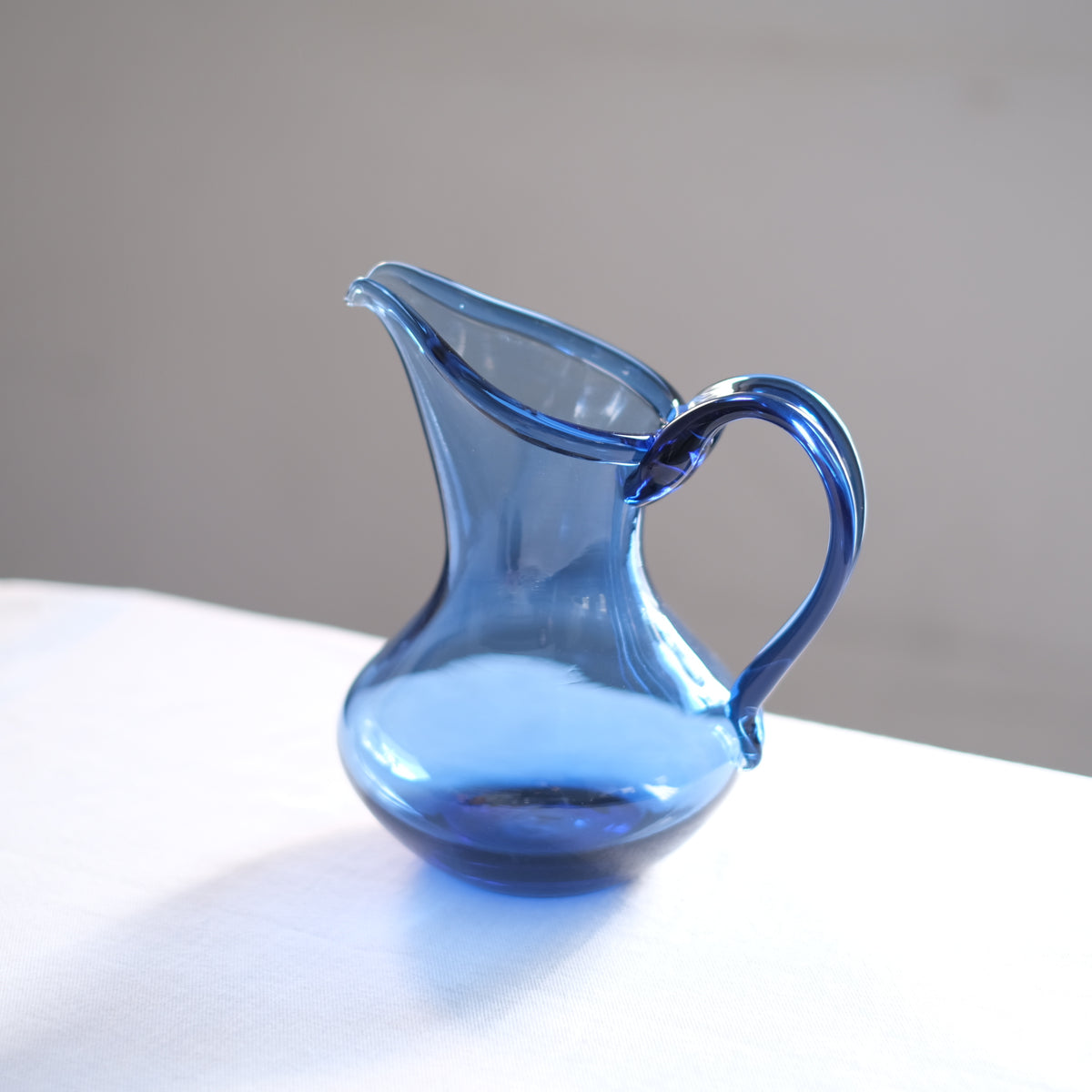 大阪堺市生まれ。現在は石川県能登島で制作されています。有永さんの工房で調合されたガラスは角度により青みや紫を感じ自然光と照明、飲み物の色によっても変化し瞬間の美しさに魅了されます。