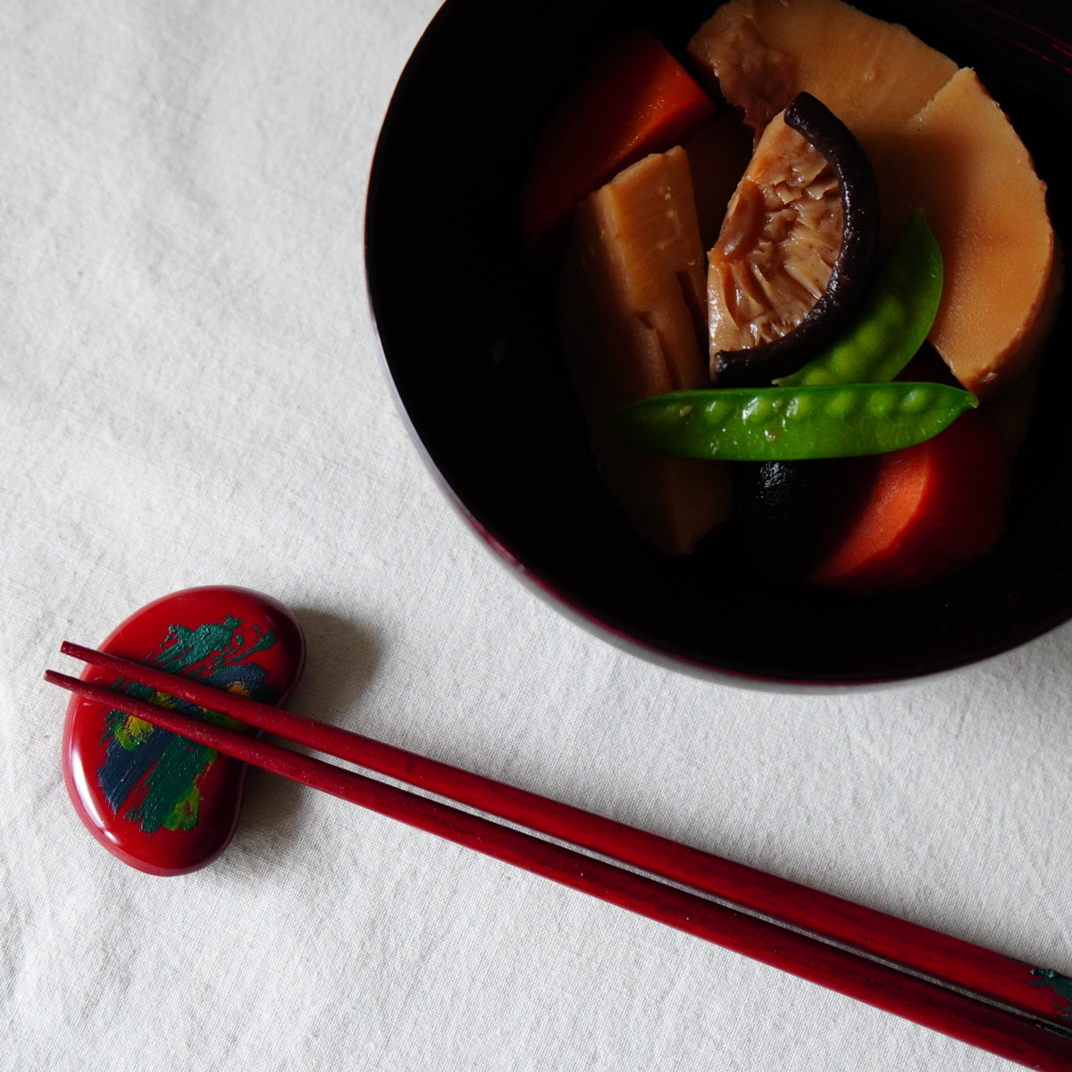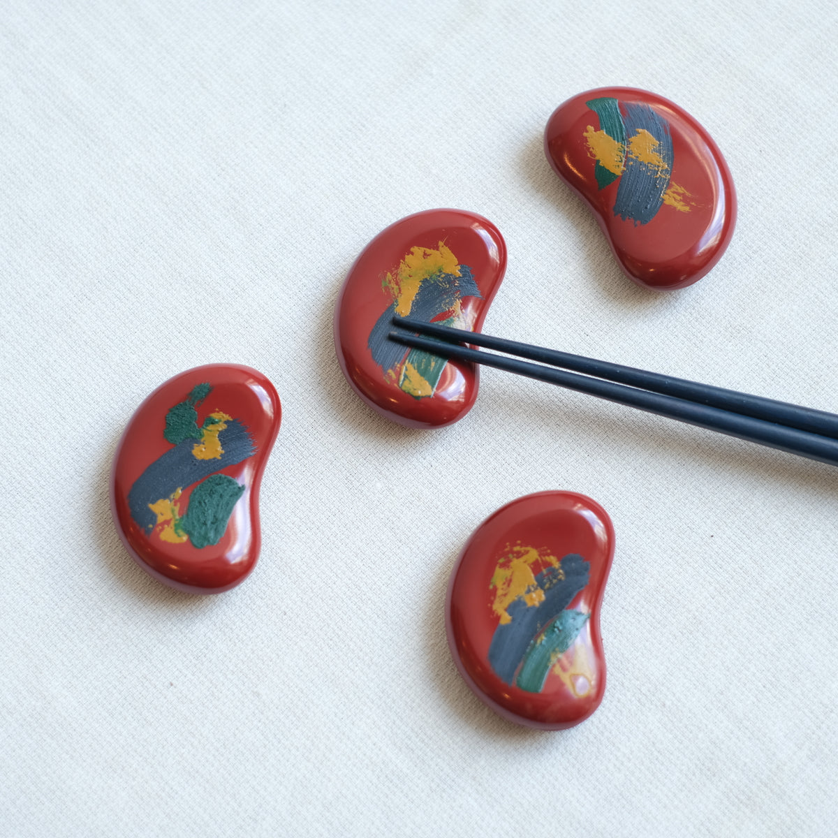 それぞれに施された漆の絵柄に味わいのある箸置き。