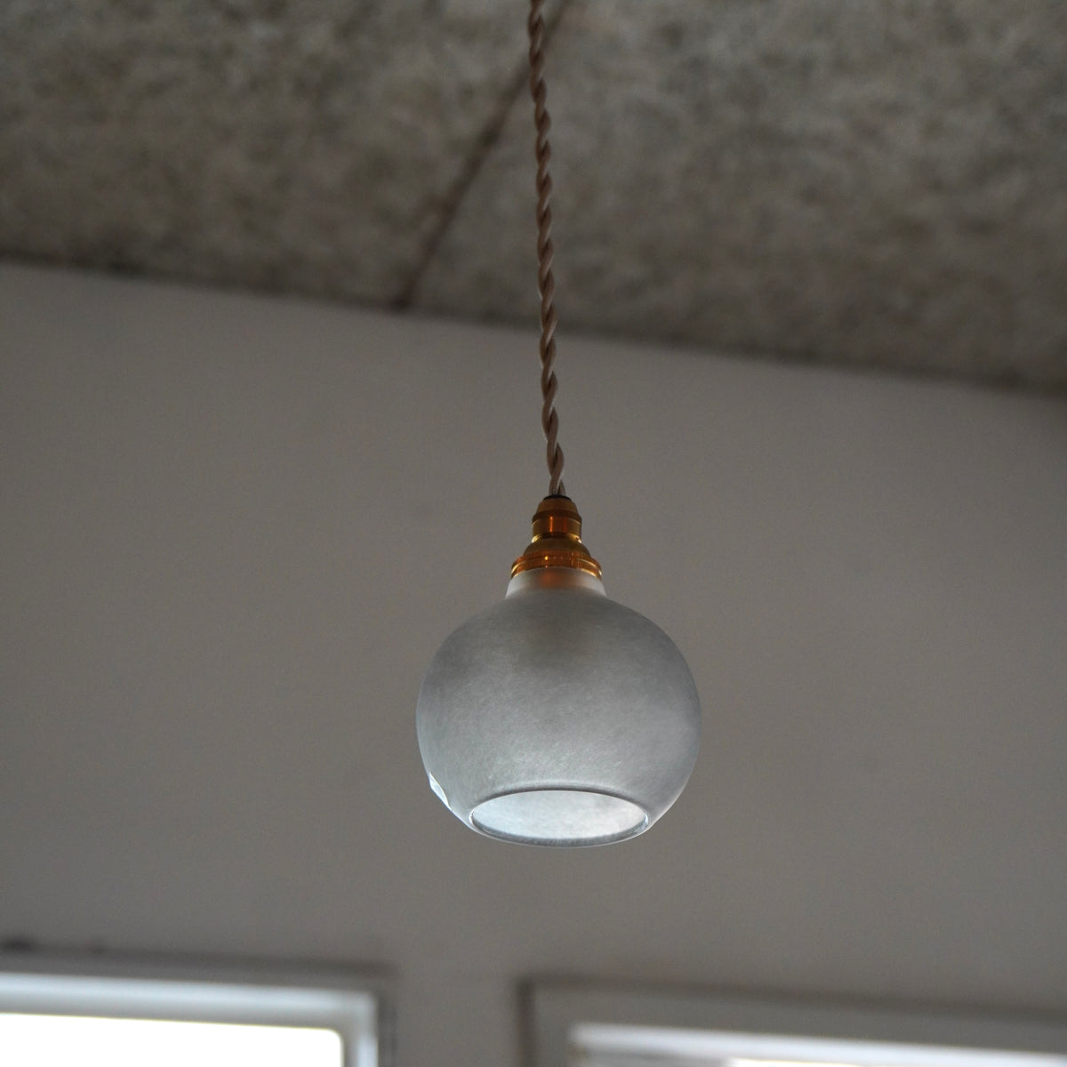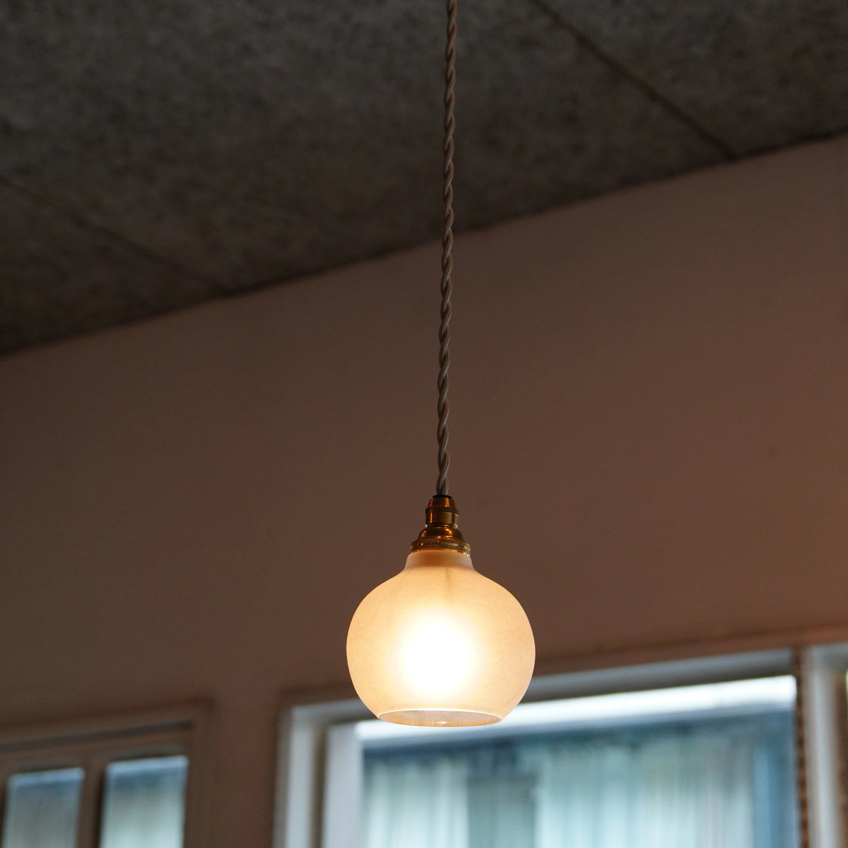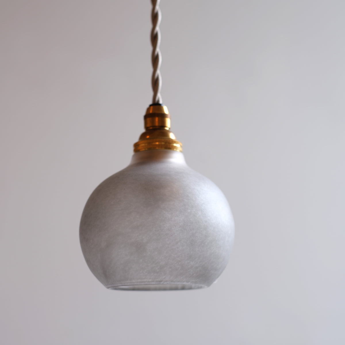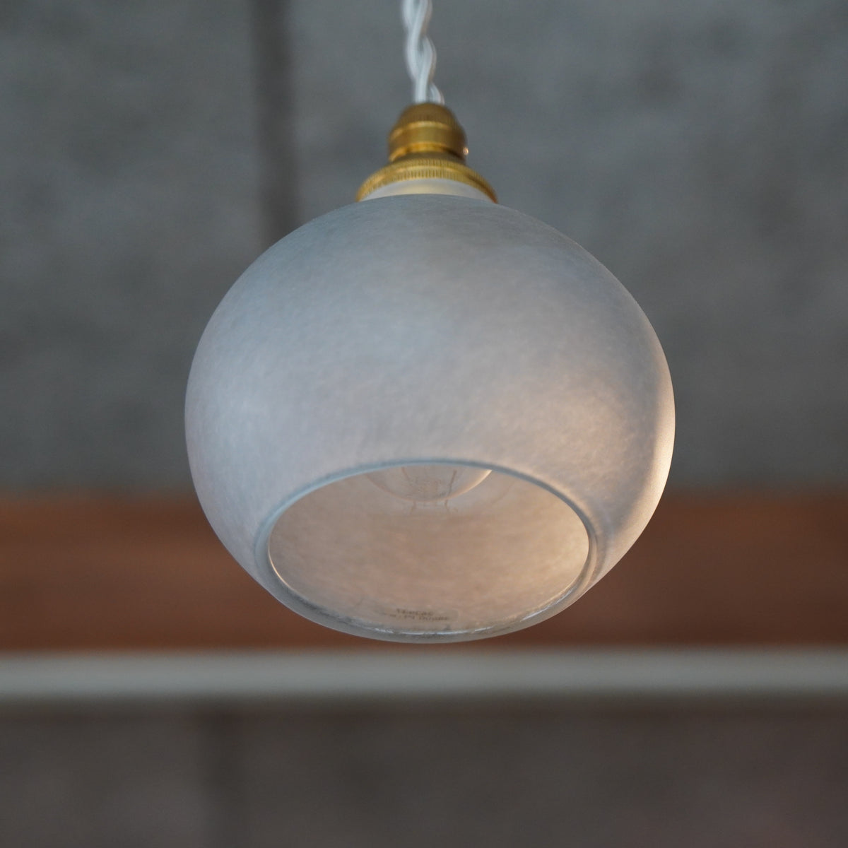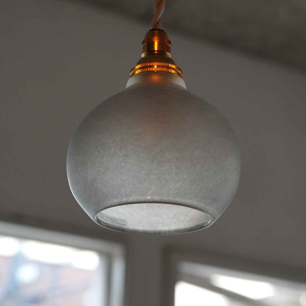 グレーのニュアンスカラーが落ち着きのあるモダンな雰囲気で、小ぶりでまあるいシルエットは空間にさりげなく馴染み、やさしい光を届けてくれます。
