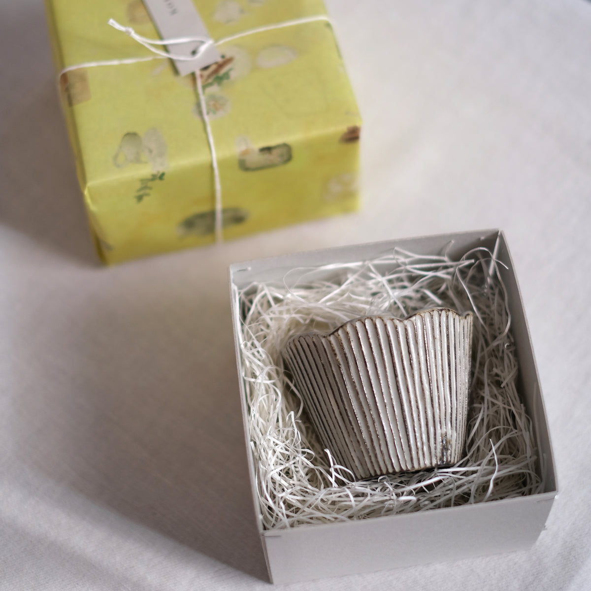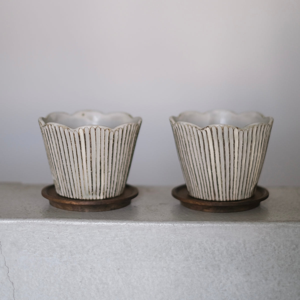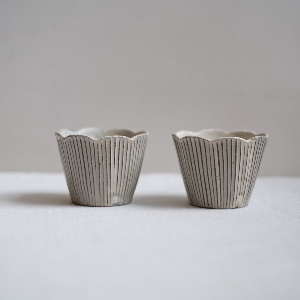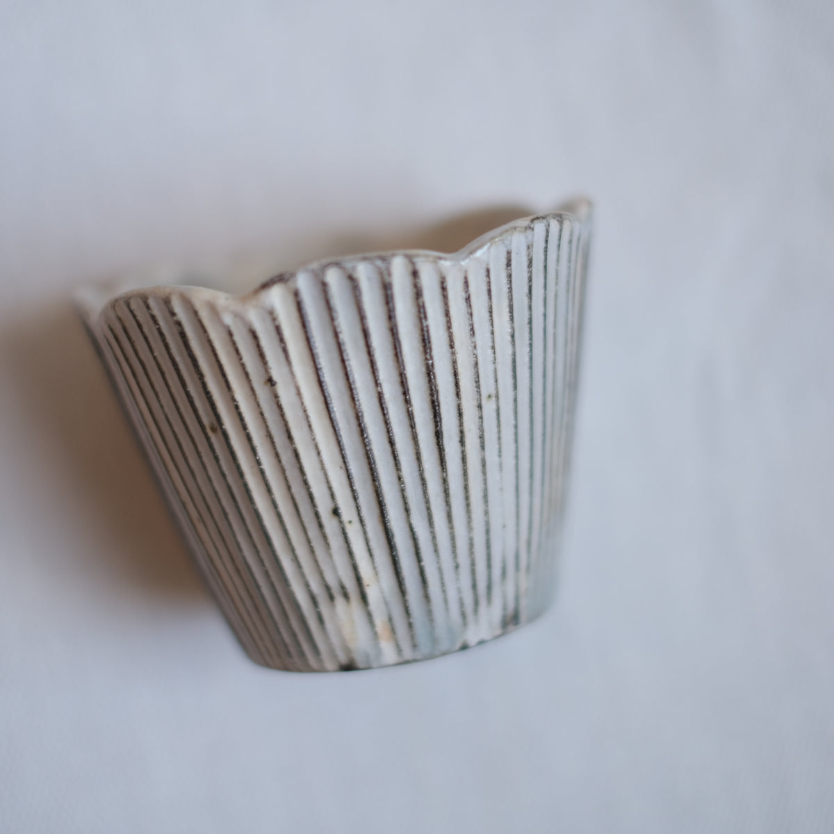 器を作る工程の中でも鎬を入れていく作業がお好きで、その均一に施された彫り目はすっと吸い付くように手に馴染みます。丁寧に削りだされた一本一本の線が綺麗に見える形を考えて作られています。