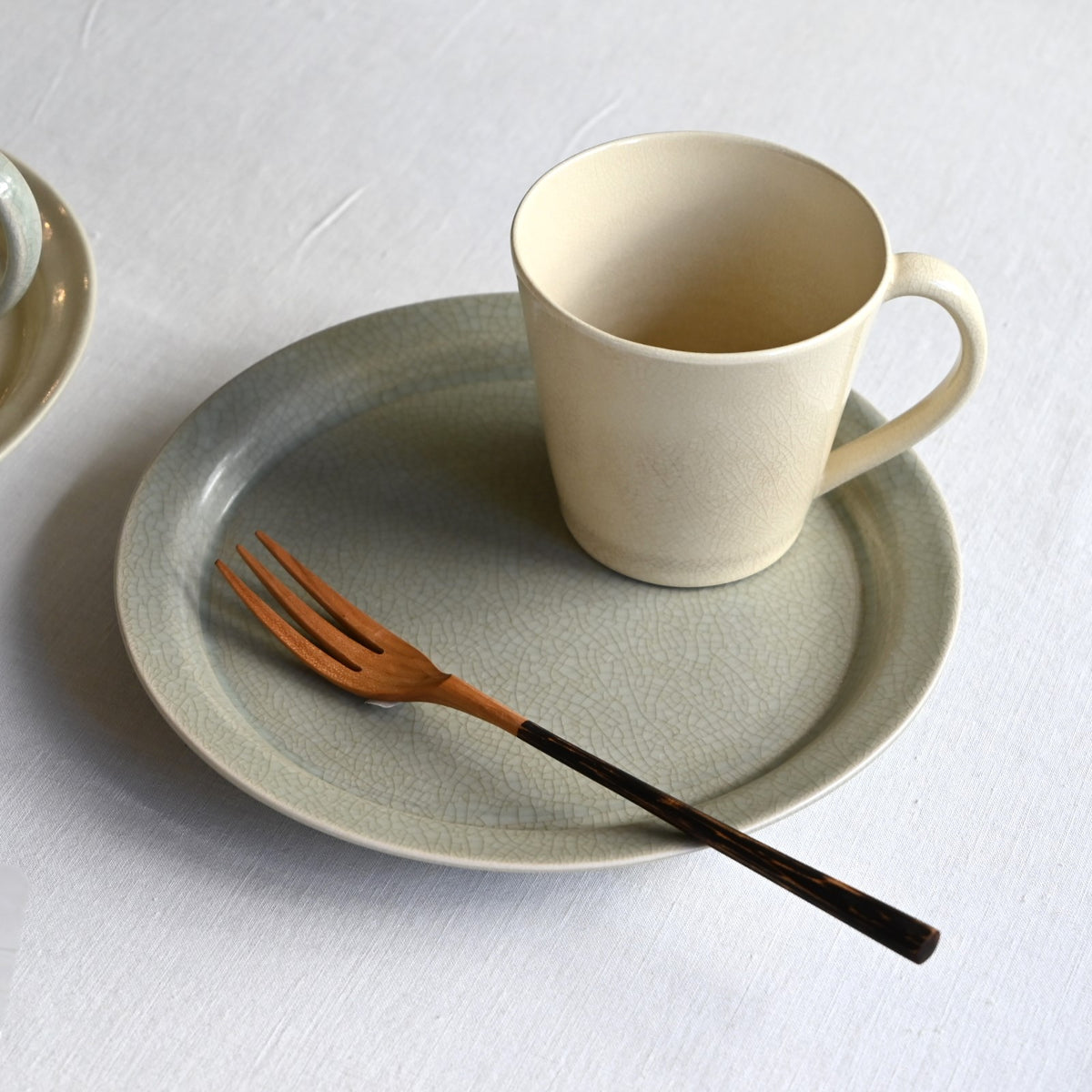 岐阜県多治見市にて制作されている石黒さん。しっかり入った貫入はどこか懐かしく落ち着いた表情。青瓷や白瓷のやわらかであたたかみのある雰囲気をお楽しみください。