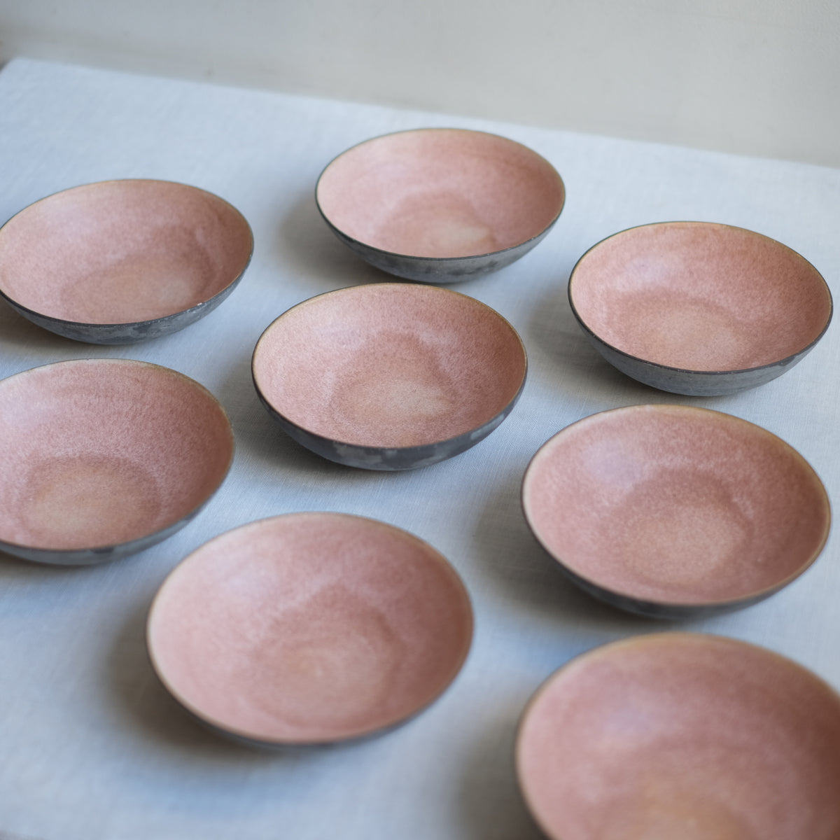 岐阜県多治見で焼き物を学んだ後、現在は岡山に拠点を移し作陶されている大森健司さん。化粧土と呼ばれる器の制作過程で使われる素材を使ったグレーや赤。釉薬と違った色の美しさがあります。可愛らしい内側の釉薬ともバランスが良く、何より薄めで口当たりの良いコップは丁寧に淹れた珈琲にかかせないアイテムです。