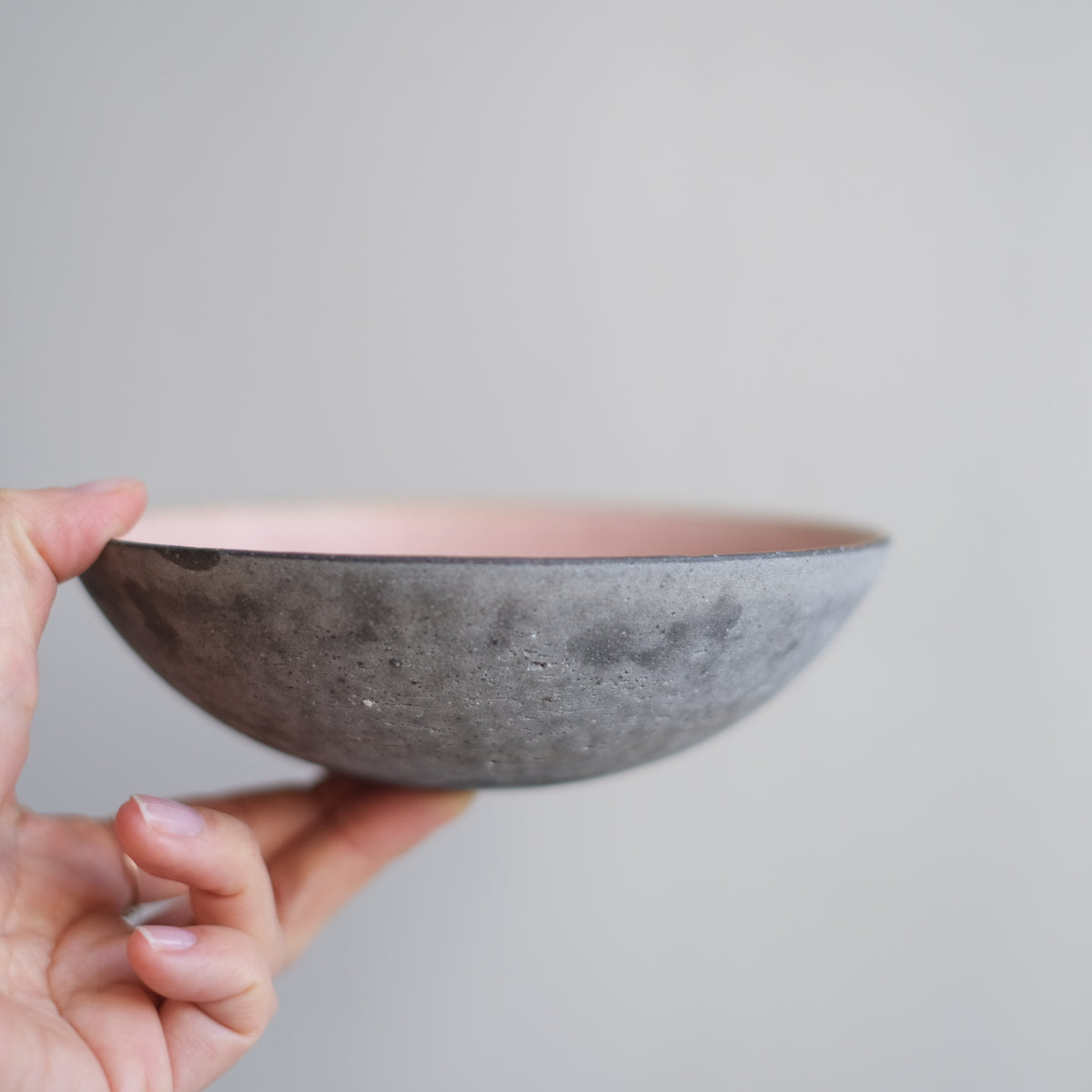 黒土に内側は釉薬をかけた5寸ほどの鉢。