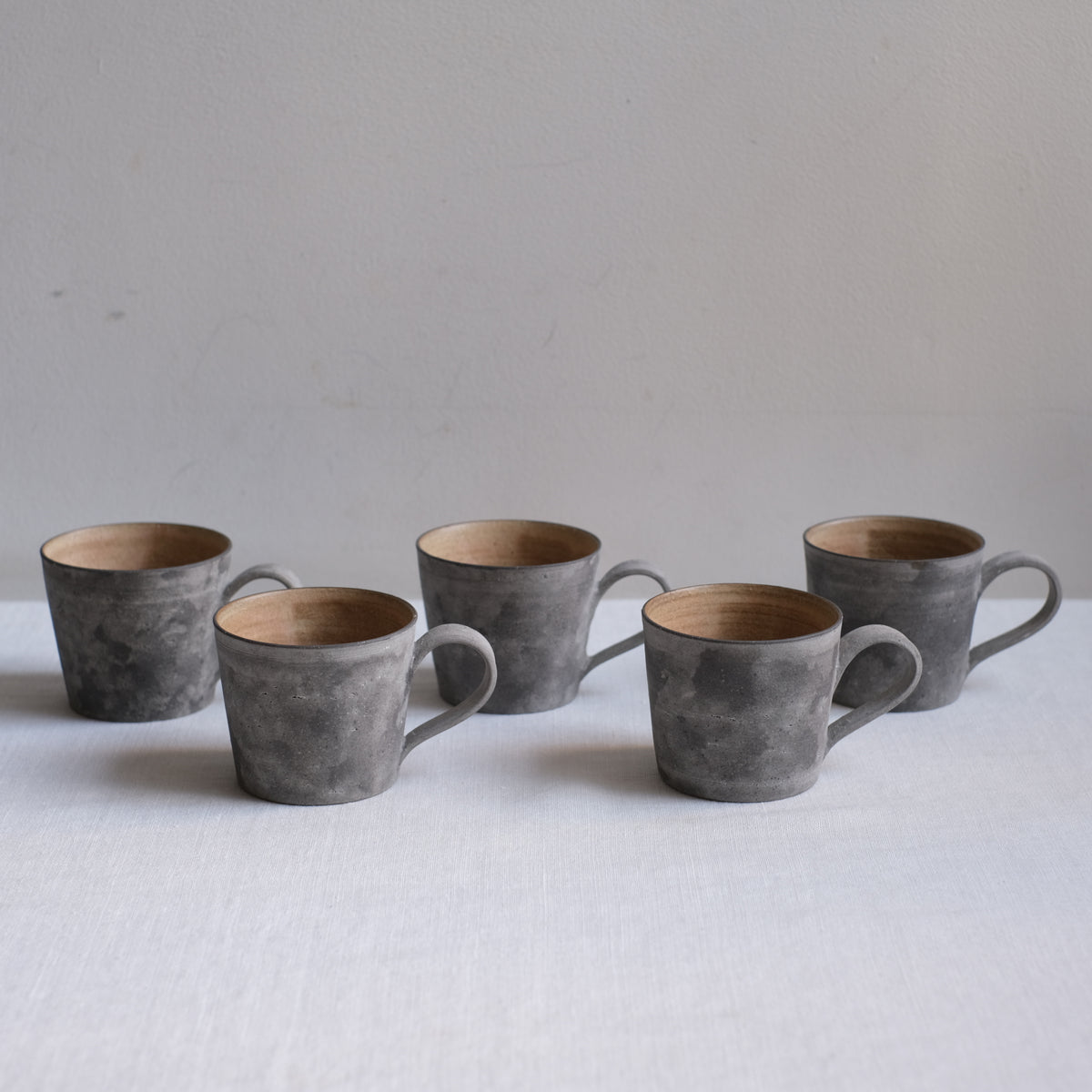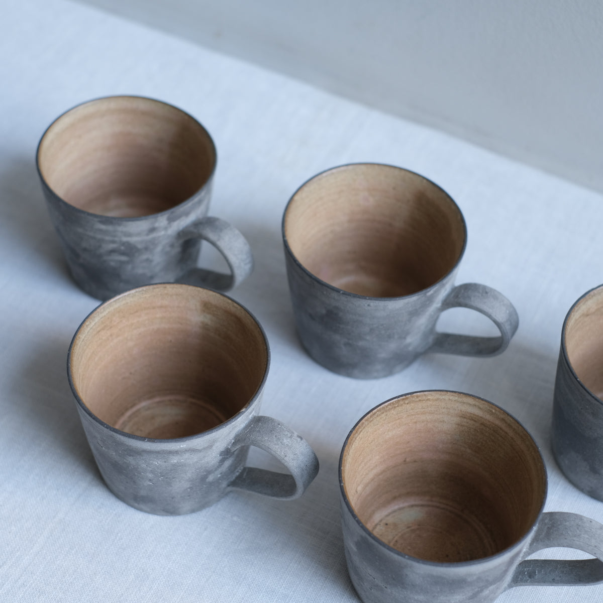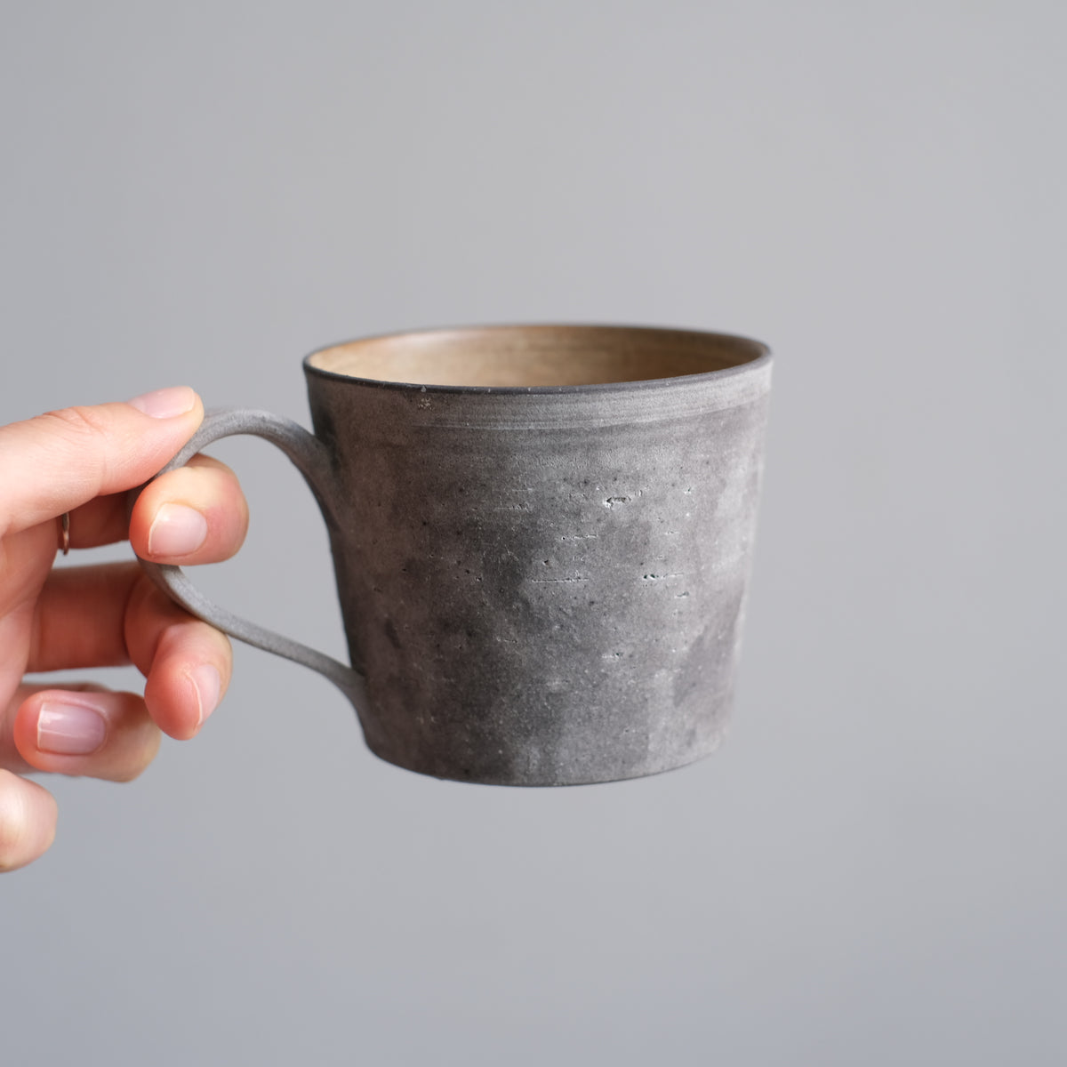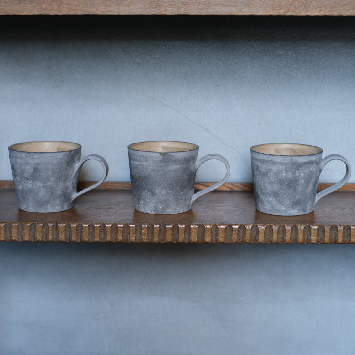 岐阜県多治見で焼き物を学んだ後、現在は岡山に拠点を移し作陶されている大森健司さん。化粧土と呼ばれる器の制作過程で使われる素材を使ったグレーや赤。釉薬と違った色の美しさがあります。可愛らしい内側の釉薬ともバランスが良く、何より薄めで口当たりの良いコップは丁寧に淹れた珈琲にかかせないアイテムです。