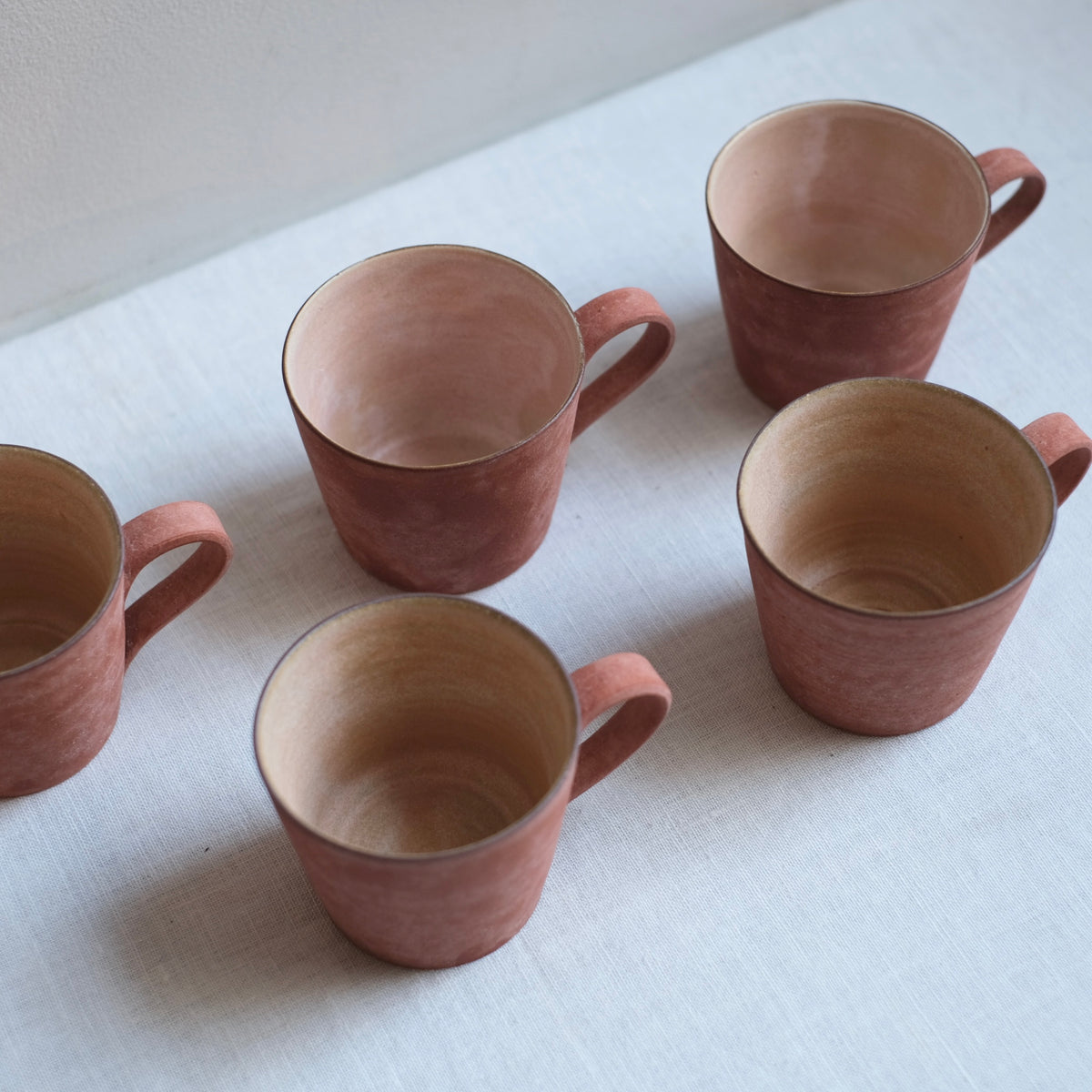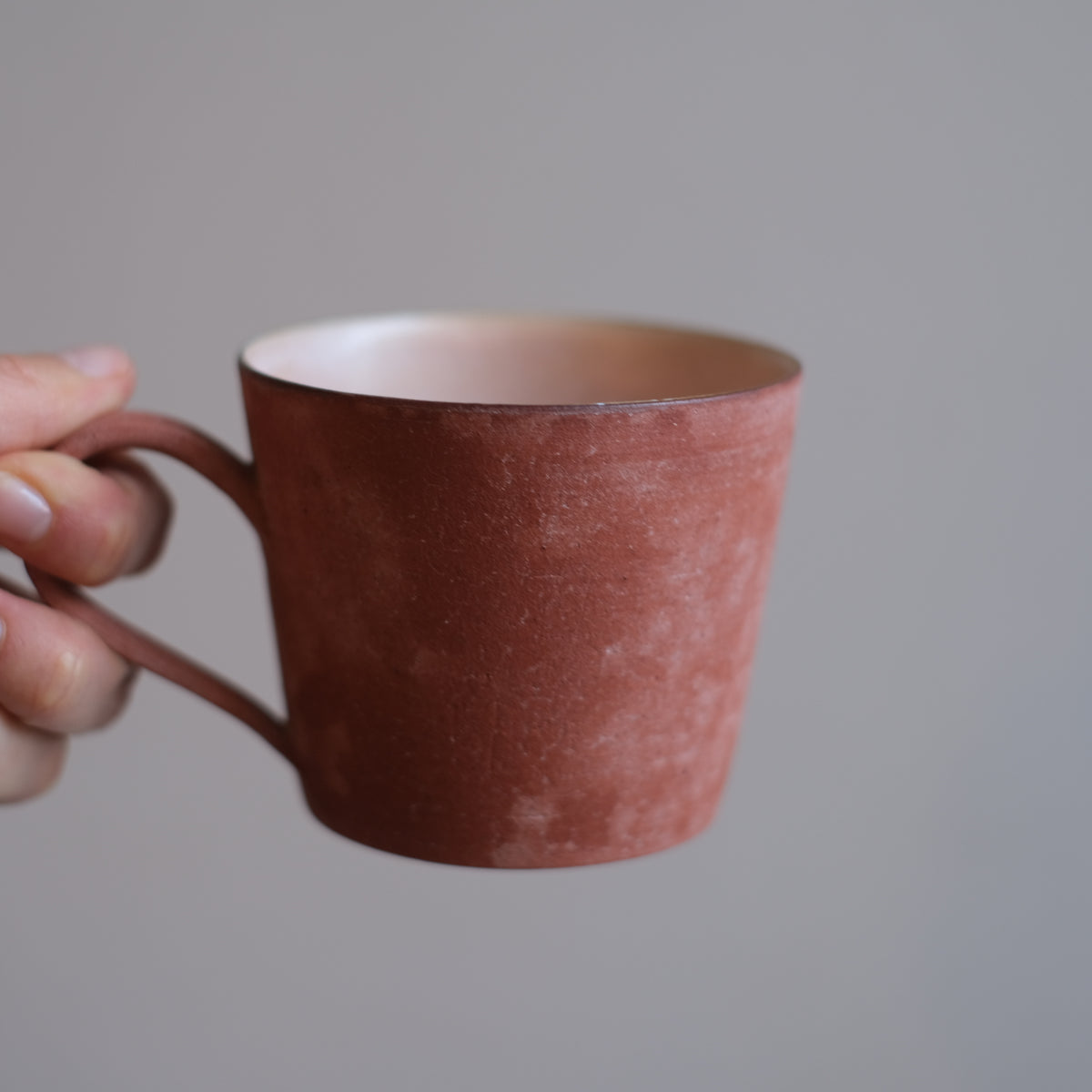 大森さん定番のマグカップ。内側は少しピンクベージュの釉薬がかかっています。
