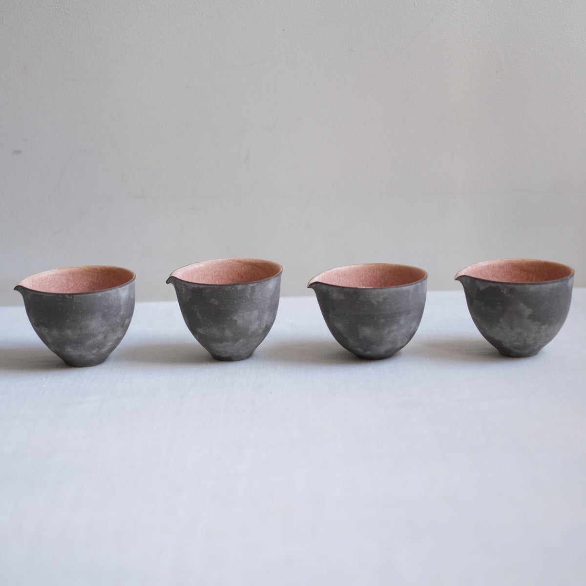 岐阜県多治見で焼き物を学んだ後、現在は岡山に拠点を移し作陶されている大森健司さん。化粧土と呼ばれる器の制作過程で使われる素材を使ったグレーや赤。釉薬と違った色の美しさがあります。可愛らしい内側の釉薬ともバランスが良く、何より薄めで口当たりの良いコップは丁寧に淹れた珈琲にかかせないアイテムです。