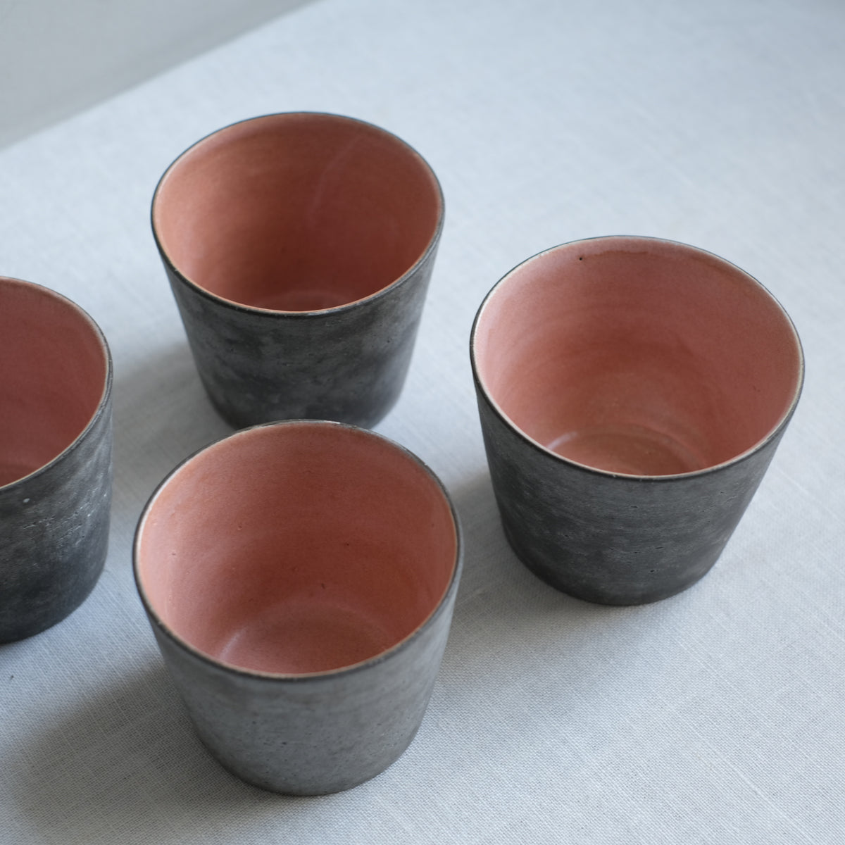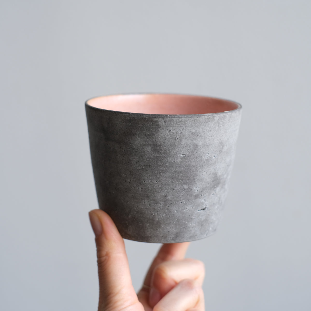 岐阜県多治見で焼き物を学んだ後、現在は岡山に拠点を移し作陶されている大森健司さん。化粧土と呼ばれる器の制作過程で使われる素材を使ったグレーや赤。釉薬と違った色の美しさがあります。可愛らしい内側の釉薬ともバランスが良く、何より薄めで口当たりの良いコップは丁寧に淹れた珈琲にかかせないアイテムです。