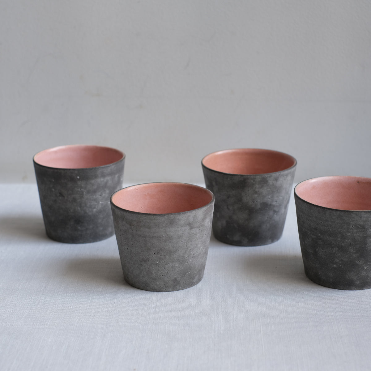内側に赤みがかった釉薬をかけたカップ。蕎麦猪口の形なので、毎日のお茶を入れたり、小鉢として使ってもちょうどよいサイズ。
