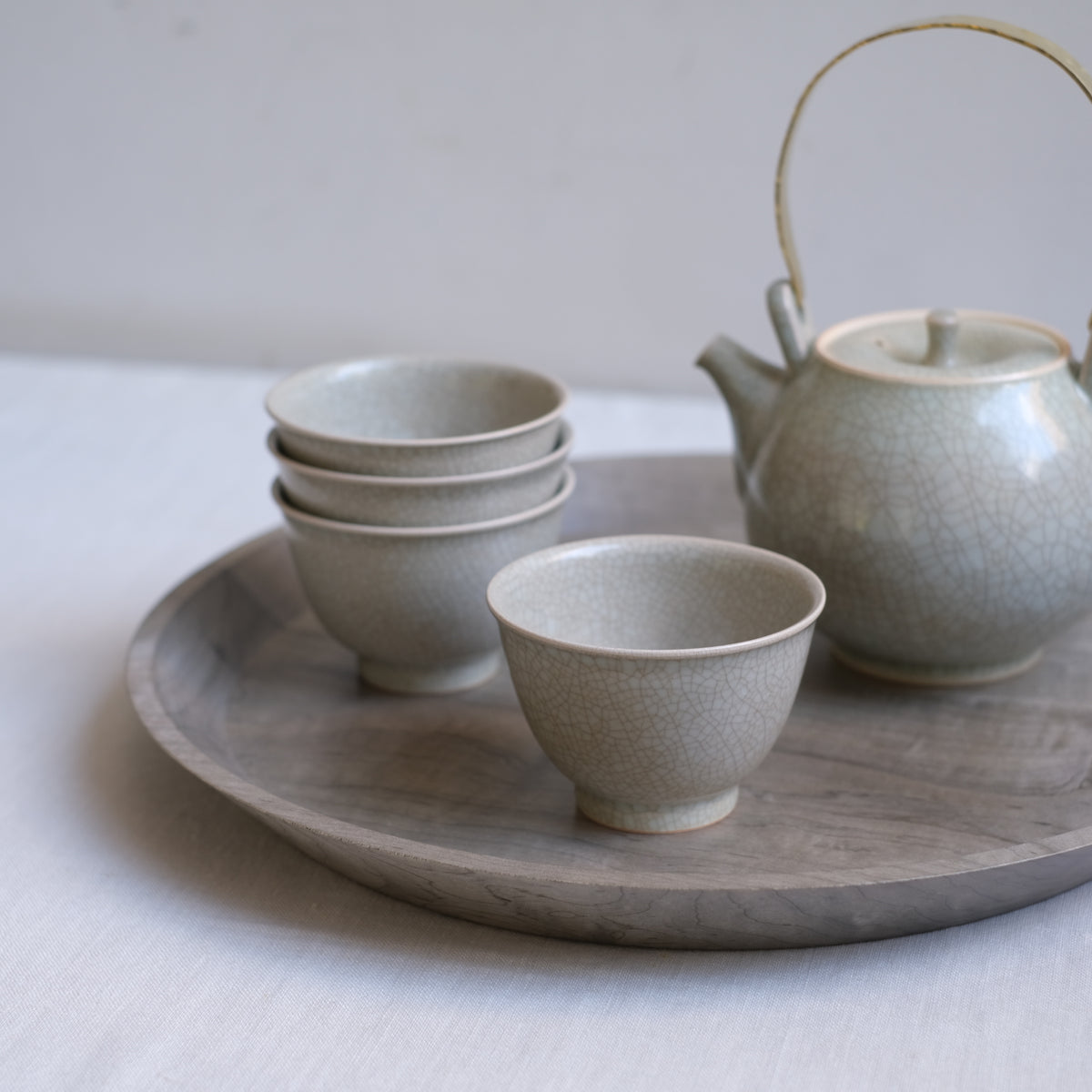 岐阜県多治見市にて制作されている石黒さん。しっかり入った貫入はどこか懐かしく落ち着いた表情。白磁や青磁のやわらかであたたかみのある雰囲気をお楽しみください。