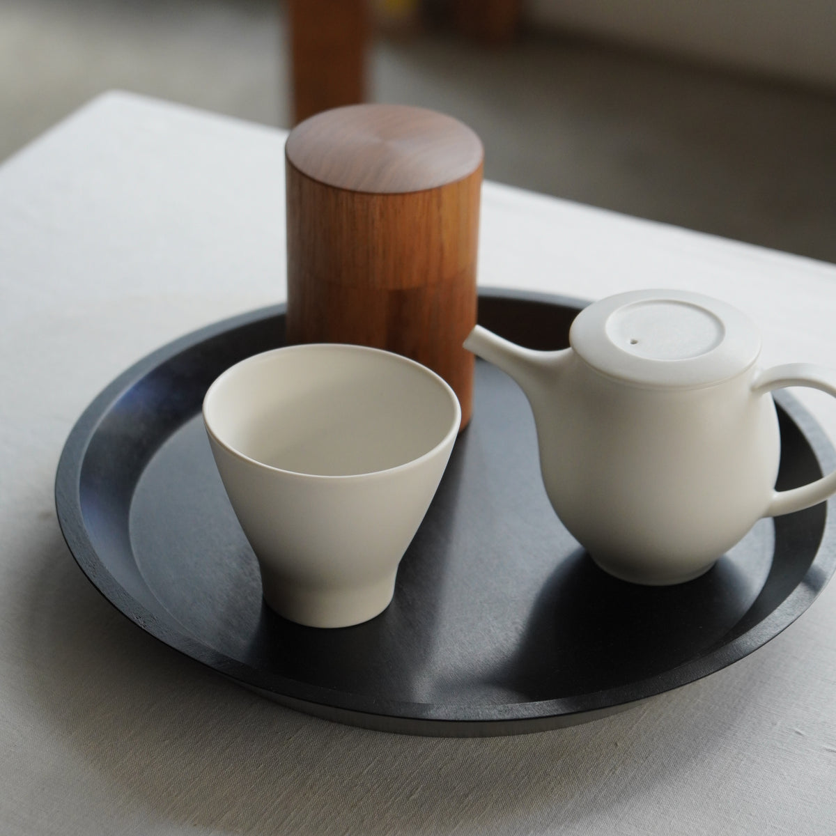 水切れのよい注器や、口当たりの心地よいカップなど、ほんのりマットでなめらかな白い器。曲線が美しく、愛らしい形で、お茶や食べ物の色を美しく引き出してくれます。