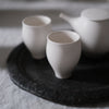 水切れのよい注器や、口当たりの心地よいカップなど、ほんのりマットでなめらかな白い器。曲線が美しく、愛らしい形で、お茶や食べ物の色を美しく引き出してくれます。