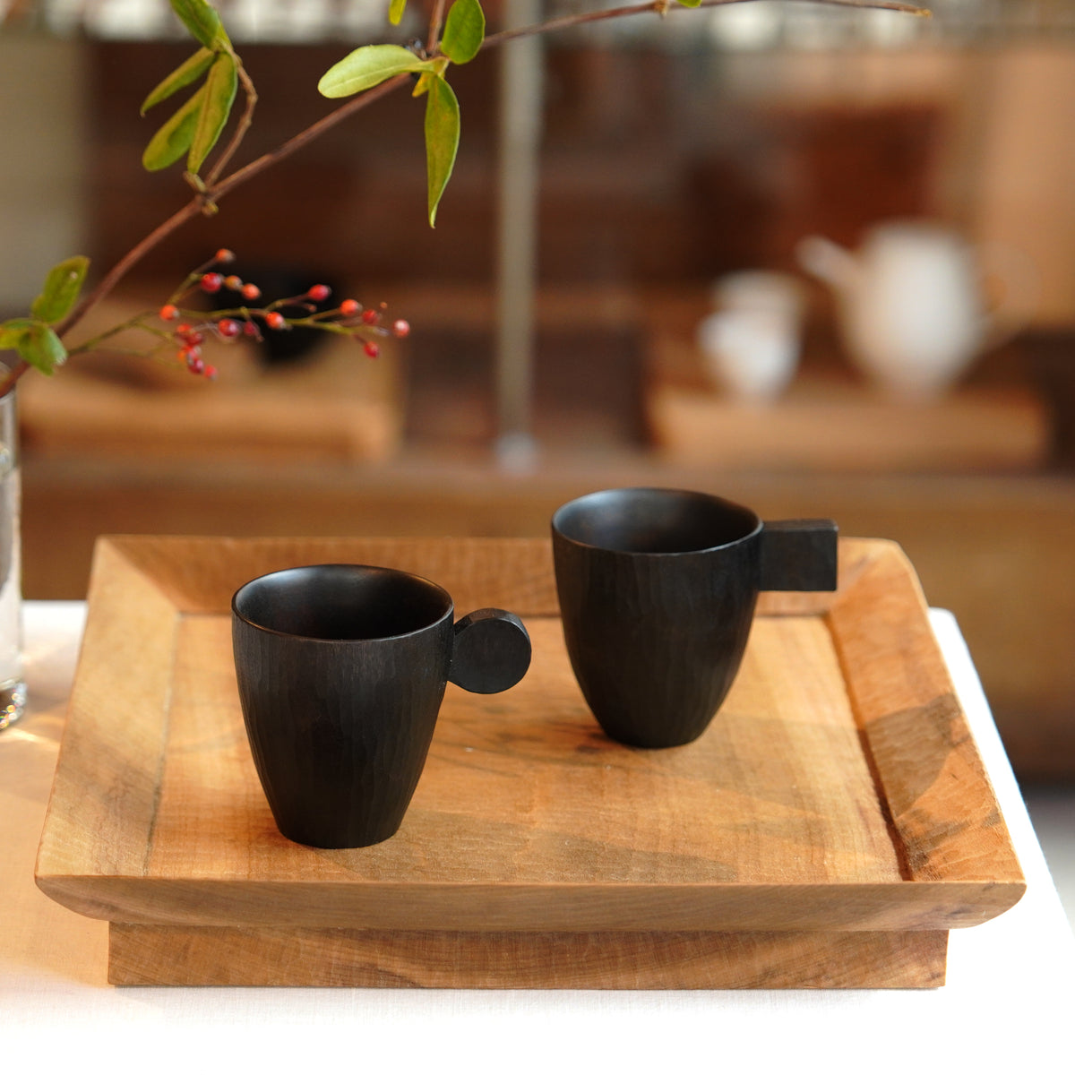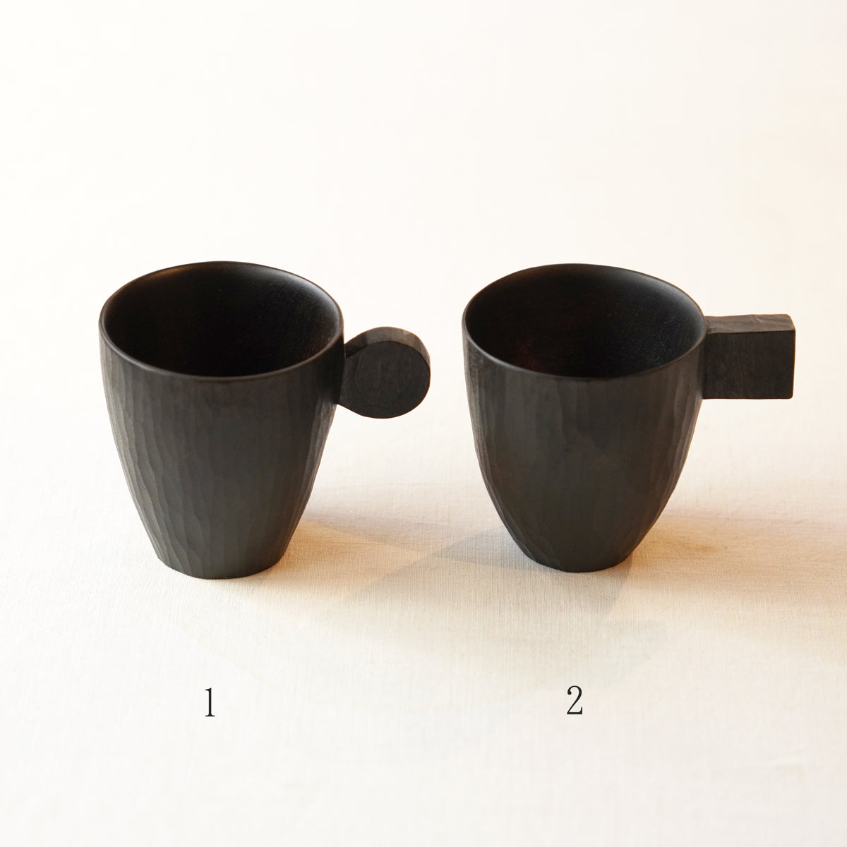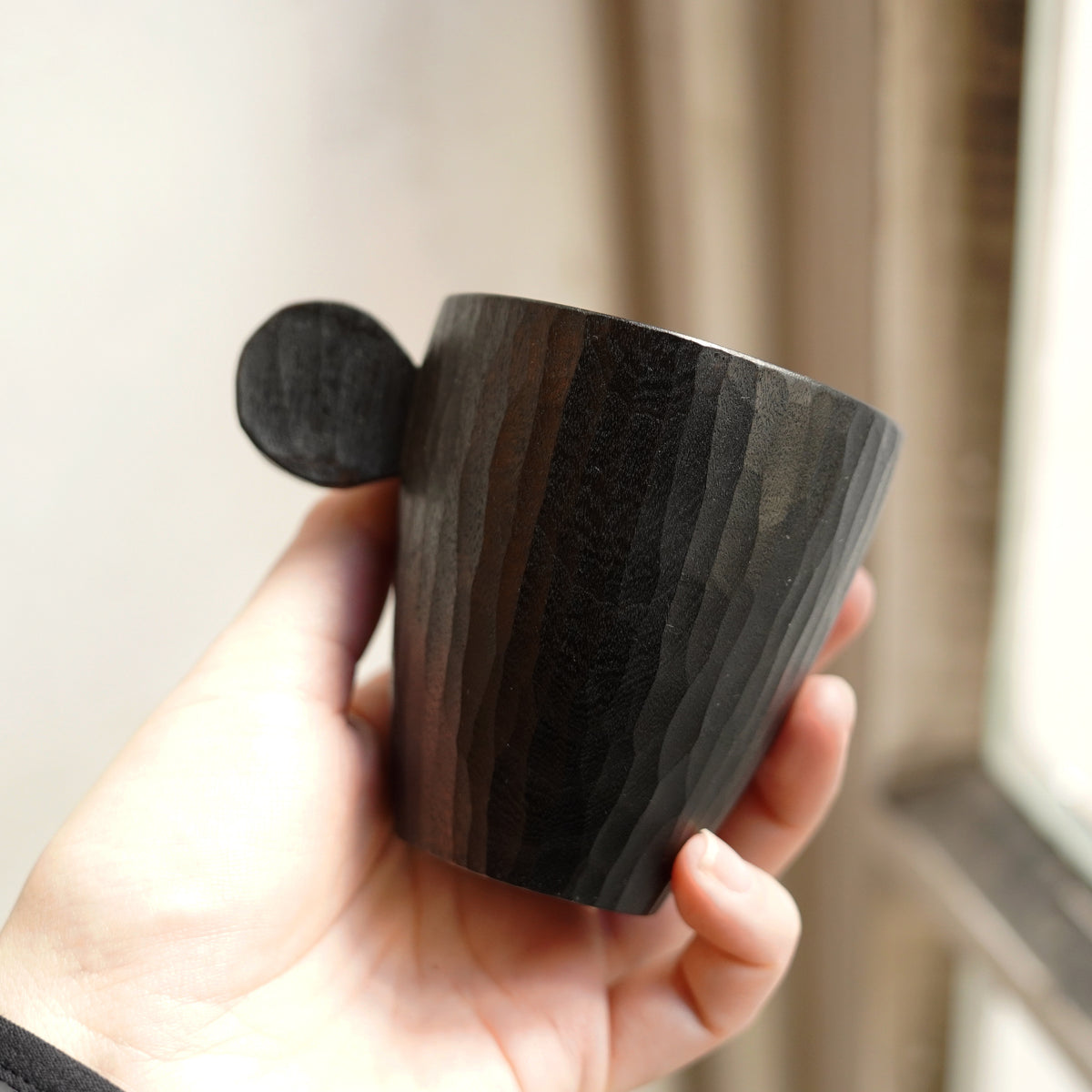 木を丁寧にくりぬいて作られた持ち手付きのカップ。