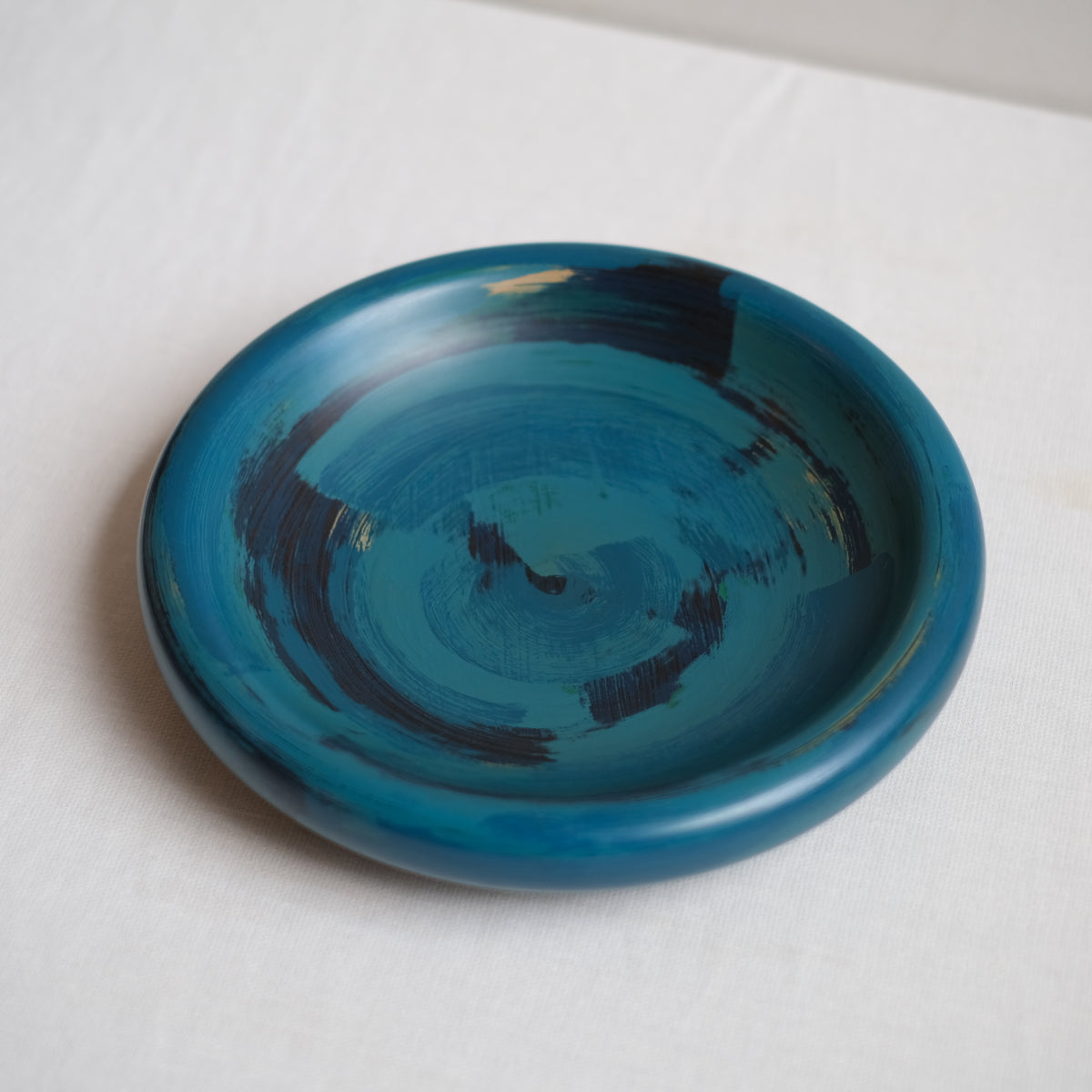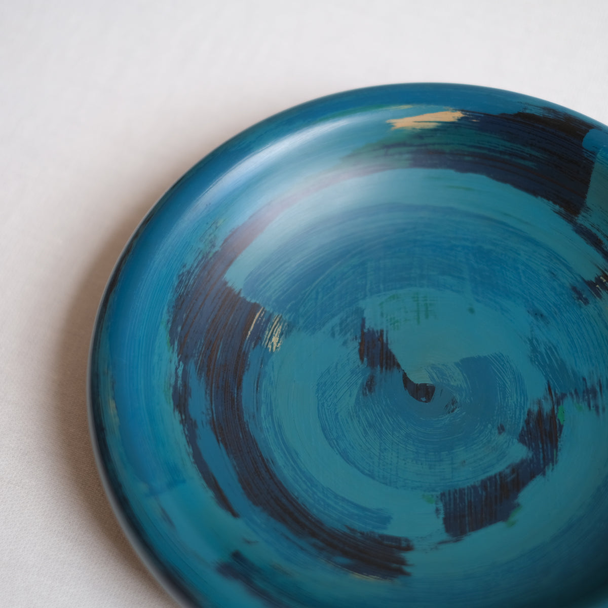 もっと気軽に使える漆器をという思いで、刷毛目を残す技法で仕上げています。