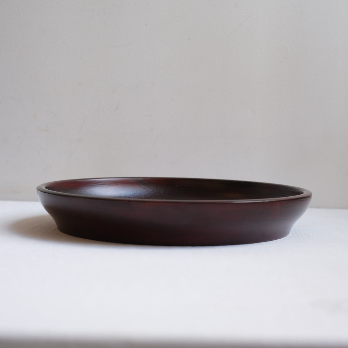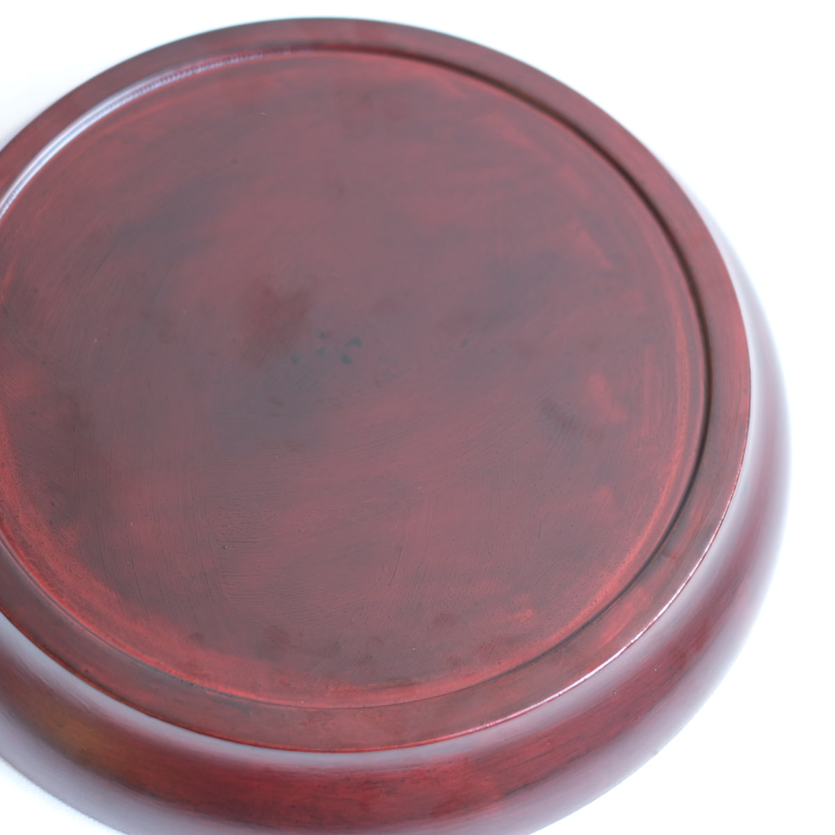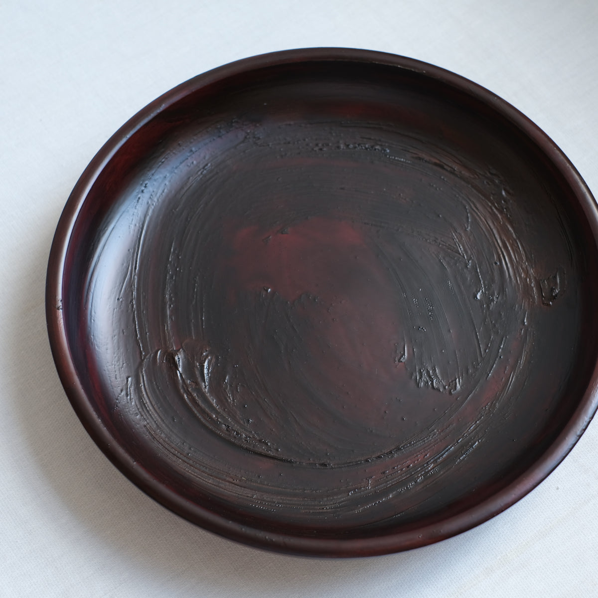 しっかり深さがあるので汁気のあるものでも気兼ねなく。大人数の時に重宝するサイズです。底に漆の溜まりが見られる珍しい一枚。