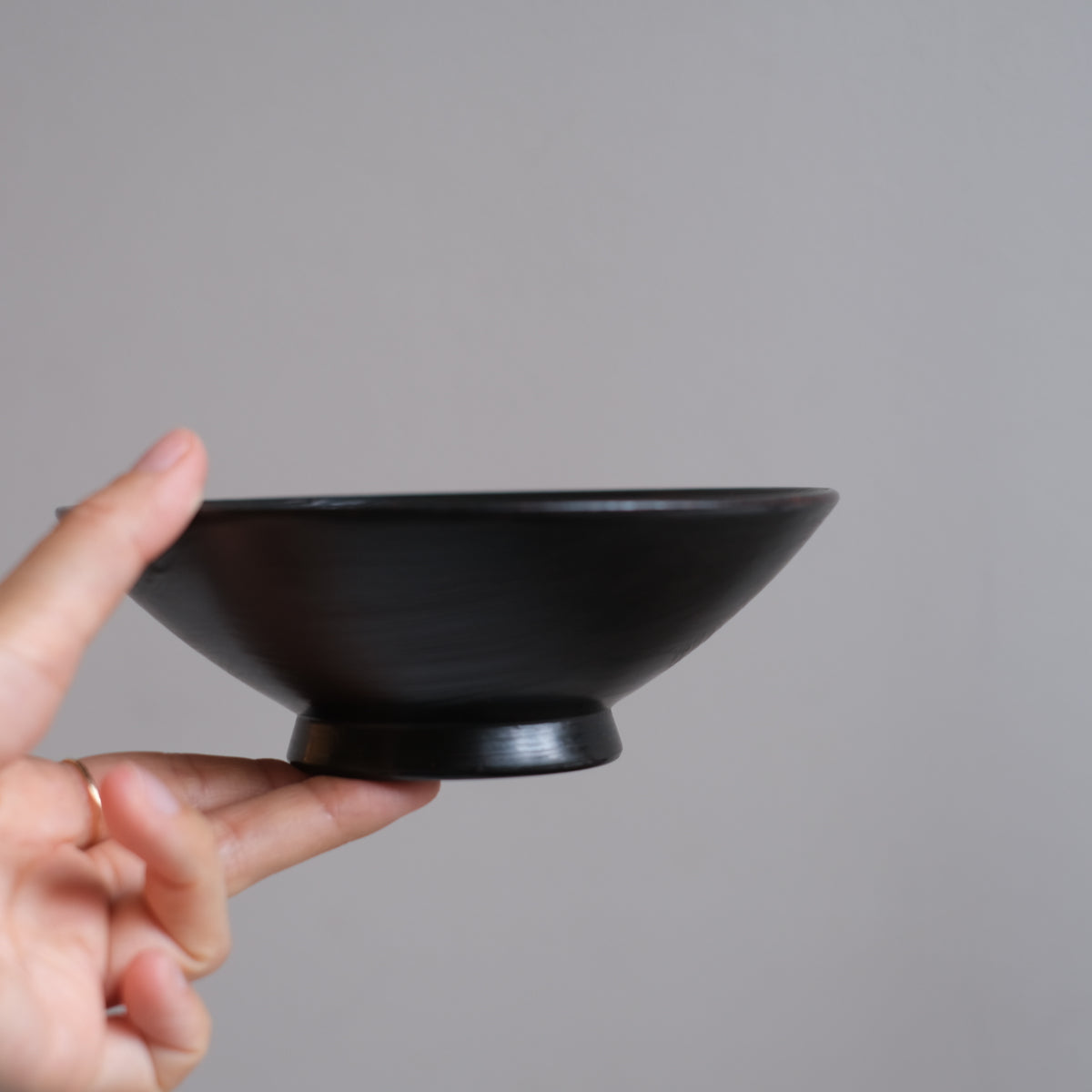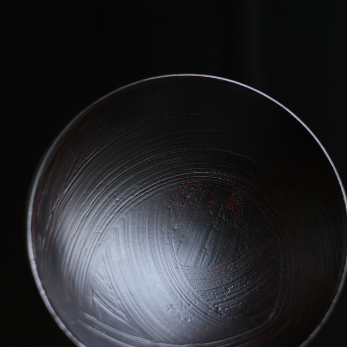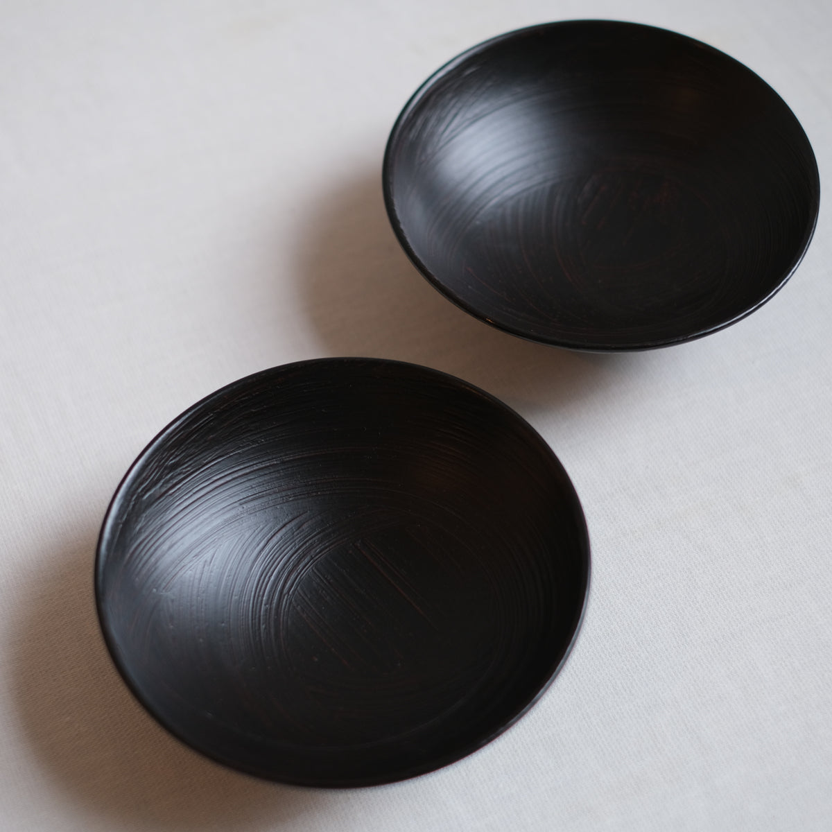 もっと気軽に使える漆器をという思いで、刷毛目を残す技法で仕上げています。