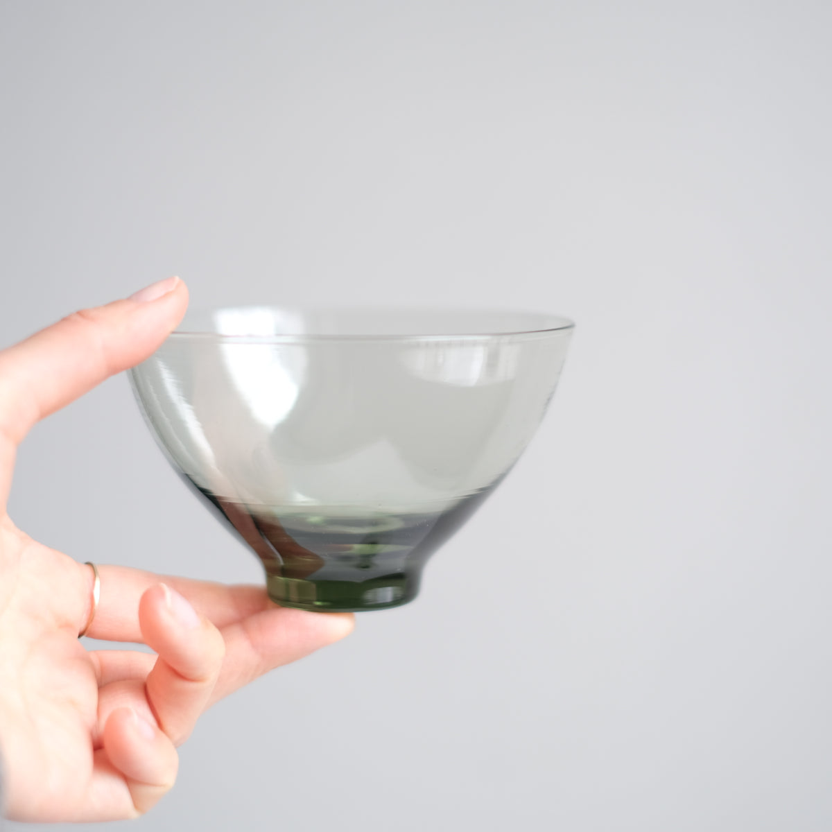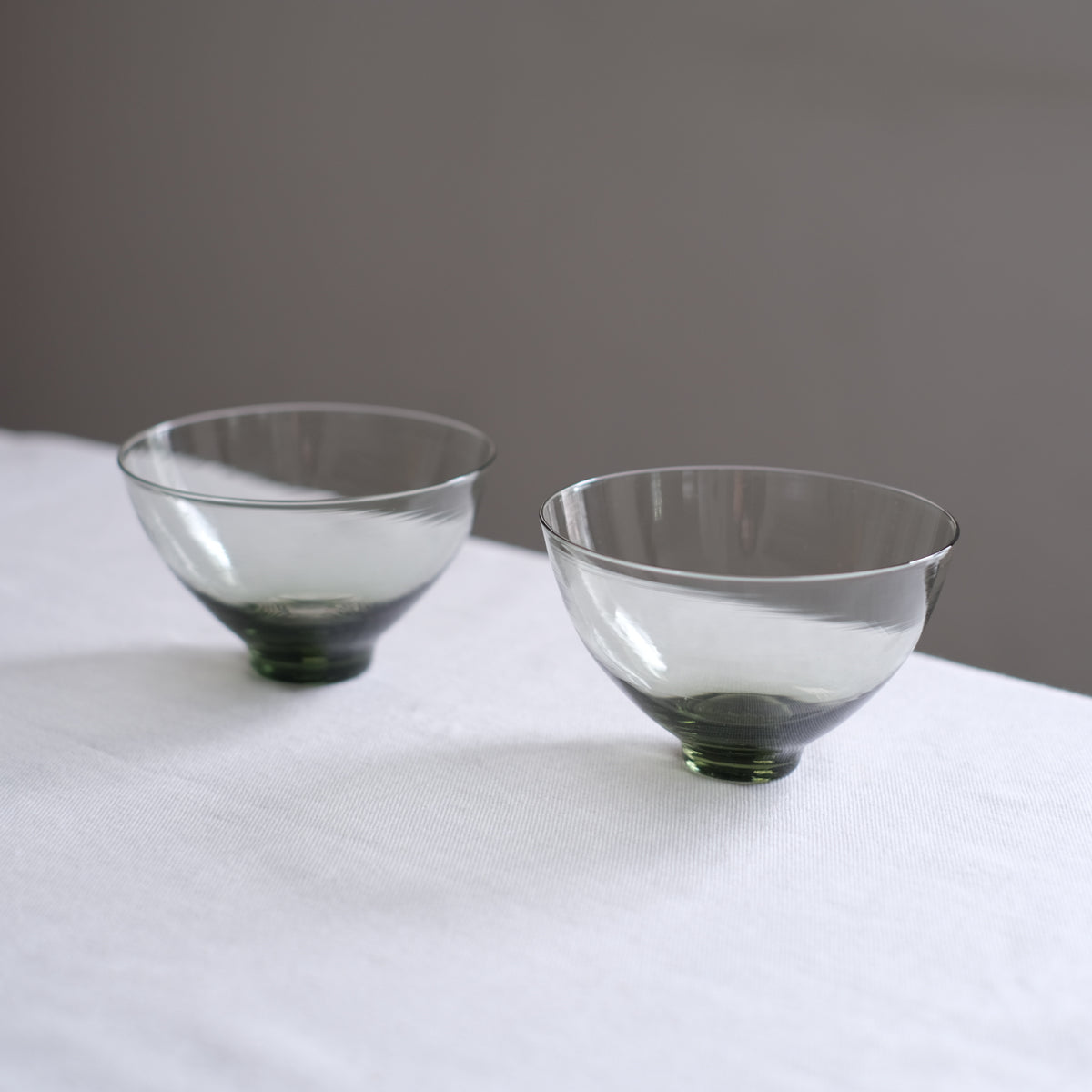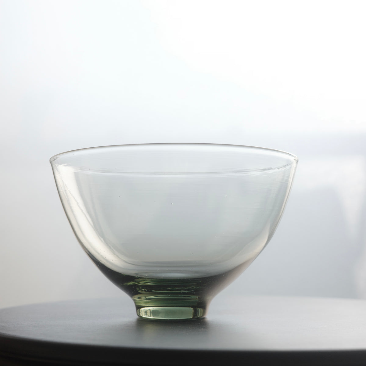 大阪堺市生まれ。現在は石川県能登島で制作されています。有永さんの工房で調合されたガラスは角度により青みや紫を感じ自然光と照明、飲み物の色によっても変化し瞬間の美しさに魅了されます。