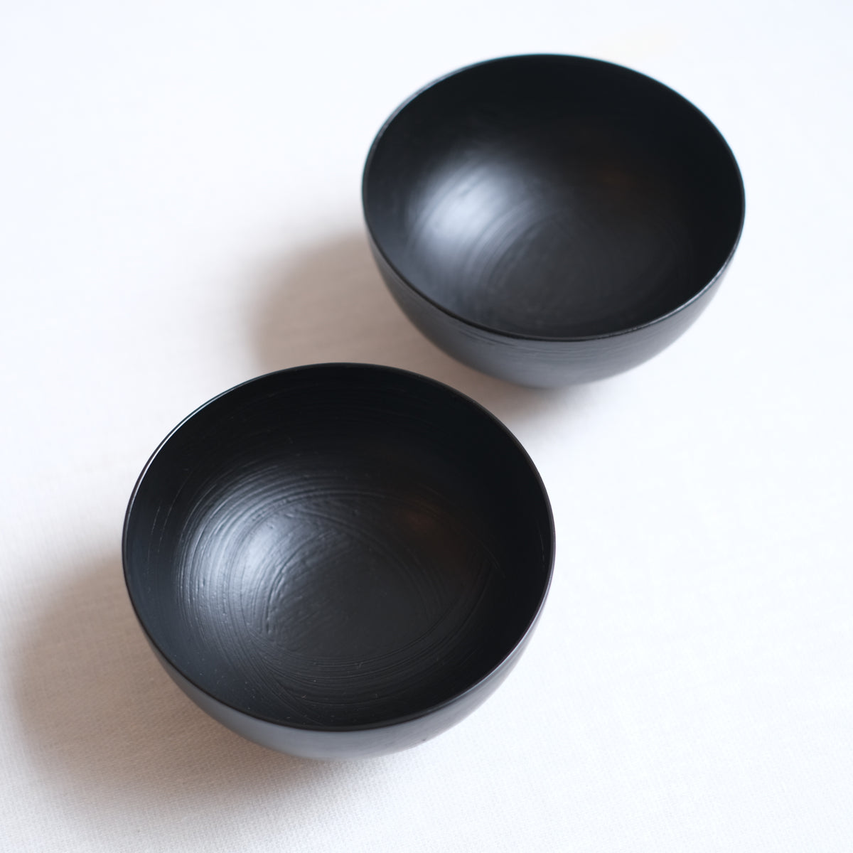 素地:ケヤキの木をくり抜き、漆塗りした作品です。しっかりした木地の厚さがあるので、熱い汁物を入れても、熱さを気にせずに手に持つことができます。