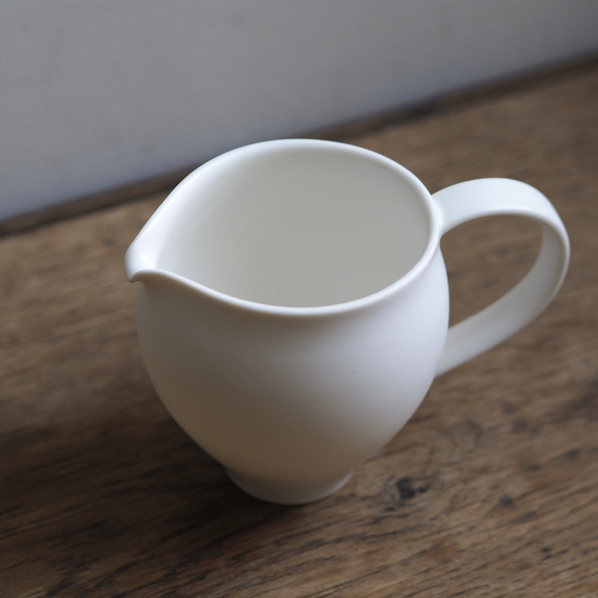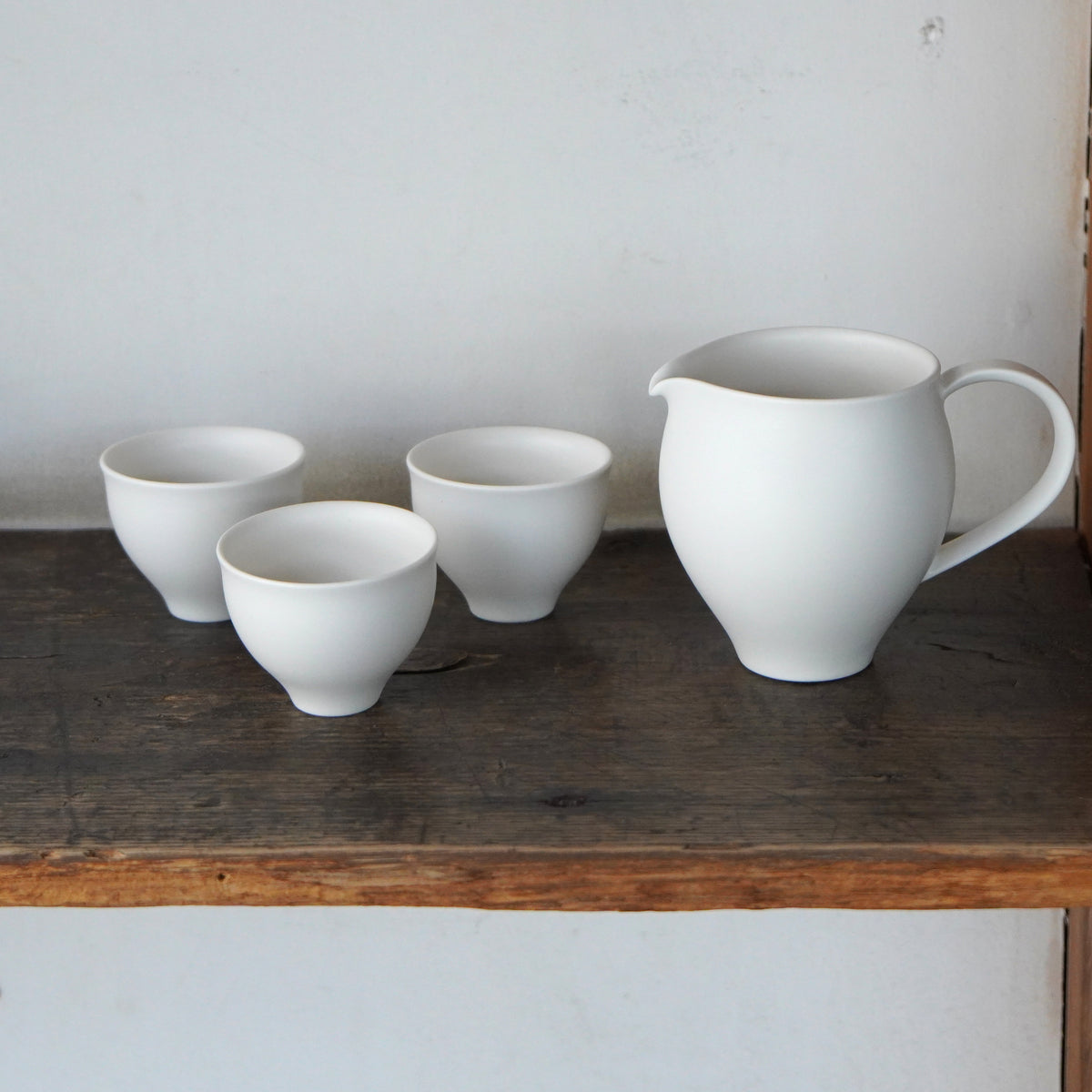 水切れのよい注器や、口当たりの心地よいカップなど、ほんのりマットでなめらかな白い器。曲線が美しく、愛らしい形で、お茶や食べ物の色を美しく引き出してくれます。