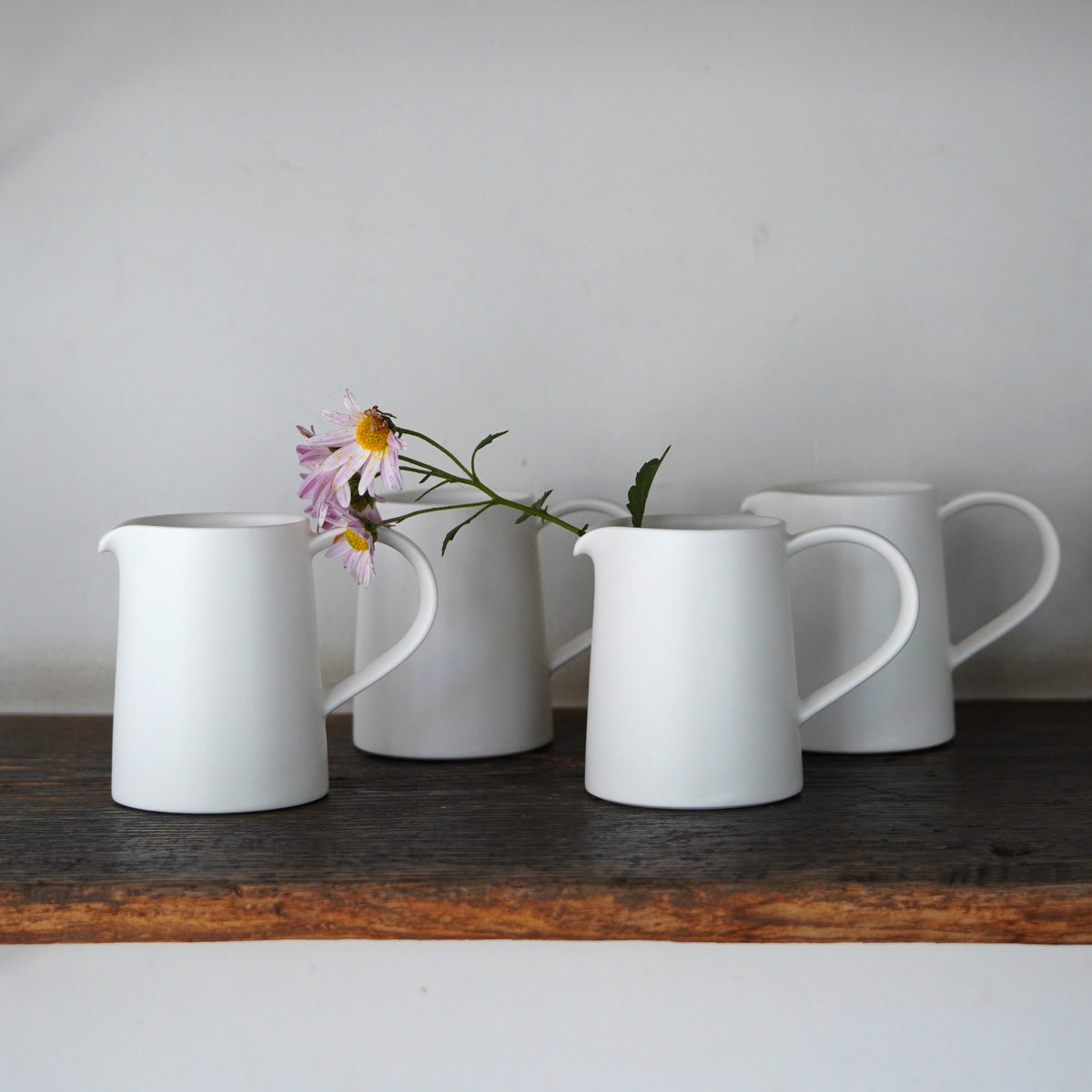 水切れのよい注器や、口当たりの心地よいカップなど、ほんのりマットでなめらかな白い器。曲線が美しく、愛らしい形で、お茶や食べ物の色を美しく引き出してくれます。