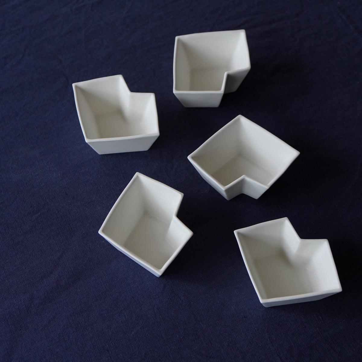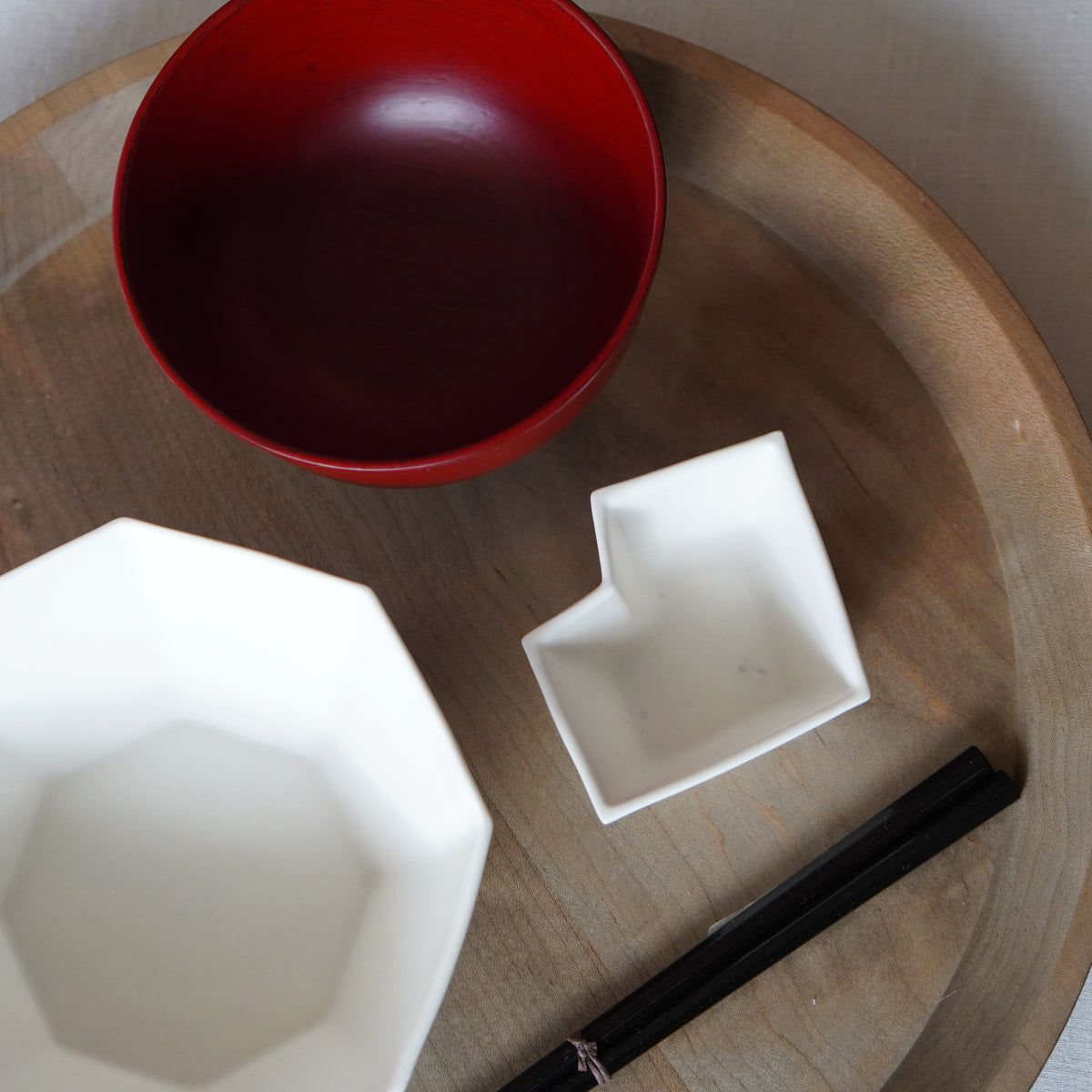 水切れのよい注器や、口当たりの心地よいカップなど、ほんのりマットでなめらかな白い器。曲線が美しく、愛らしい形で、お茶や食べ物の色を美しく引き出してくれます。