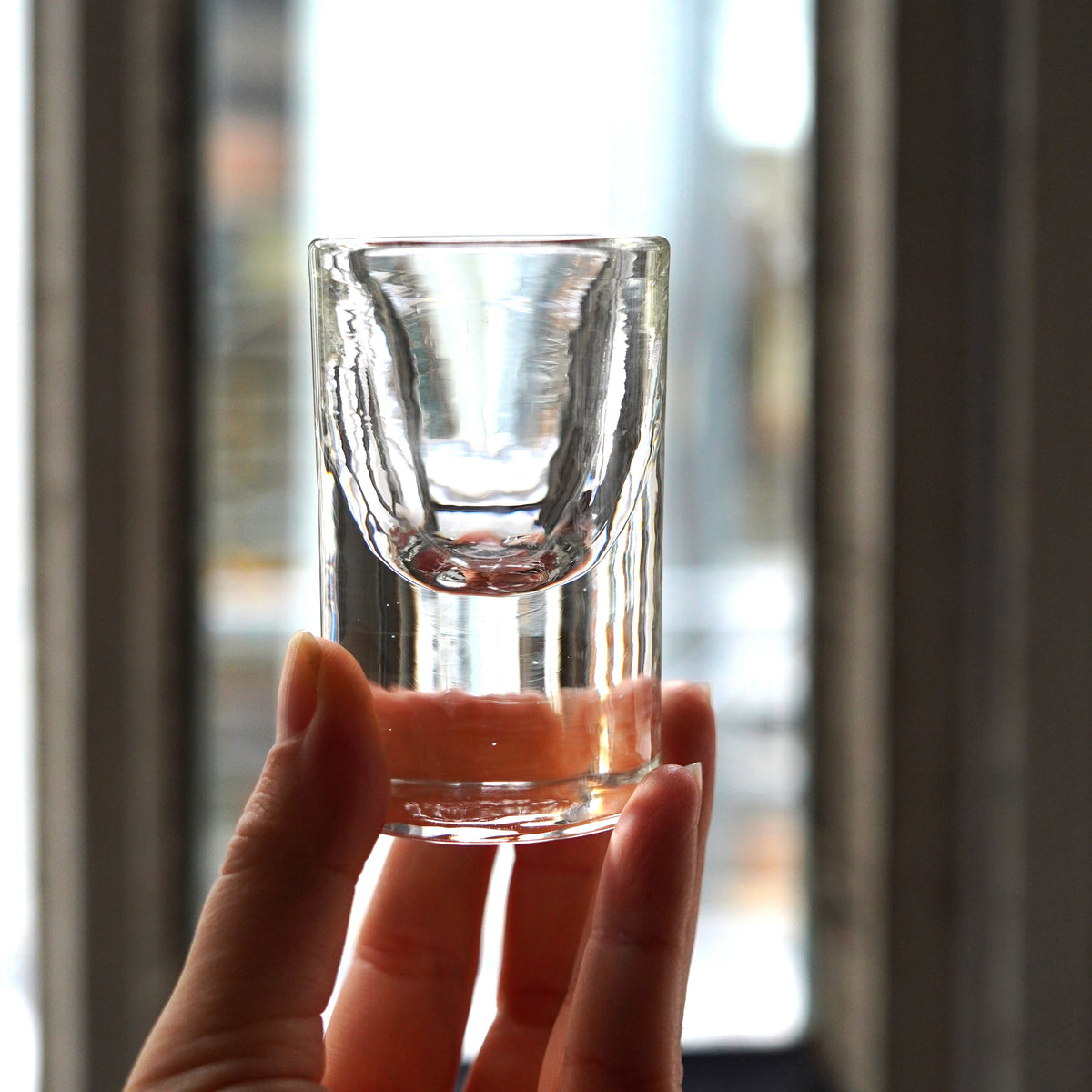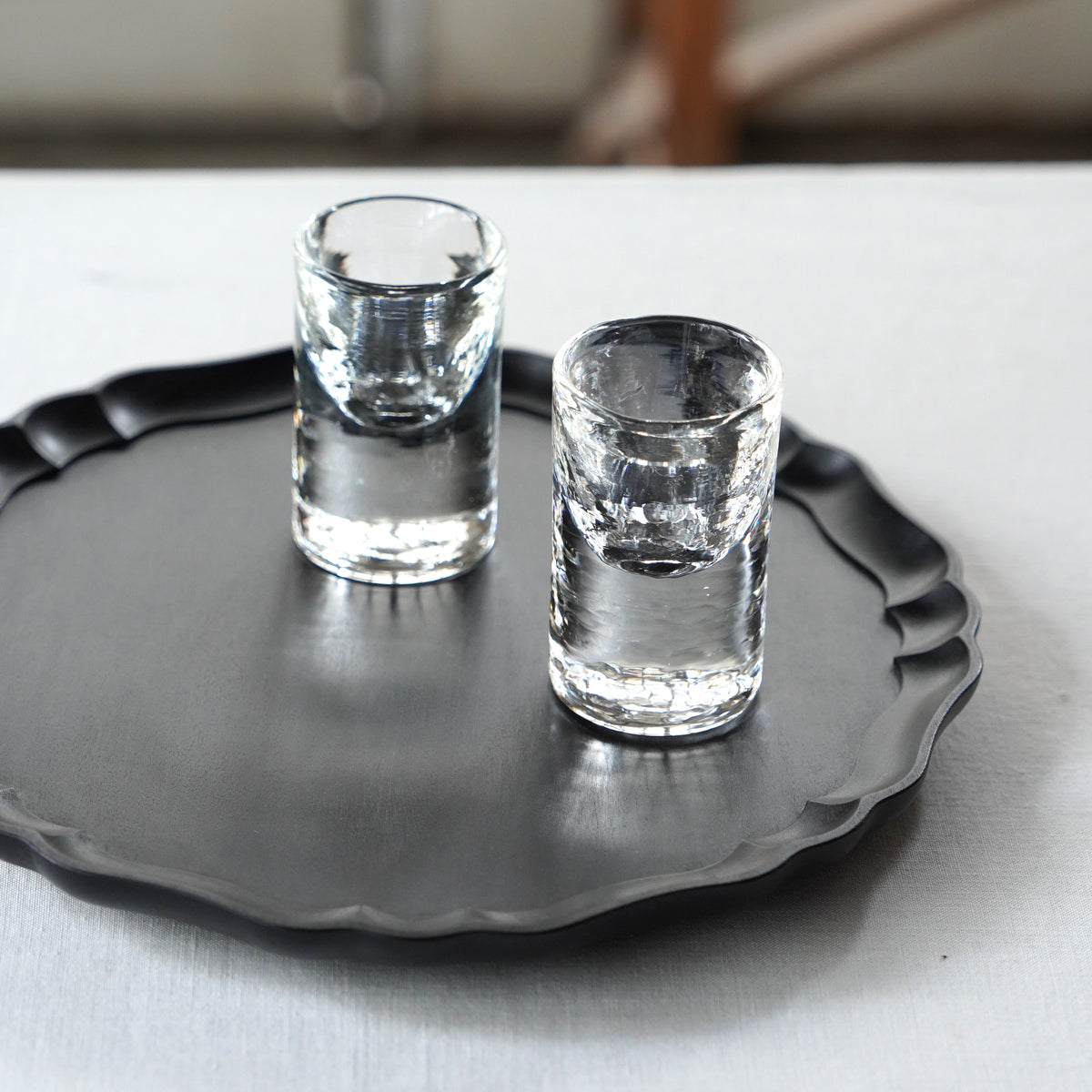 ずっしりと重みのあるショットグラス。グレーのものよりやや小さめです。