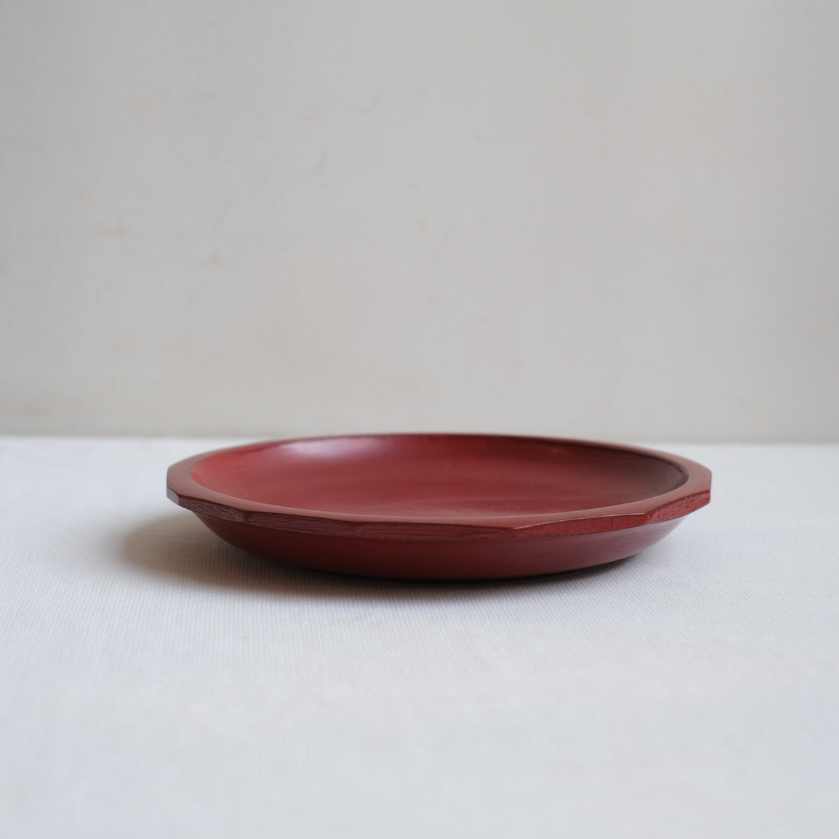 根来塗から覗く黒色と刷毛の跡が印象的なパン皿。