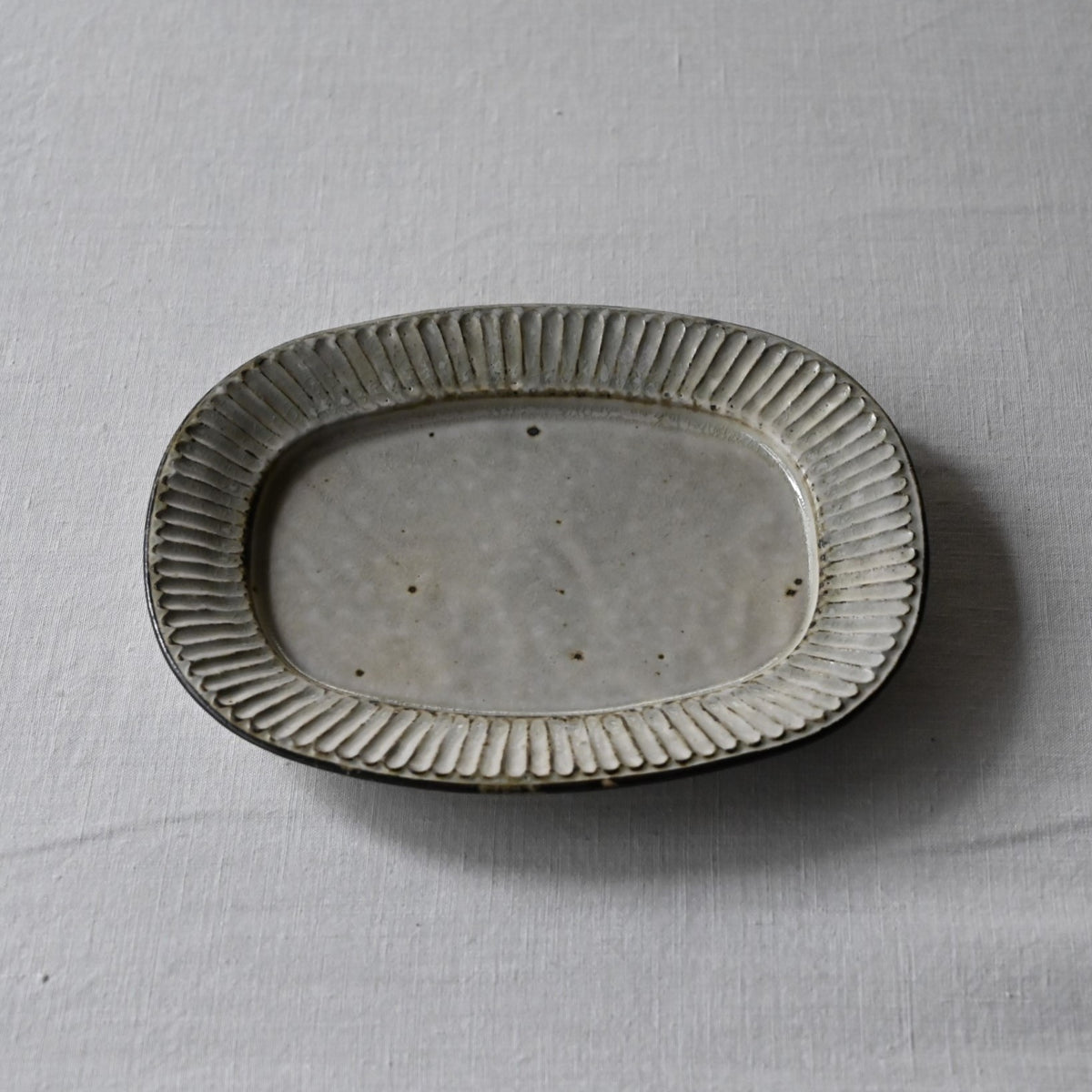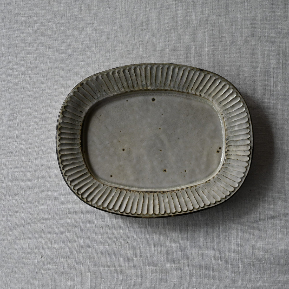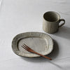 器を作る工程の中でも鎬を入れていく作業がお好きで、その均一に施された彫り目はすっと吸い付くように手に馴染みます。丁寧に削りだされた一本一本の線が綺麗に見える形を考えて作られています。