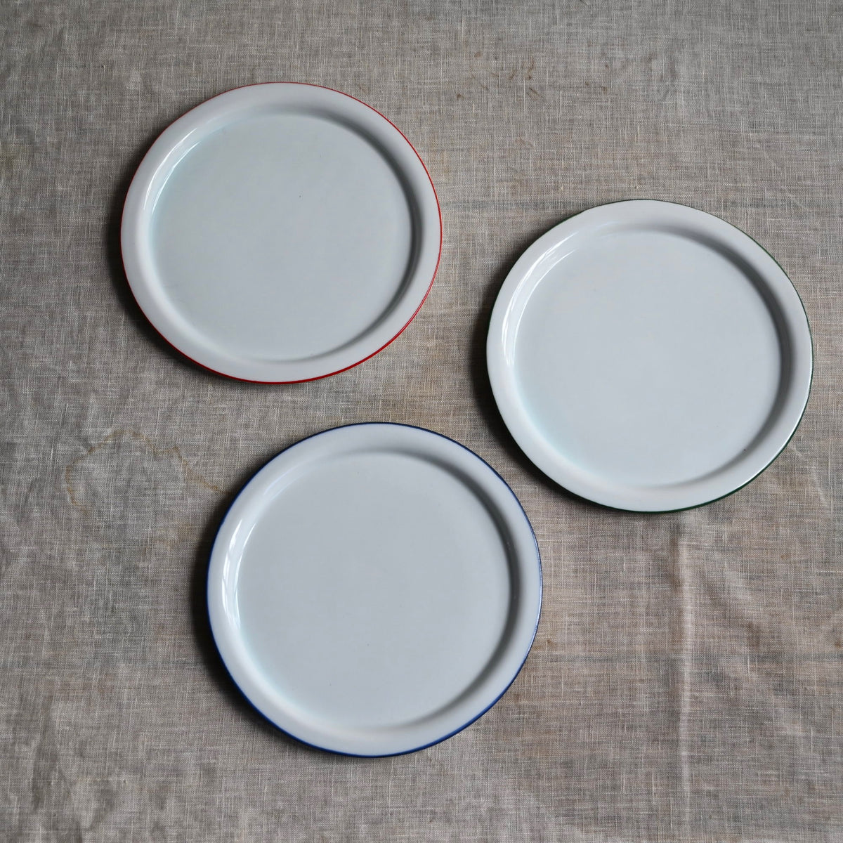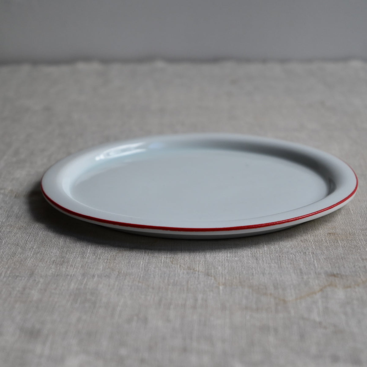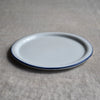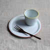 静岡県で制作される赤堀さん。琺瑯のような質感に、さりげないふちどりの色がアクセントに。懐かしさもありながら、すっきりとしたかたちは洗練された雰囲気。日々の食卓に新しい風を吹かせてくれるような器です。
