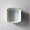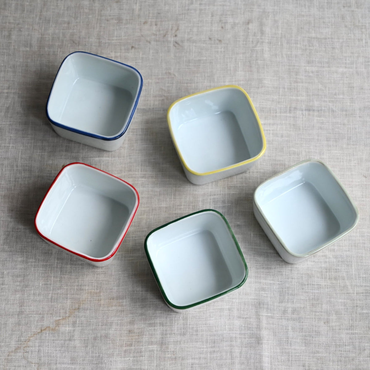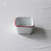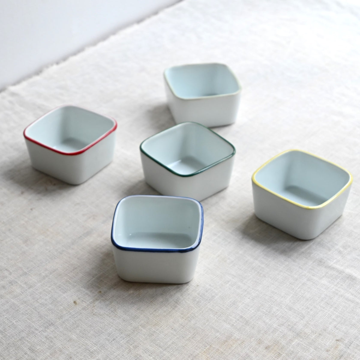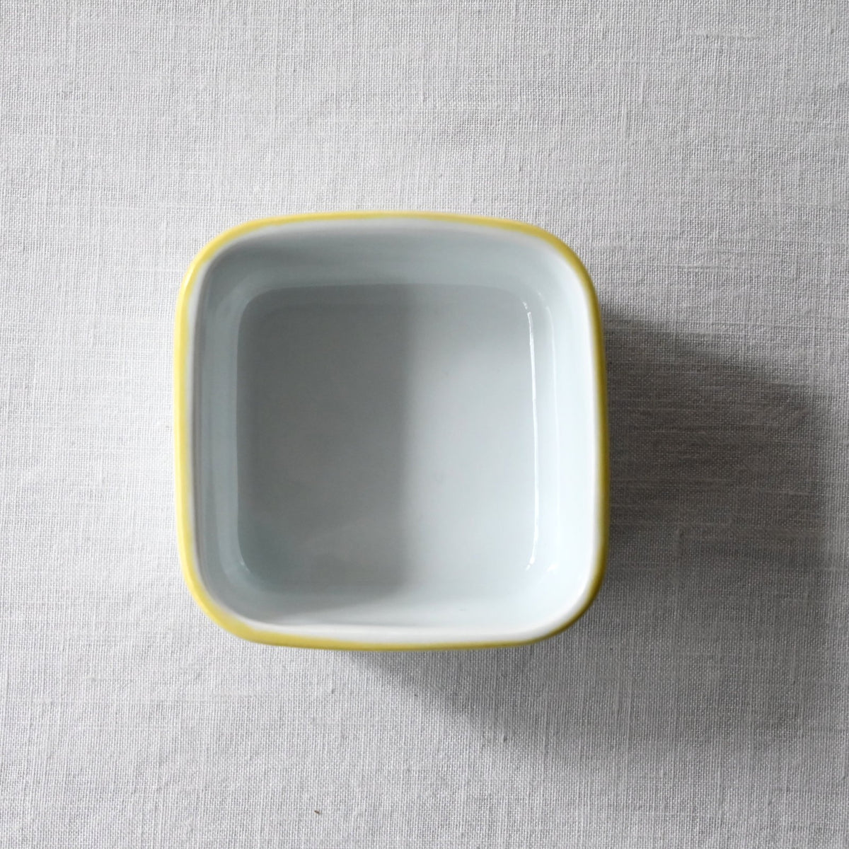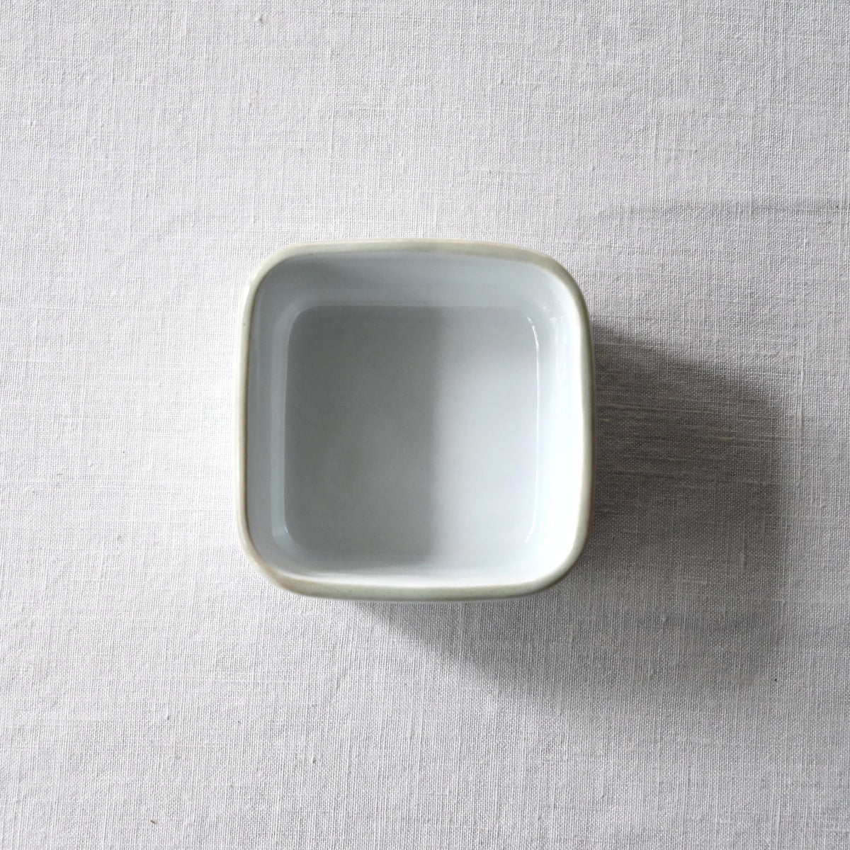 静岡県で制作される赤堀さん。琺瑯のような質感に、さりげないふちどりの色がアクセントに。懐かしさもありながら、すっきりとしたかたちは洗練された雰囲気。日々の食卓に新しい風を吹かせてくれるような器です。