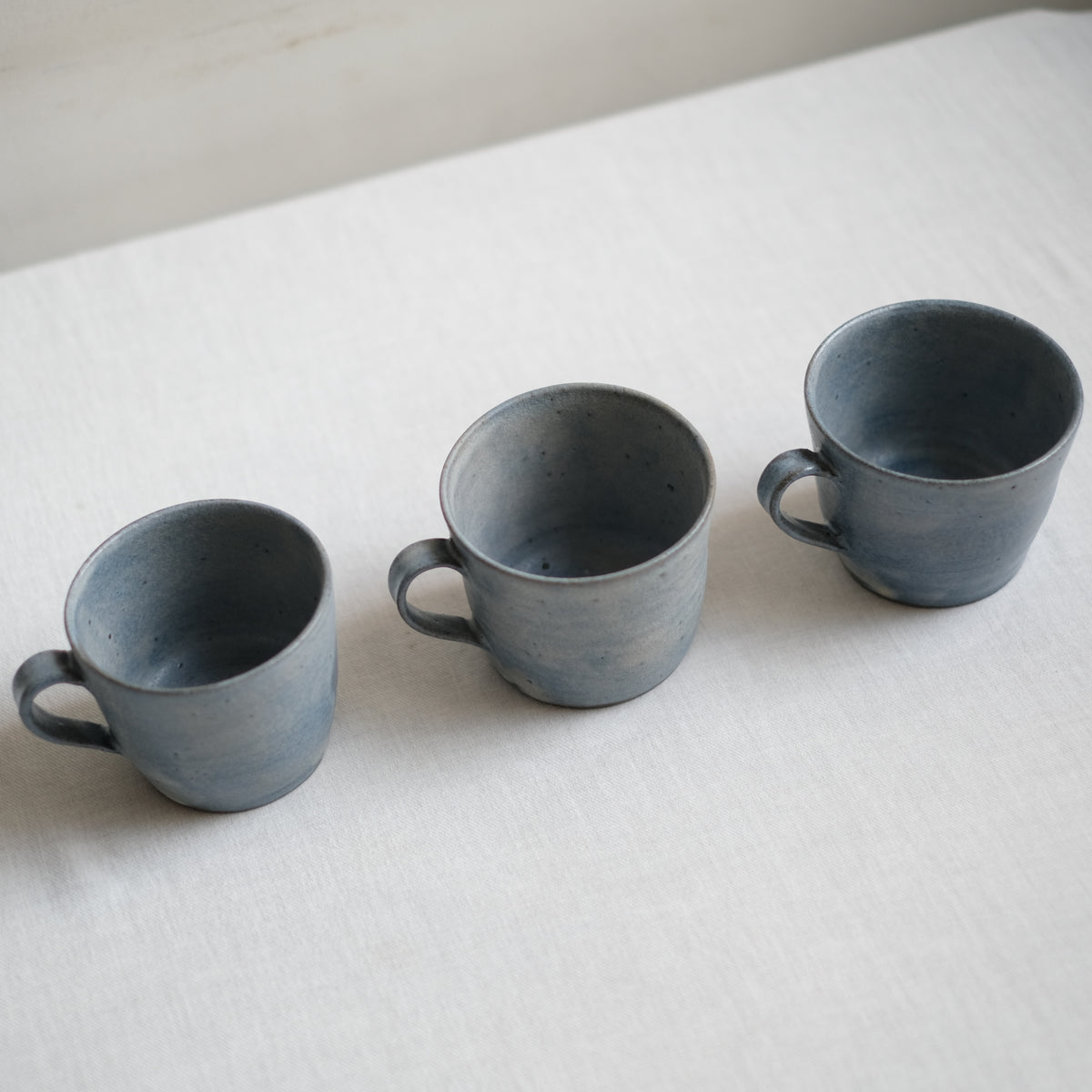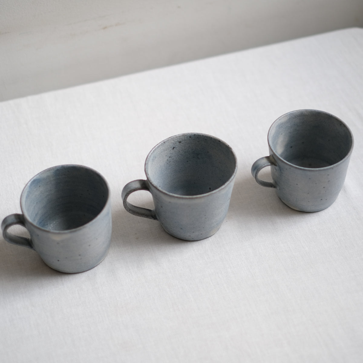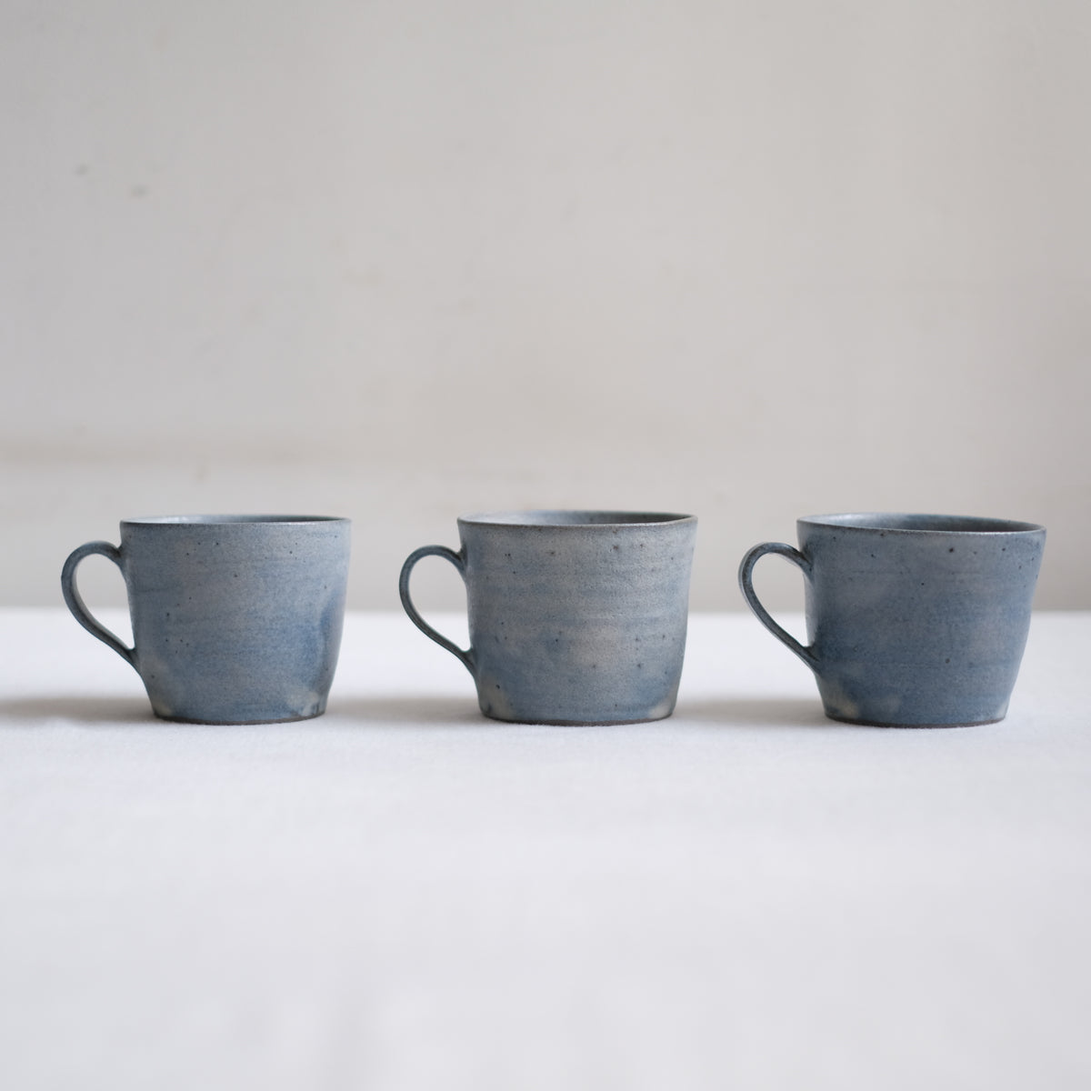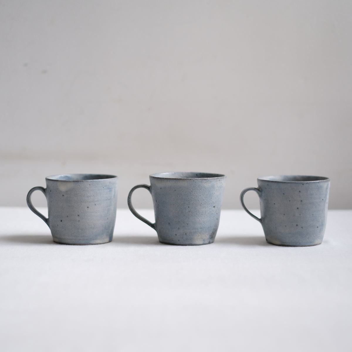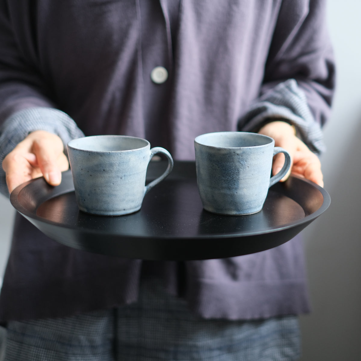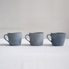 水彩画のように広がる灰と青の景色はどこかシックな雰囲気ながら、さらりと優しい質感で持ち心地良く、落ち着きのある佇まいはお茶時間のお供にぴったりです。