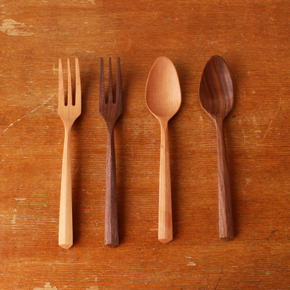 木工作家の難波行秀さんは兵庫の丹波で制作されています。ソファやチェストなど大きな家具からカトラリーやトレイといった小さなものまで。形や口当たり、軽さにこだわって作られたカトラリーは、北欧家具や鍛冶屋の道具などにも影響を受けているそうです。