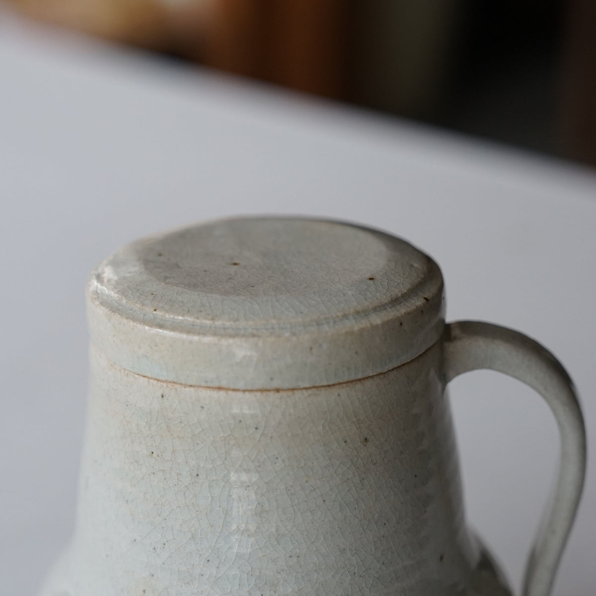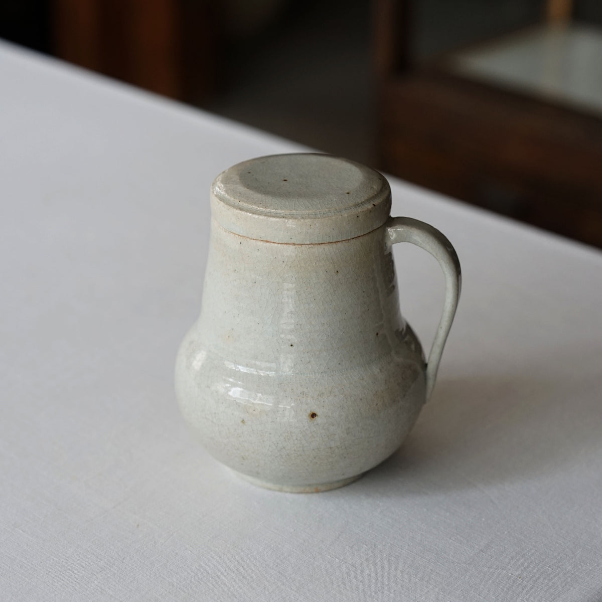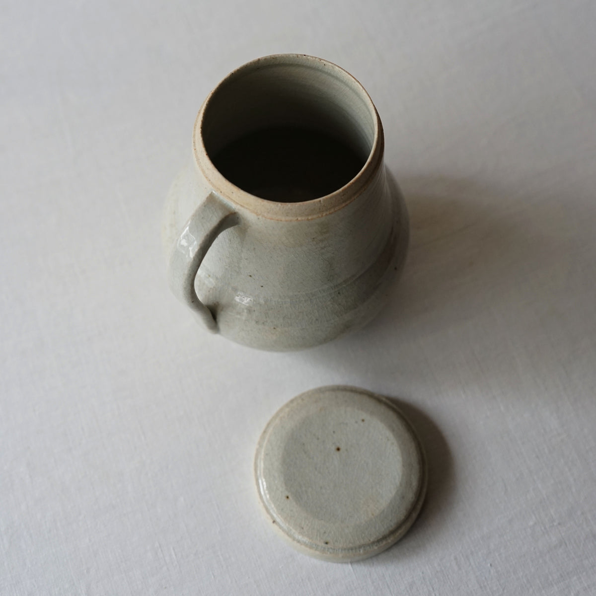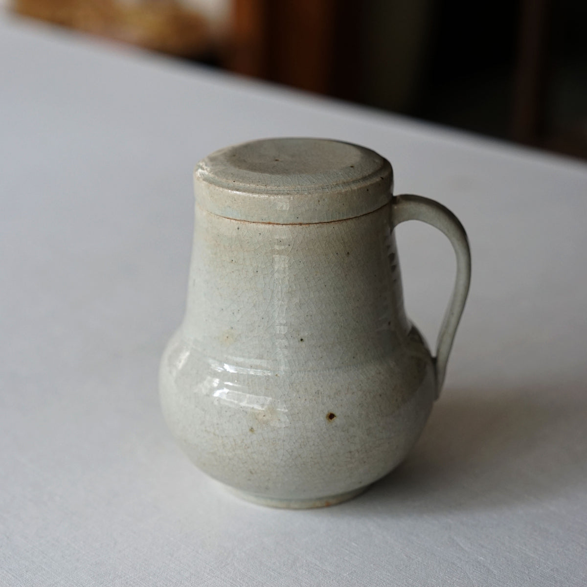 蓋付きの貫入のピッチャー。