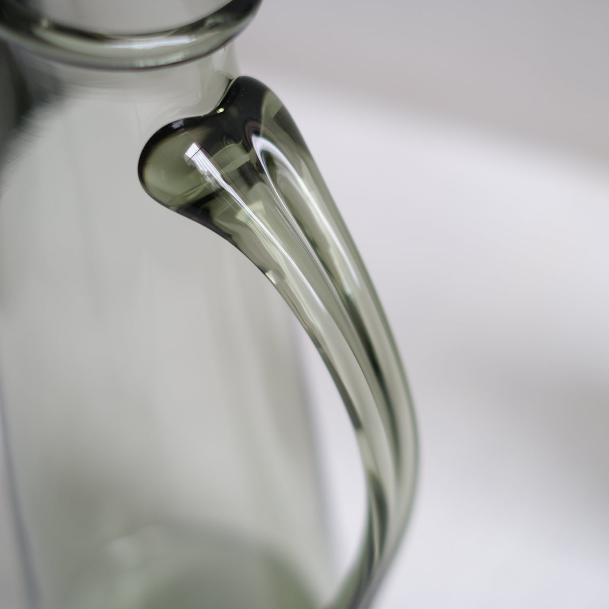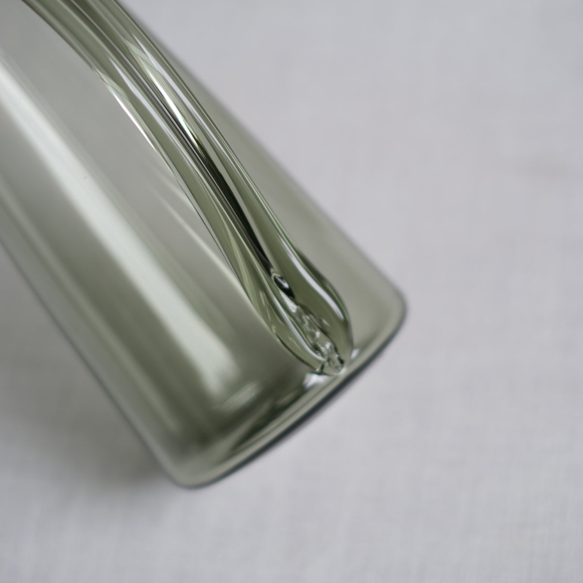 大阪堺市生まれ。現在は石川県能登島で制作されています。有永さんの工房で調合されたガラスは角度により青みや紫を感じ自然光と照明、飲み物の色によっても変化し瞬間の美しさに魅了されます。