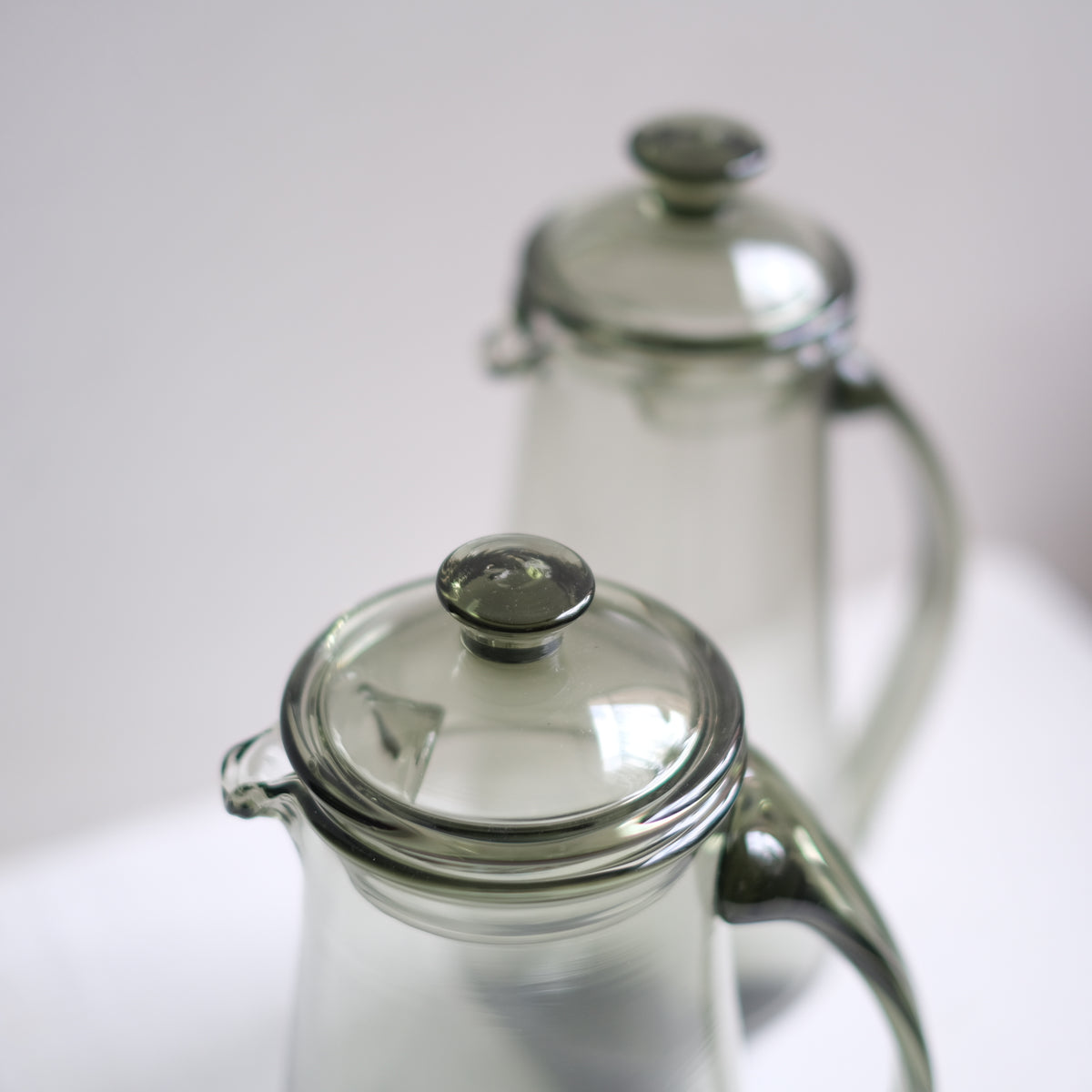 大阪堺市生まれ。現在は石川県能登島で制作されています。有永さんの工房で調合されたガラスは角度により青みや紫を感じ自然光と照明、飲み物の色によっても変化し瞬間の美しさに魅了されます。