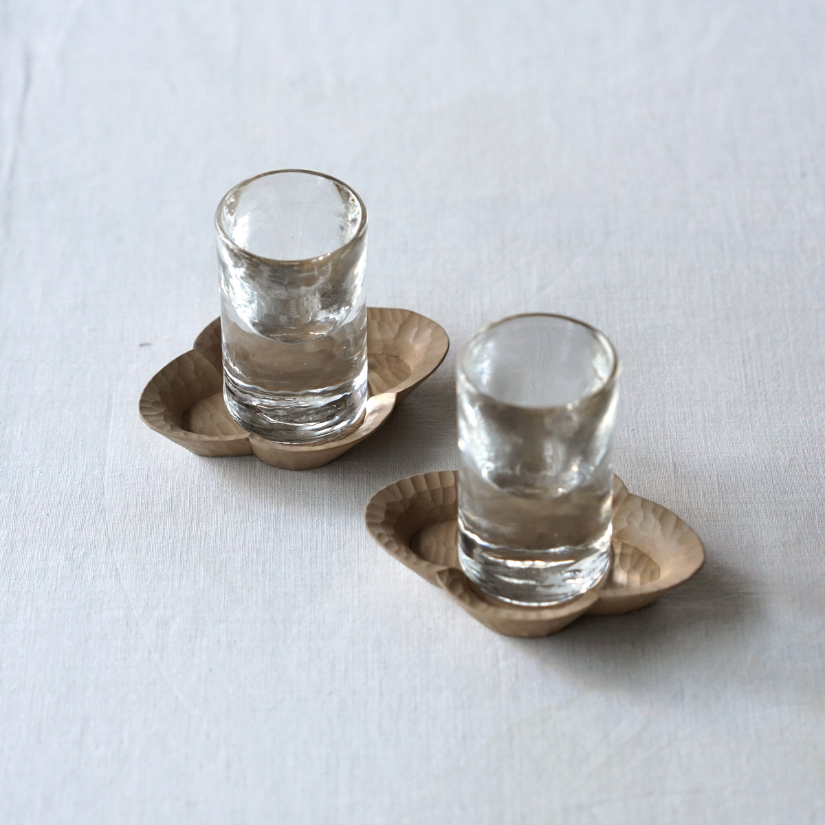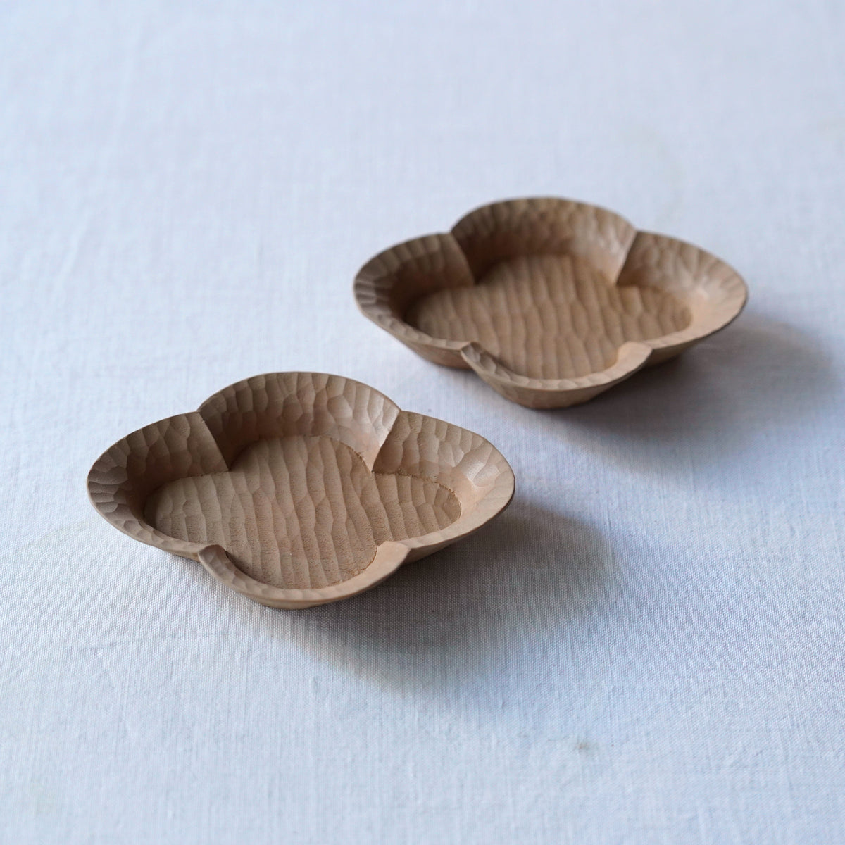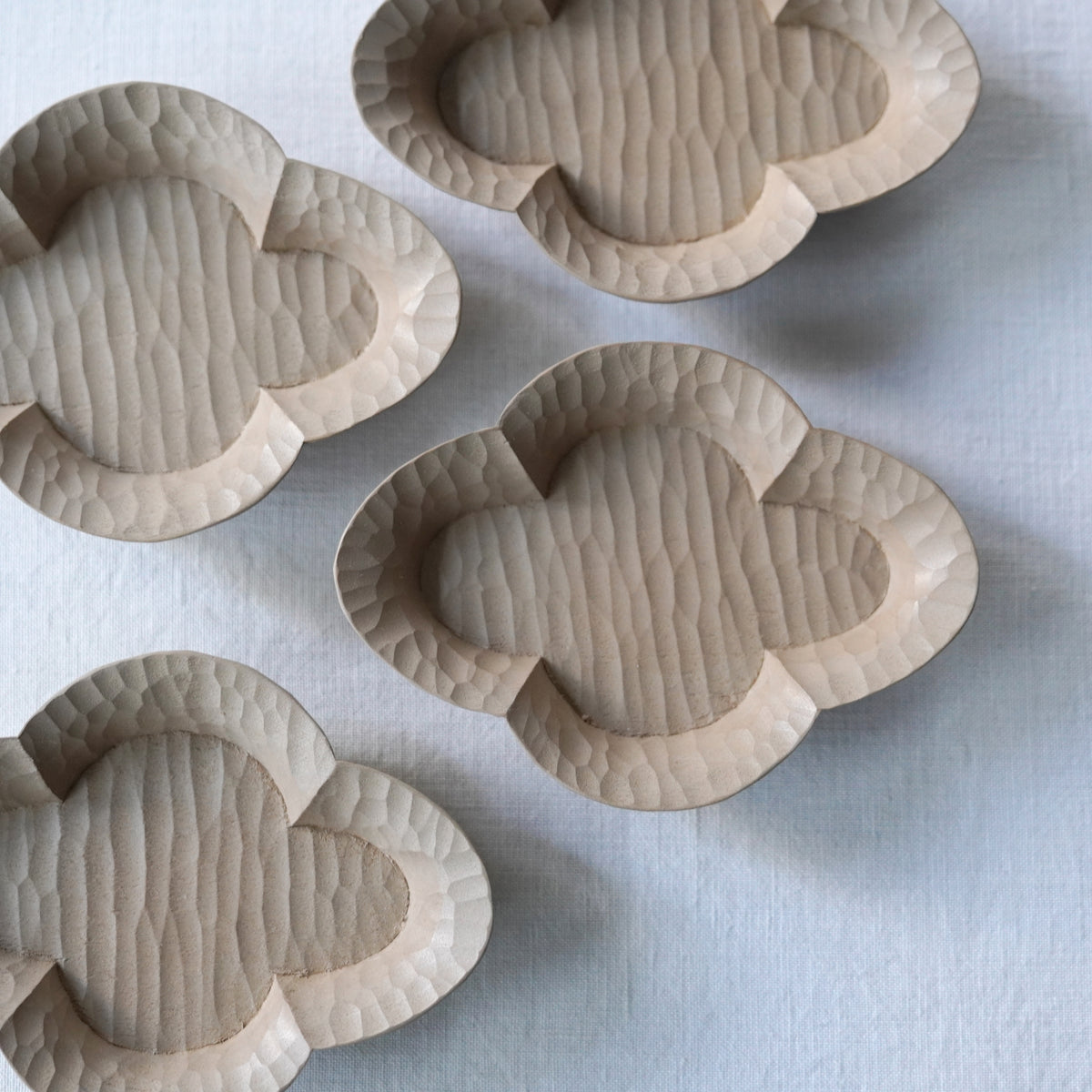 一つひとつ手作業で丁寧に施されたノミ跡が美しい、白い拭き漆の茶托。